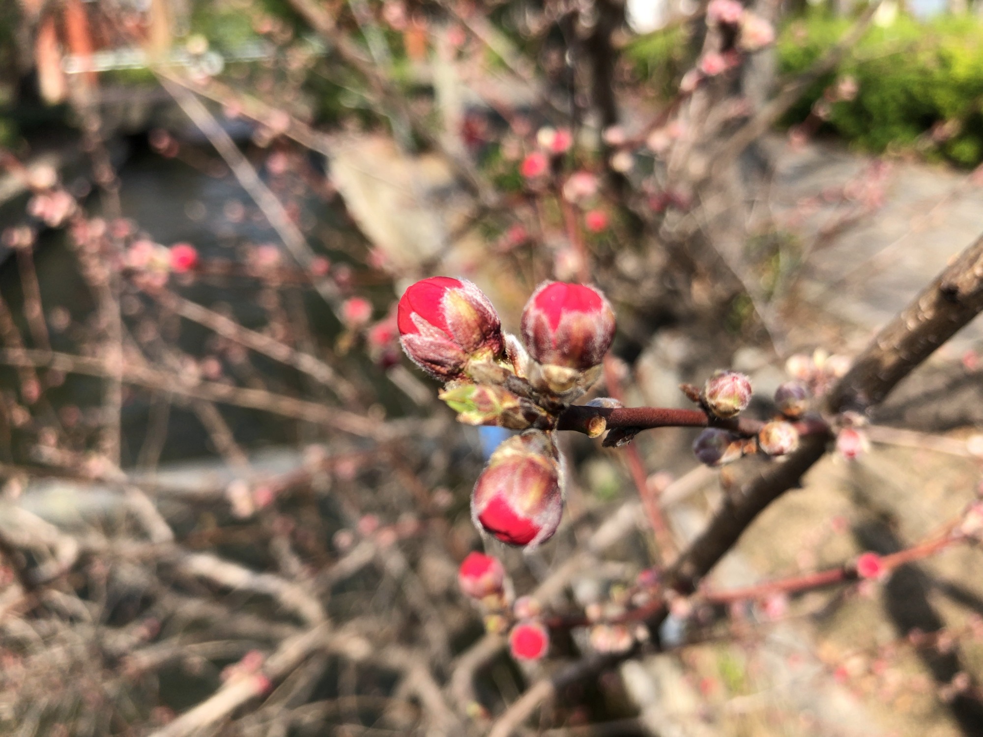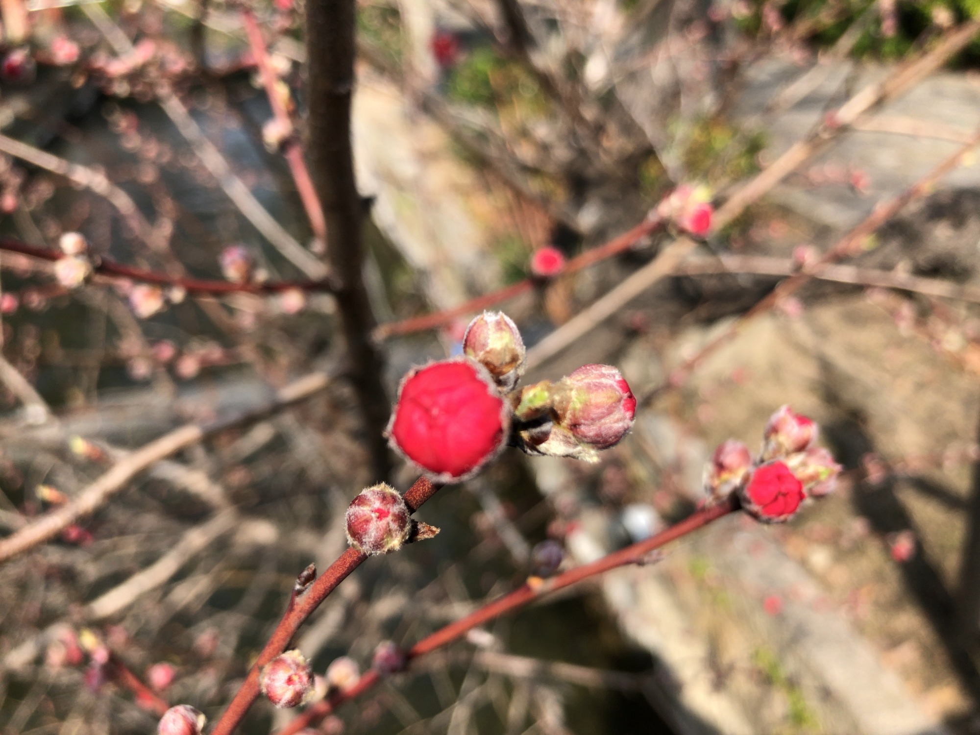 この蕾は、桜かな? にしては、紅さが濃いですが。
