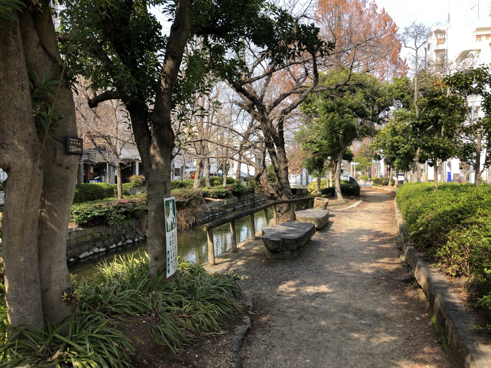 さて、ほんのちょっとだけ、早めに岡山に到着、西川緑道公園の~北側です。