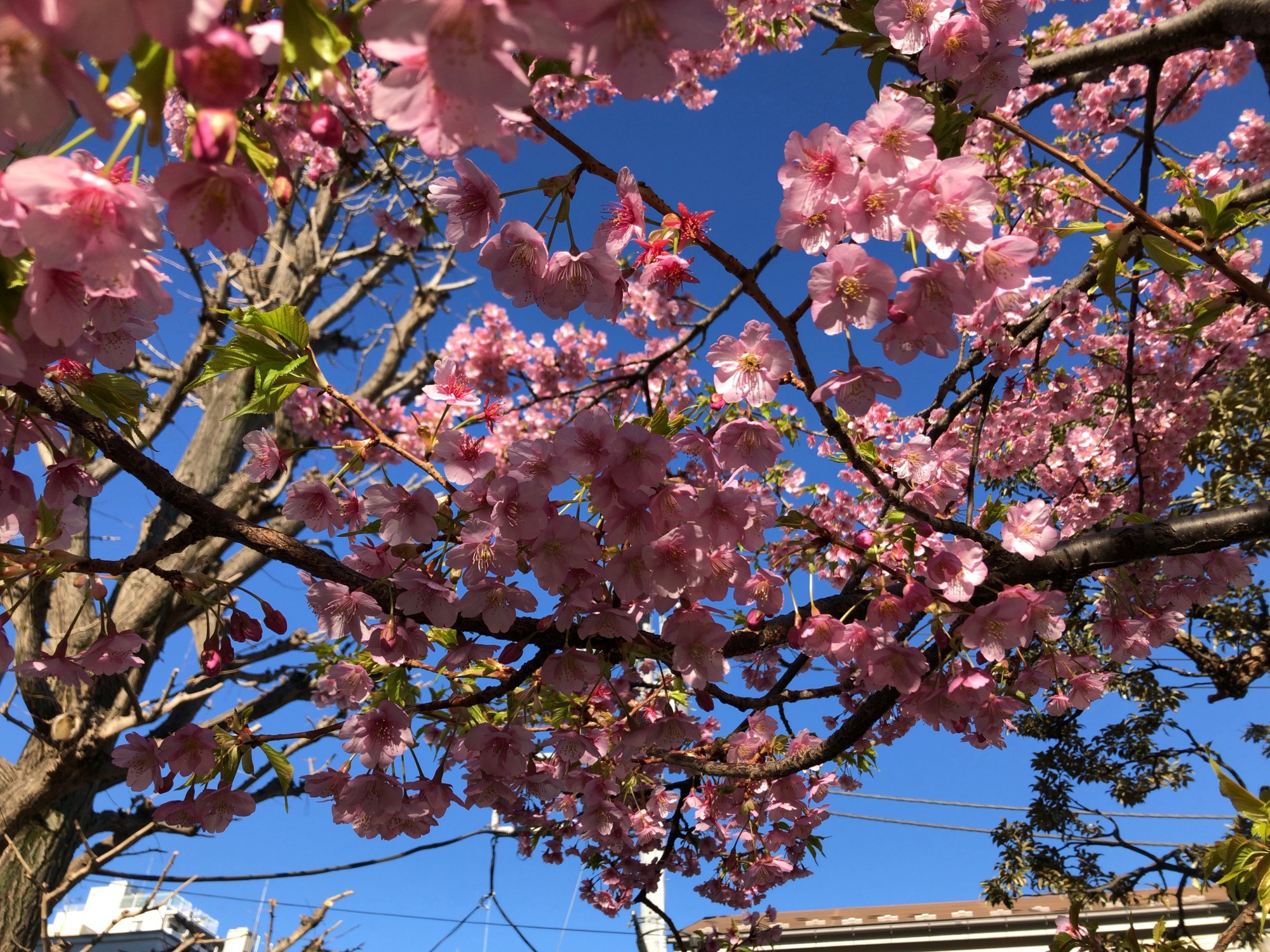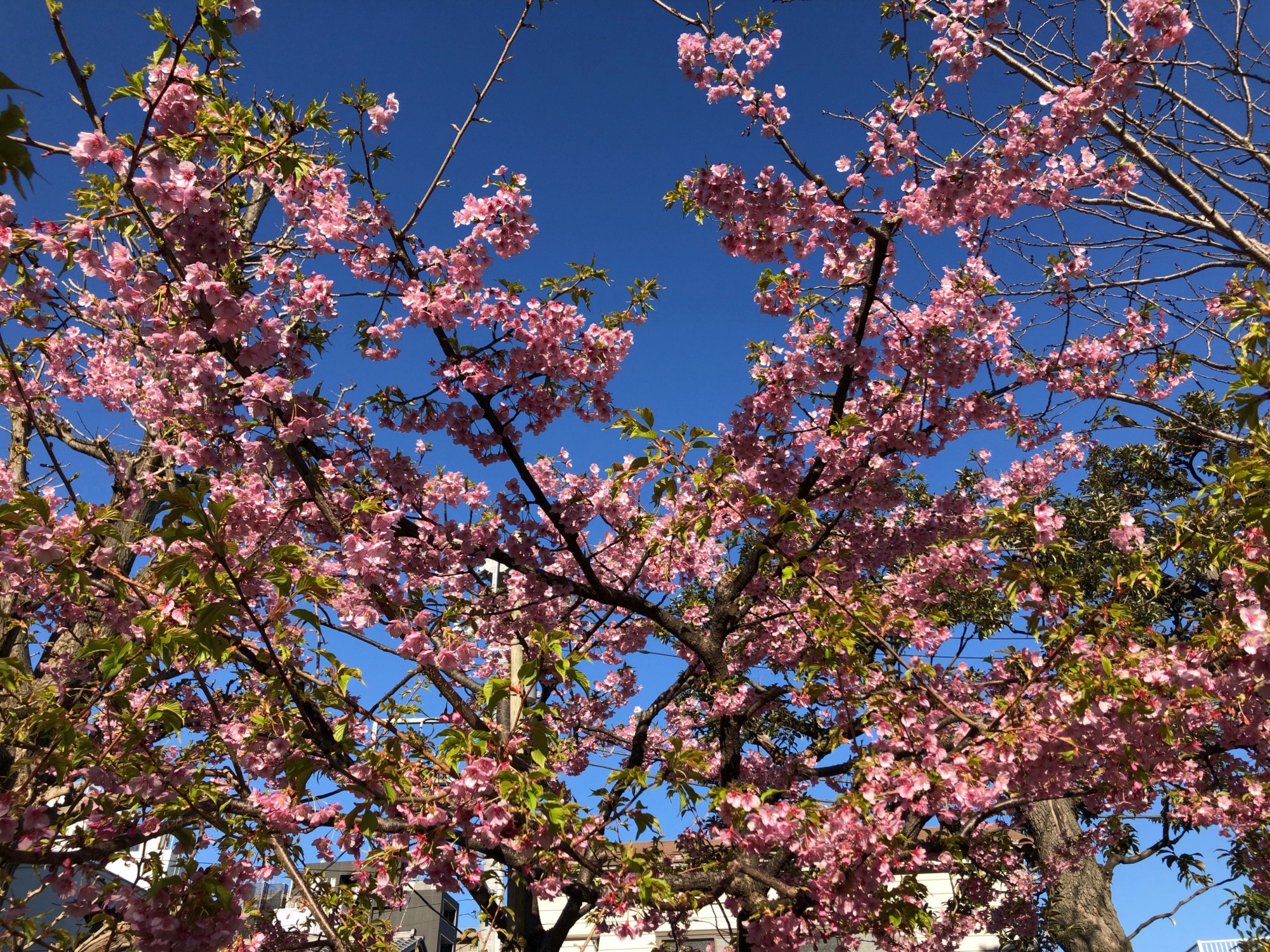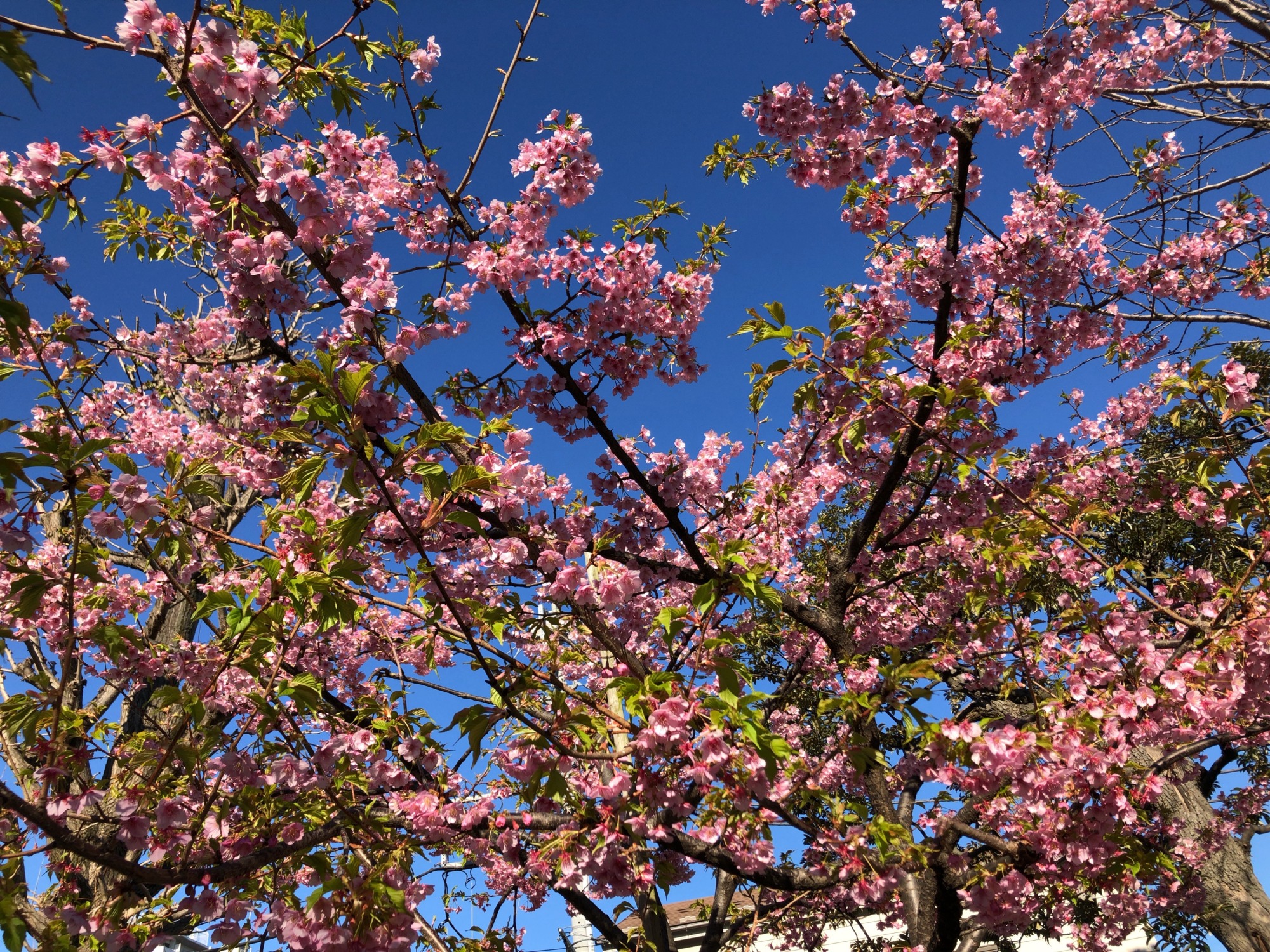 あら、ここでも満開の河津桜!