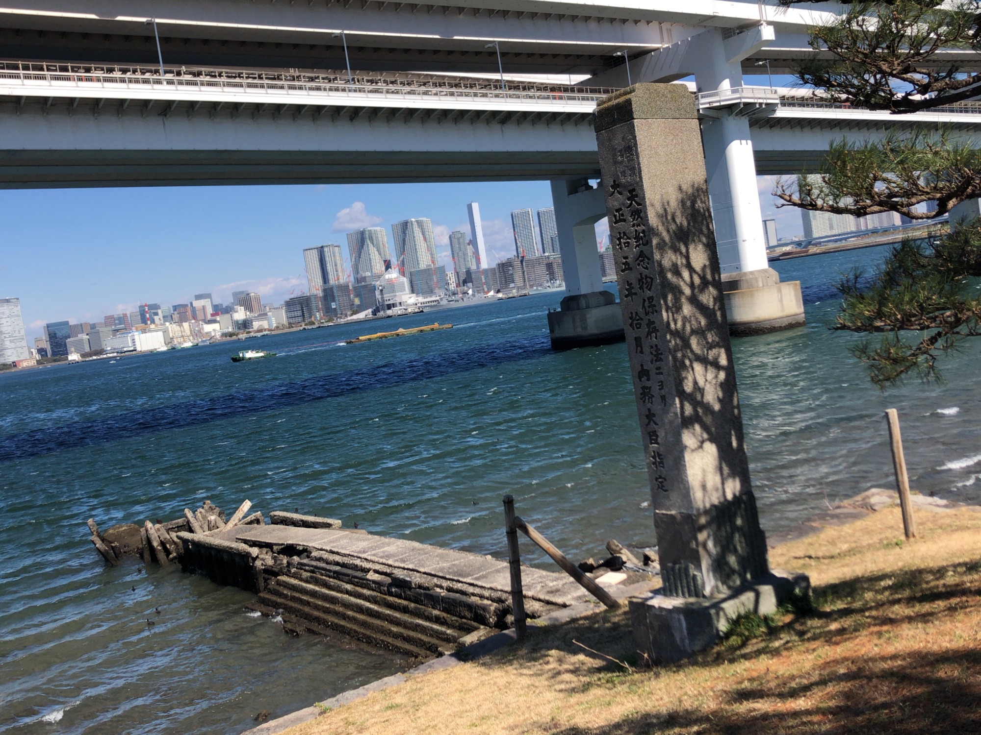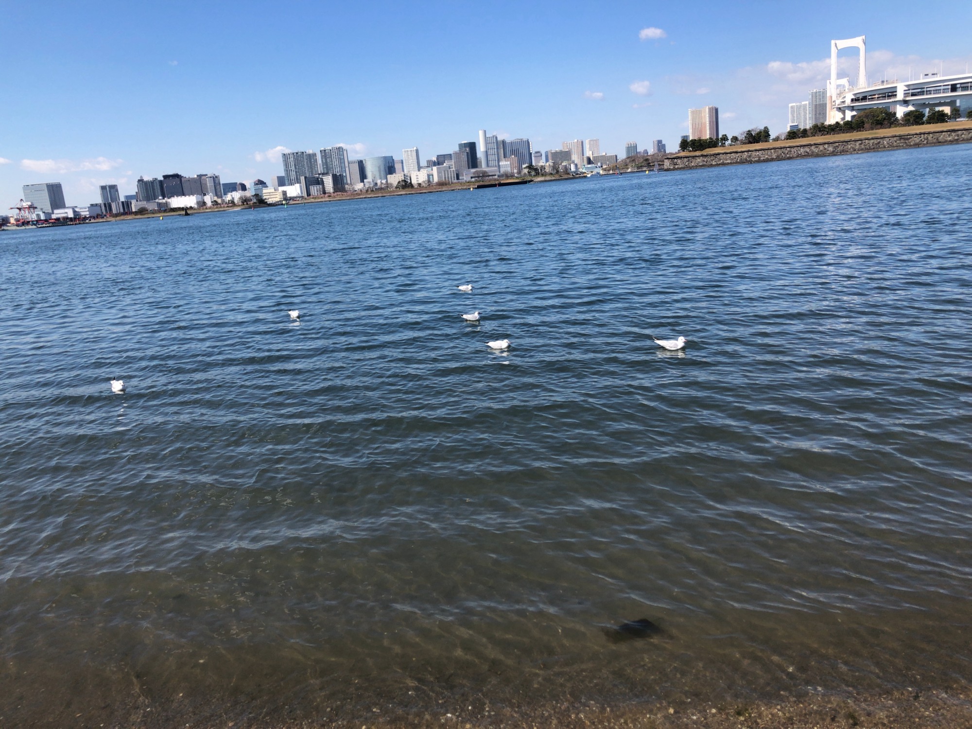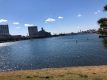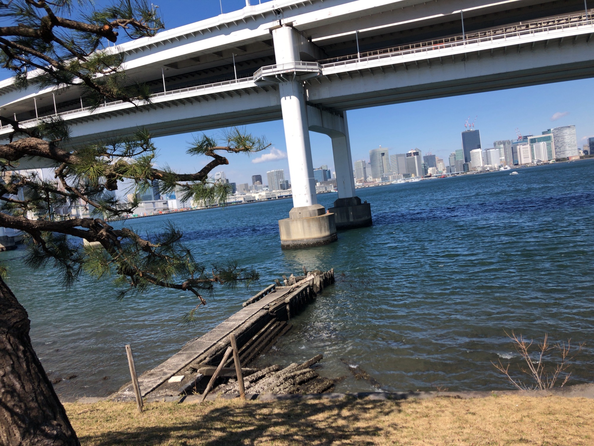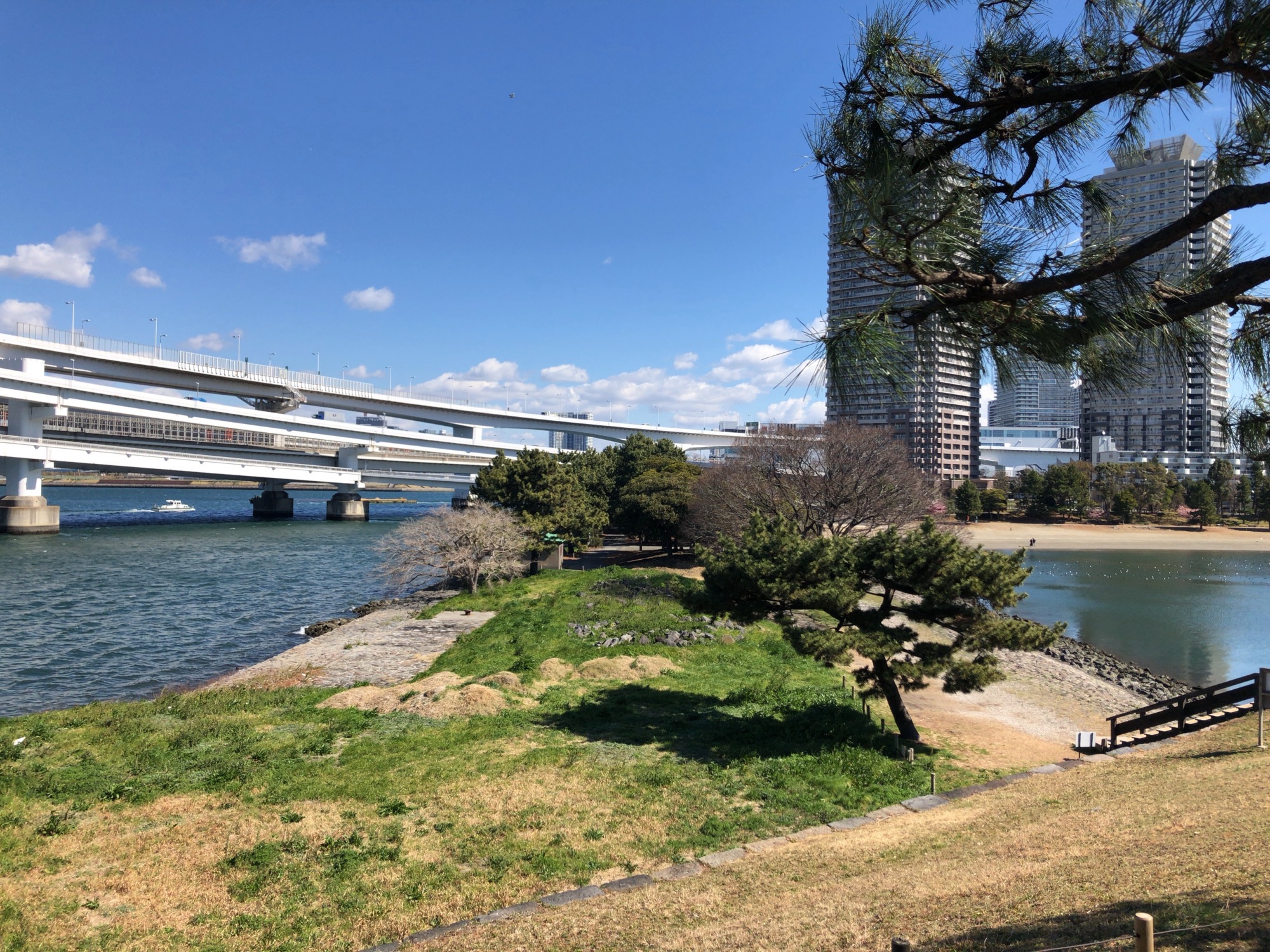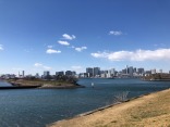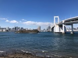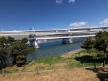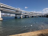 細い堤の向こうは、レインボーブリッジです!