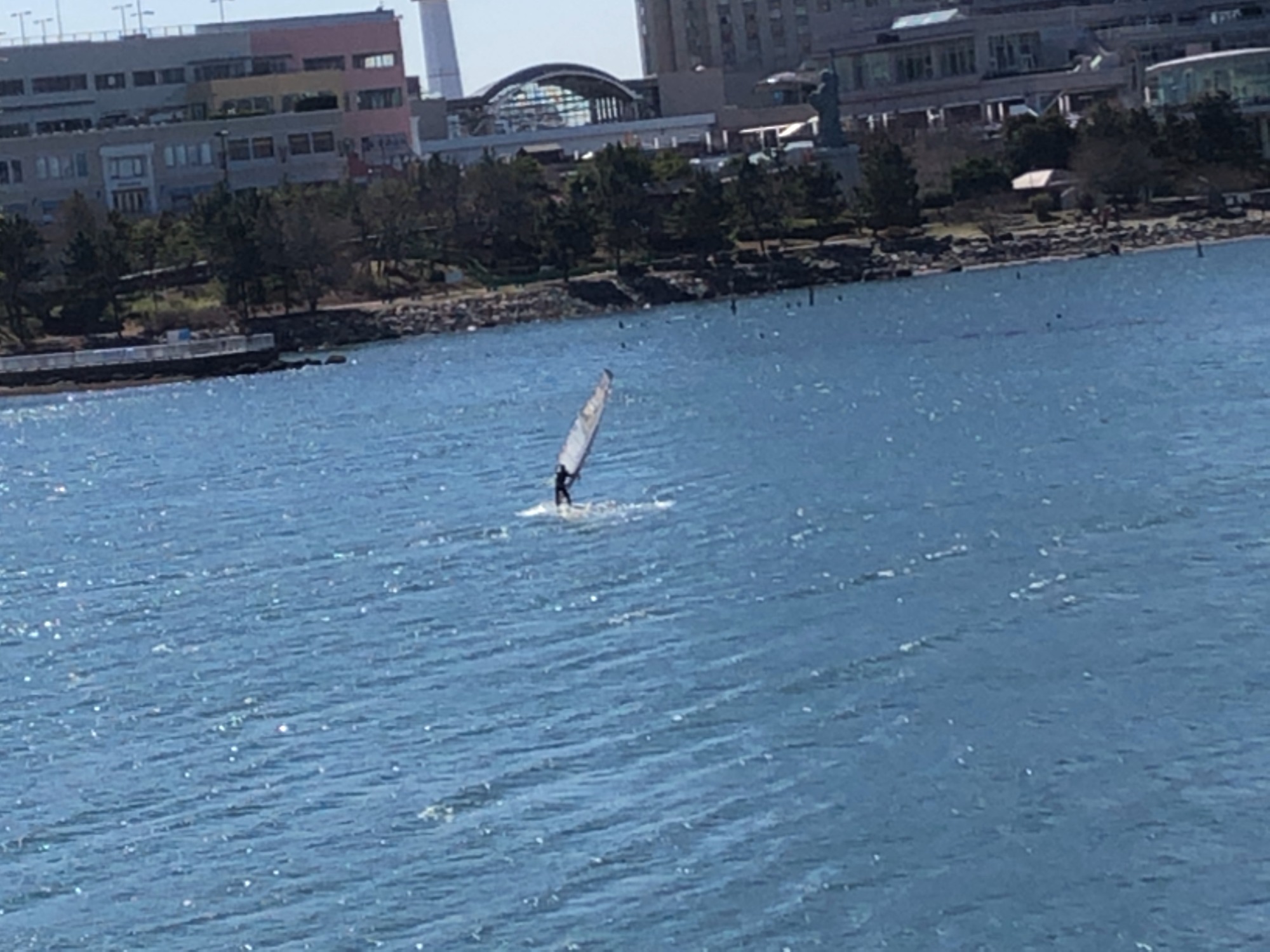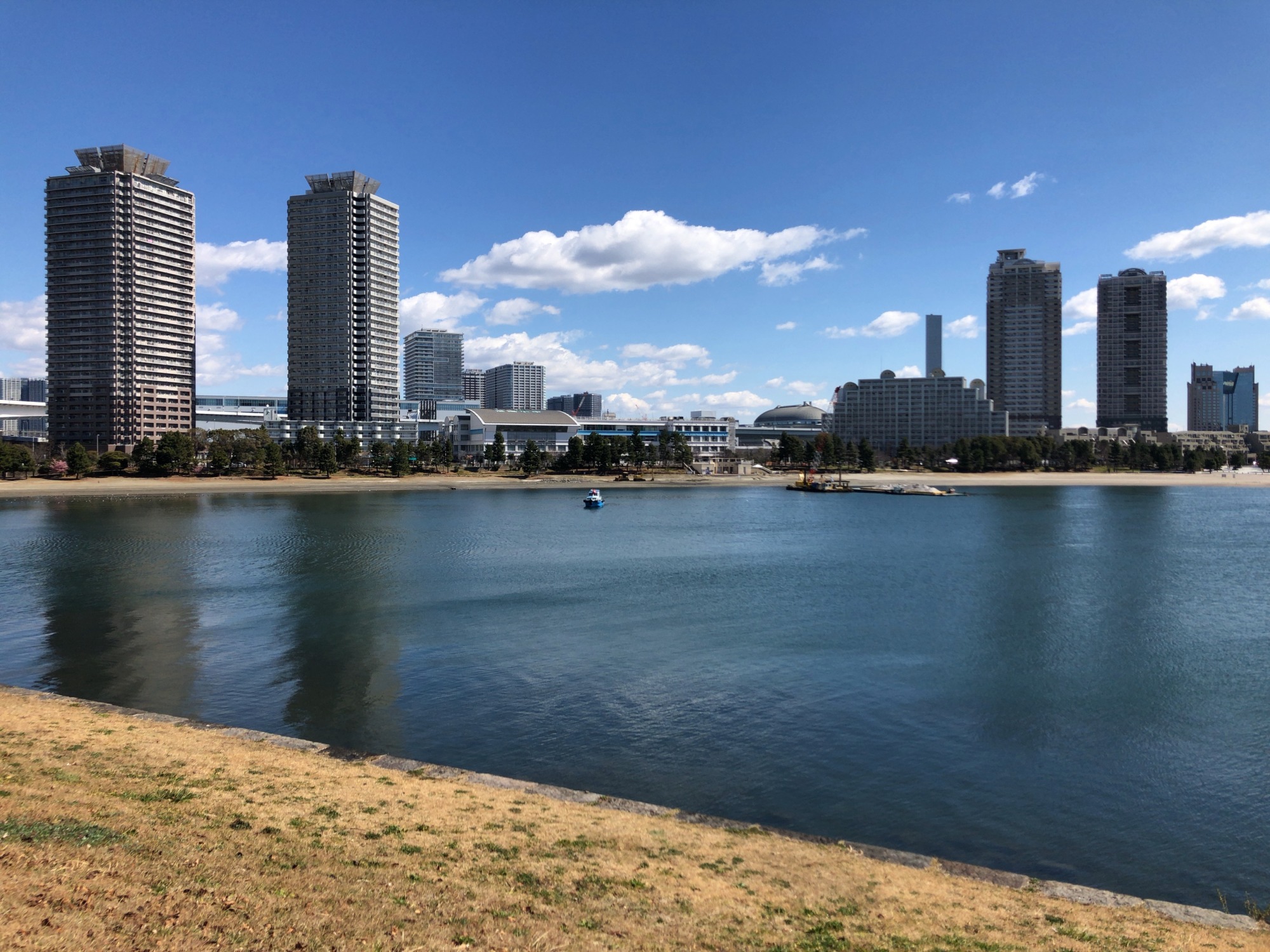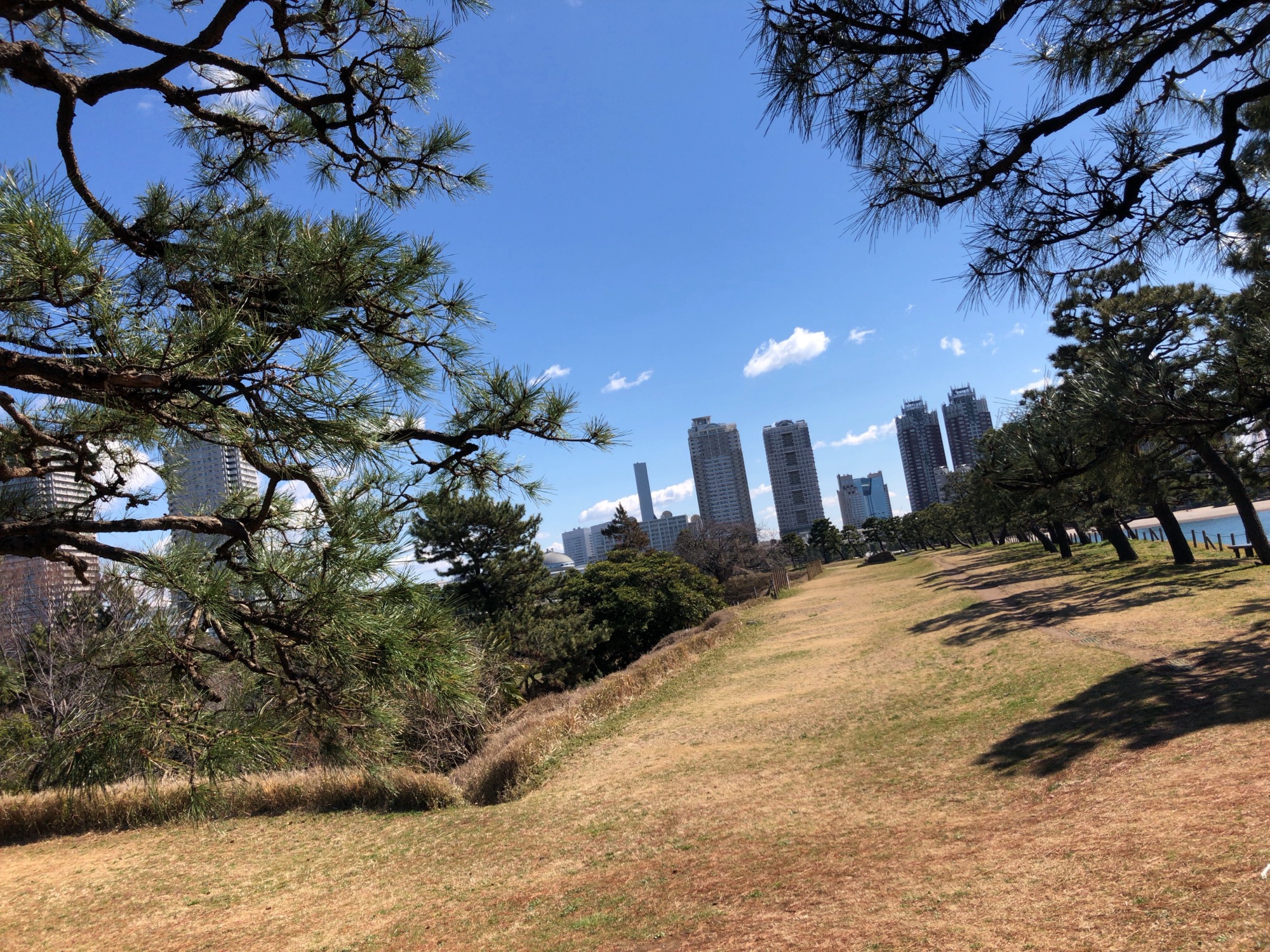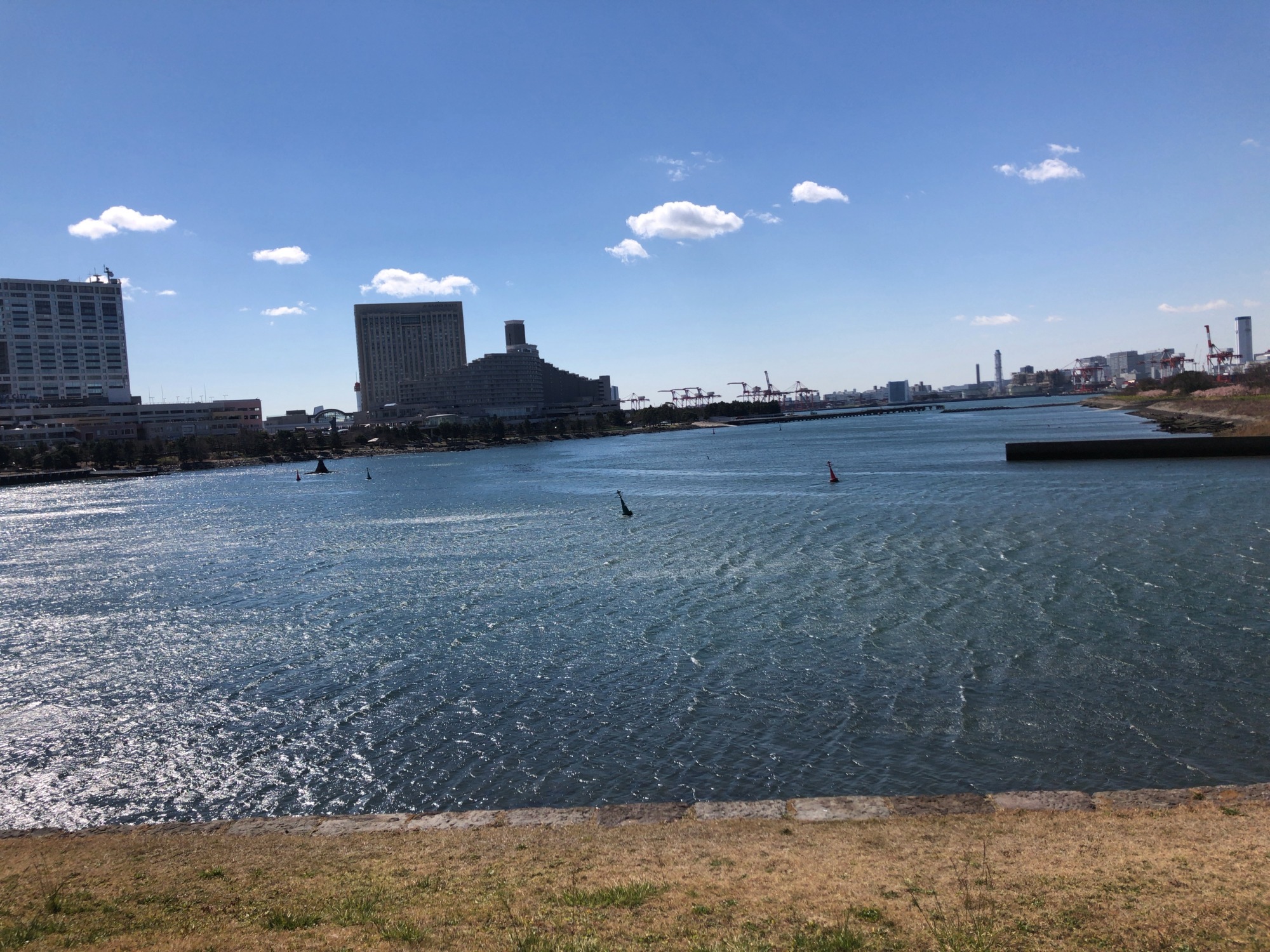 細い堤の向こうは、レインボーブリッジです!