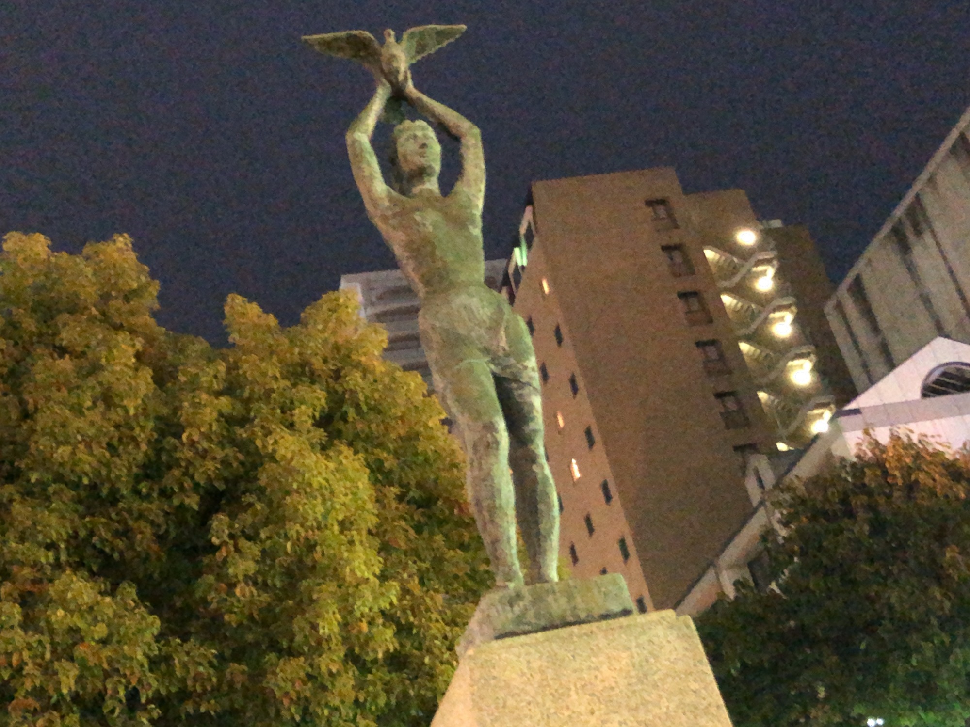 ちょっとこの処、連日なんですが、今日も、「語ろう会+慰労会」です。岡山へ。会の前に、西川緑道公園を、夜の帳も降りたのに、「ちょっと寄り道/ブラ@タケミ」