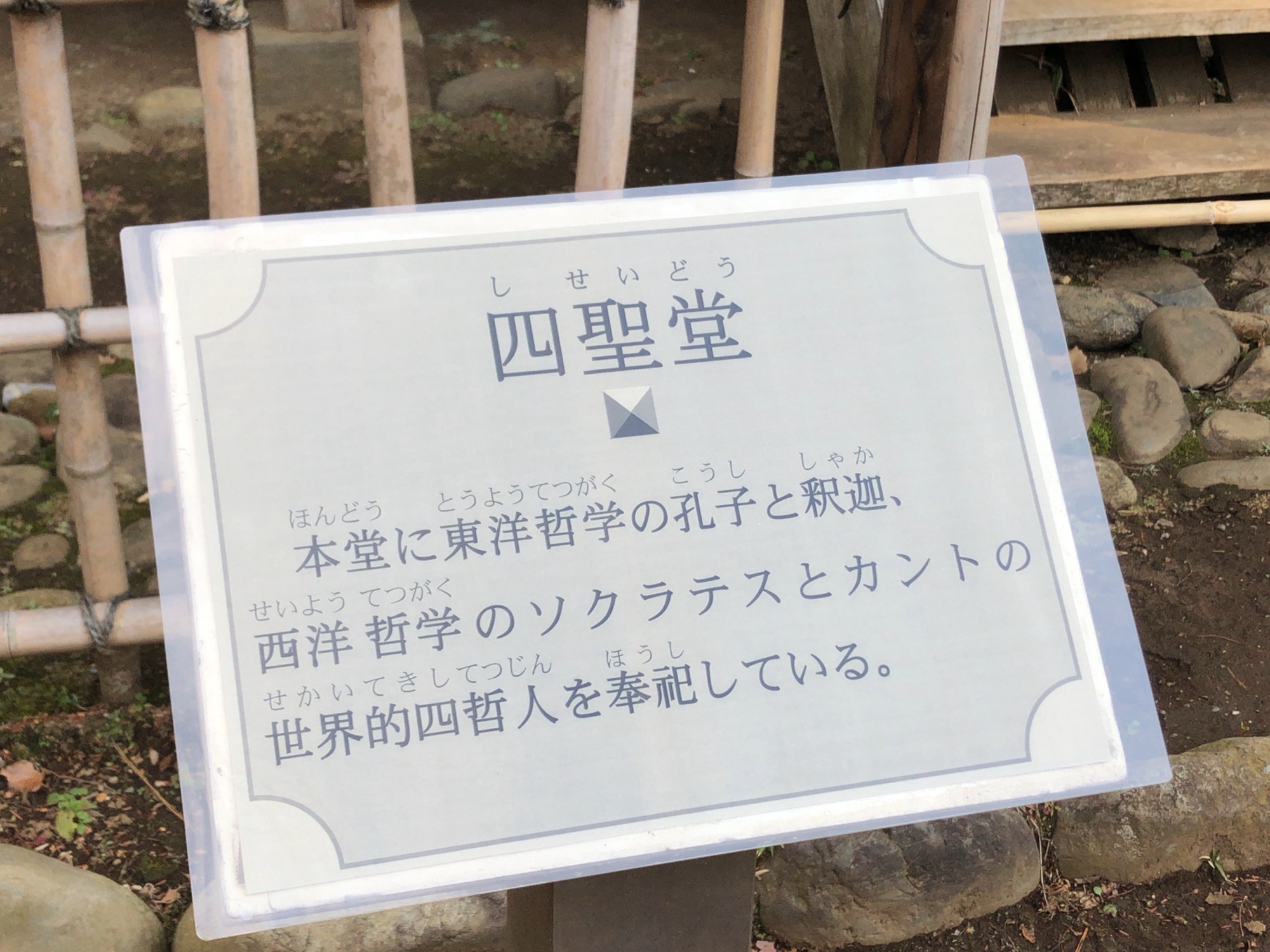 【東洋大学の創設者である哲学者の井上円了が、ソクラテス、カント、孔子、釈迦を祀った「四聖堂」を建設したのが、この公園のはじまりである。この四聖堂を当初哲学堂と称し、それがそのまま公園の名になった。】