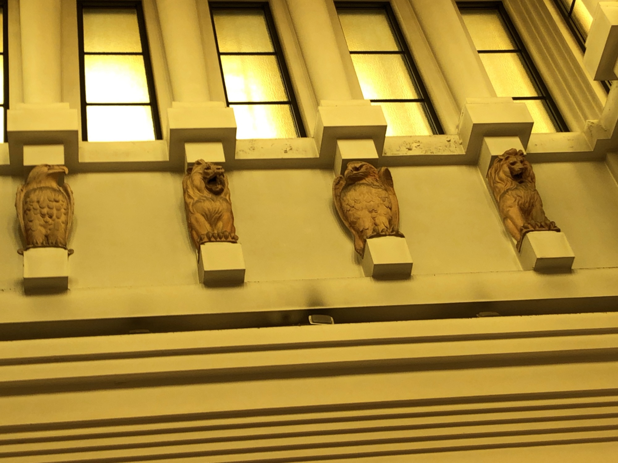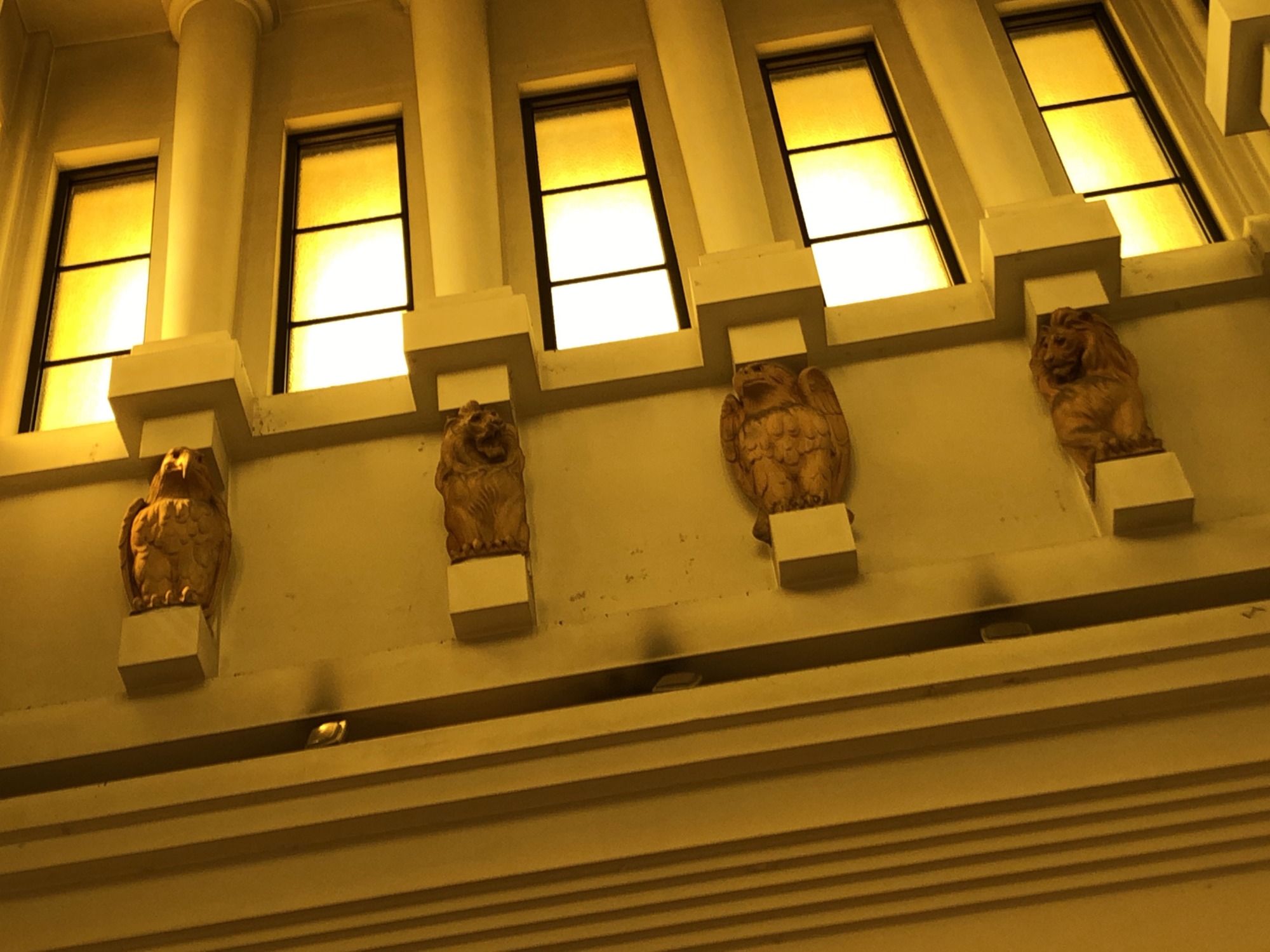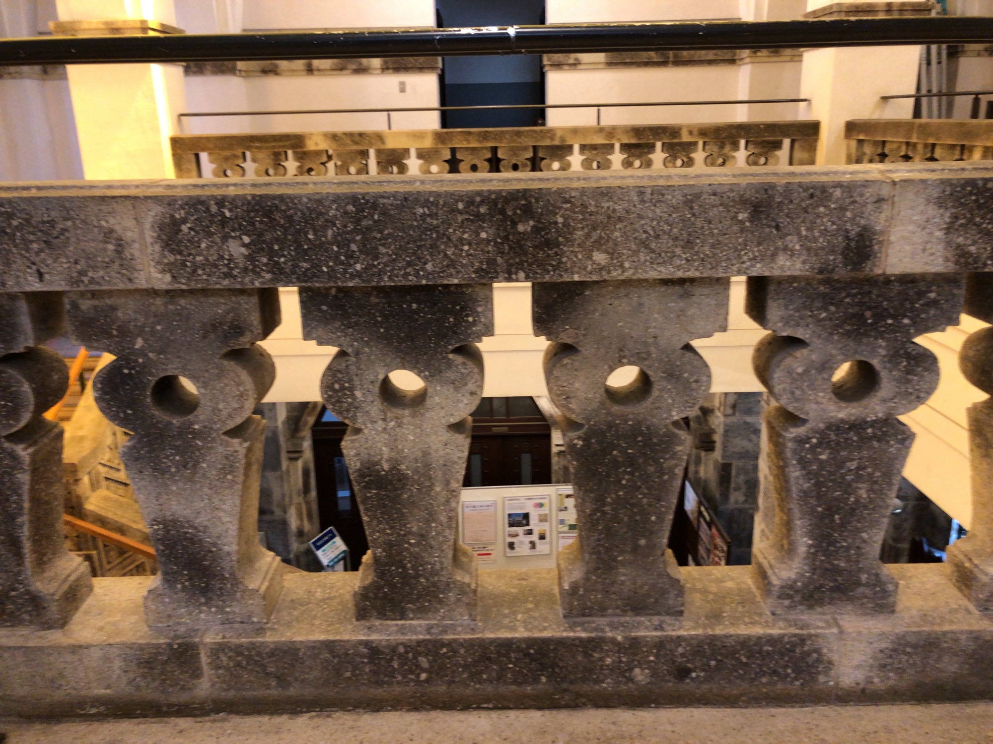 【1階中央階段裏には、「留魂礎碑」がある。これは創設者の遺志を尊重し、1930年(昭和5年)4月9日に挙行された鎮礎式において、本館中央の地下30尺(約9メートル)に埋められた「留魂碑」を記念するものである。「留魂碑」の碑面は次の通りである】さて、廻れる内部は、こんなものかな?