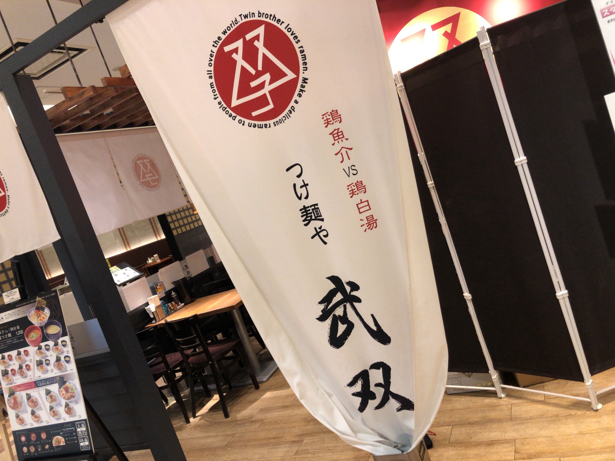 会議の終了後は…つけ麺や 武双 グランツリー武蔵小杉店~つけ麺屋さんですが、普通に白湯ラーメン・・すごい太麺!