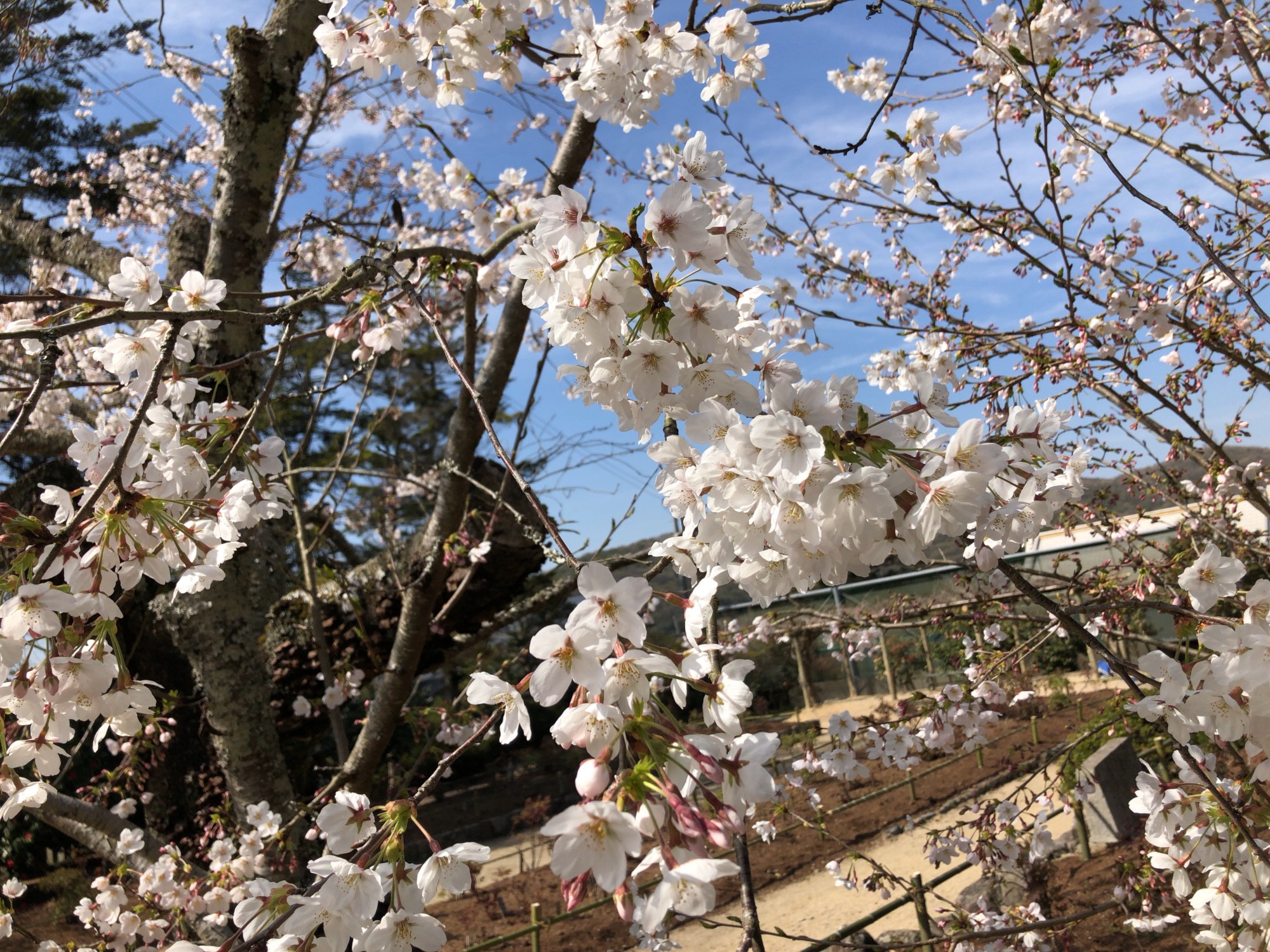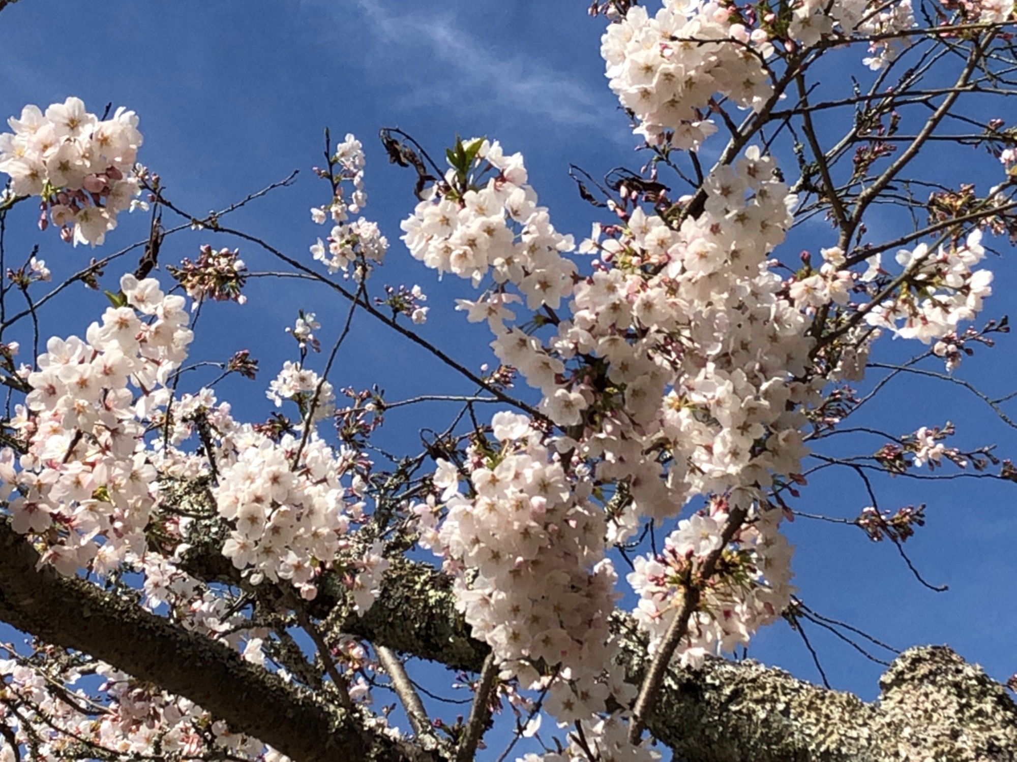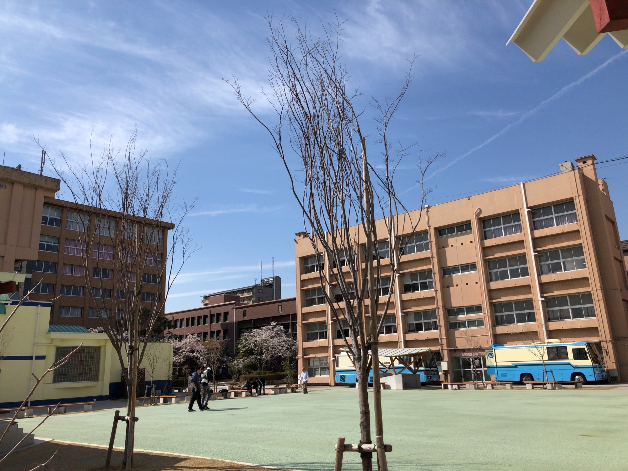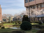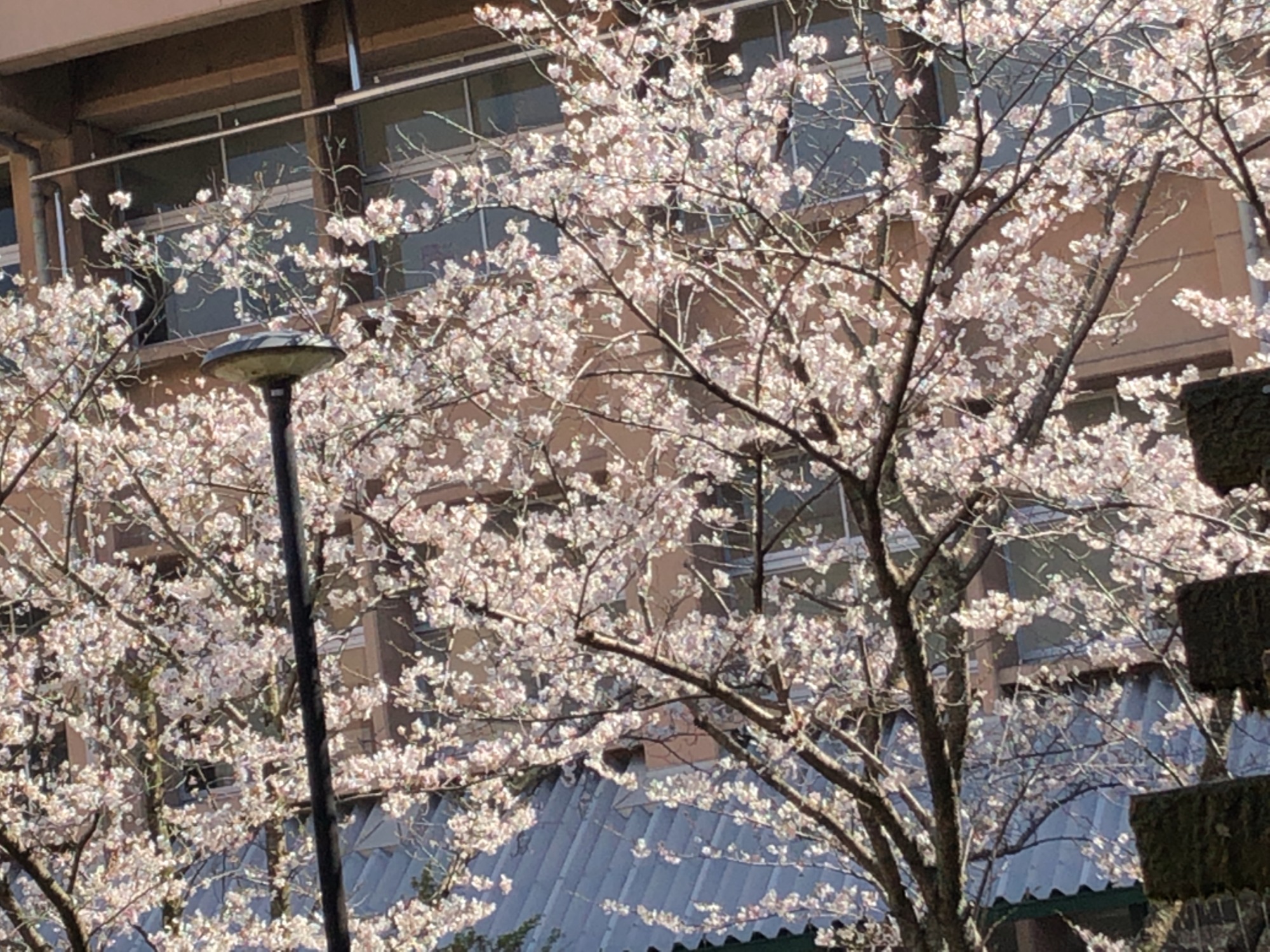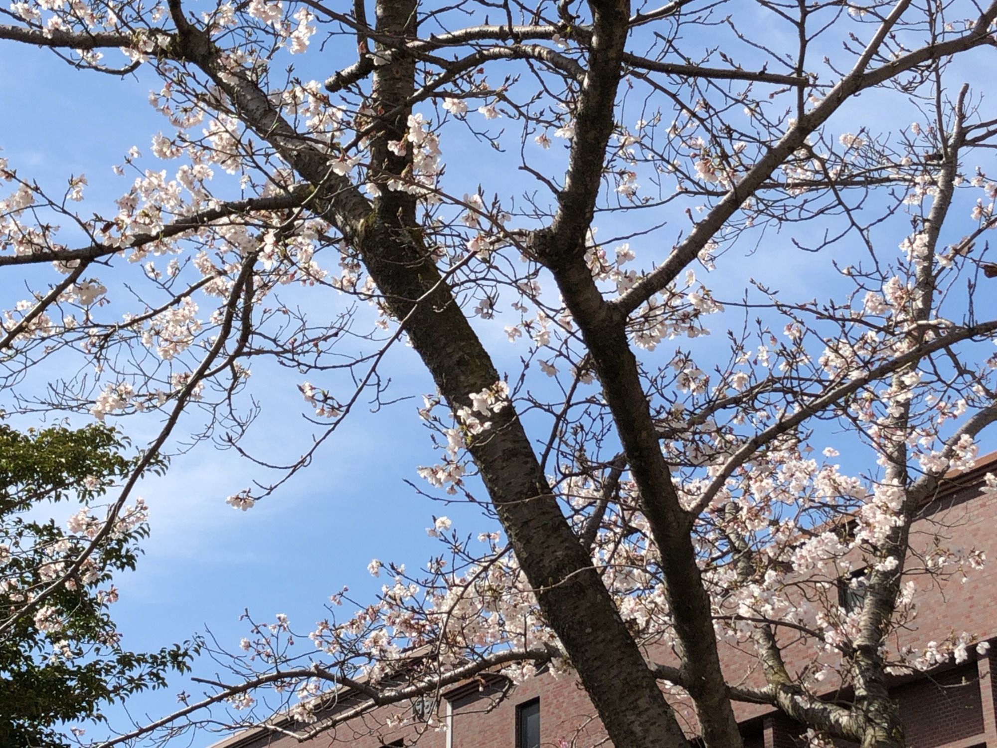 桜がきれいに咲いていて、新入生と思しき若人たちも。