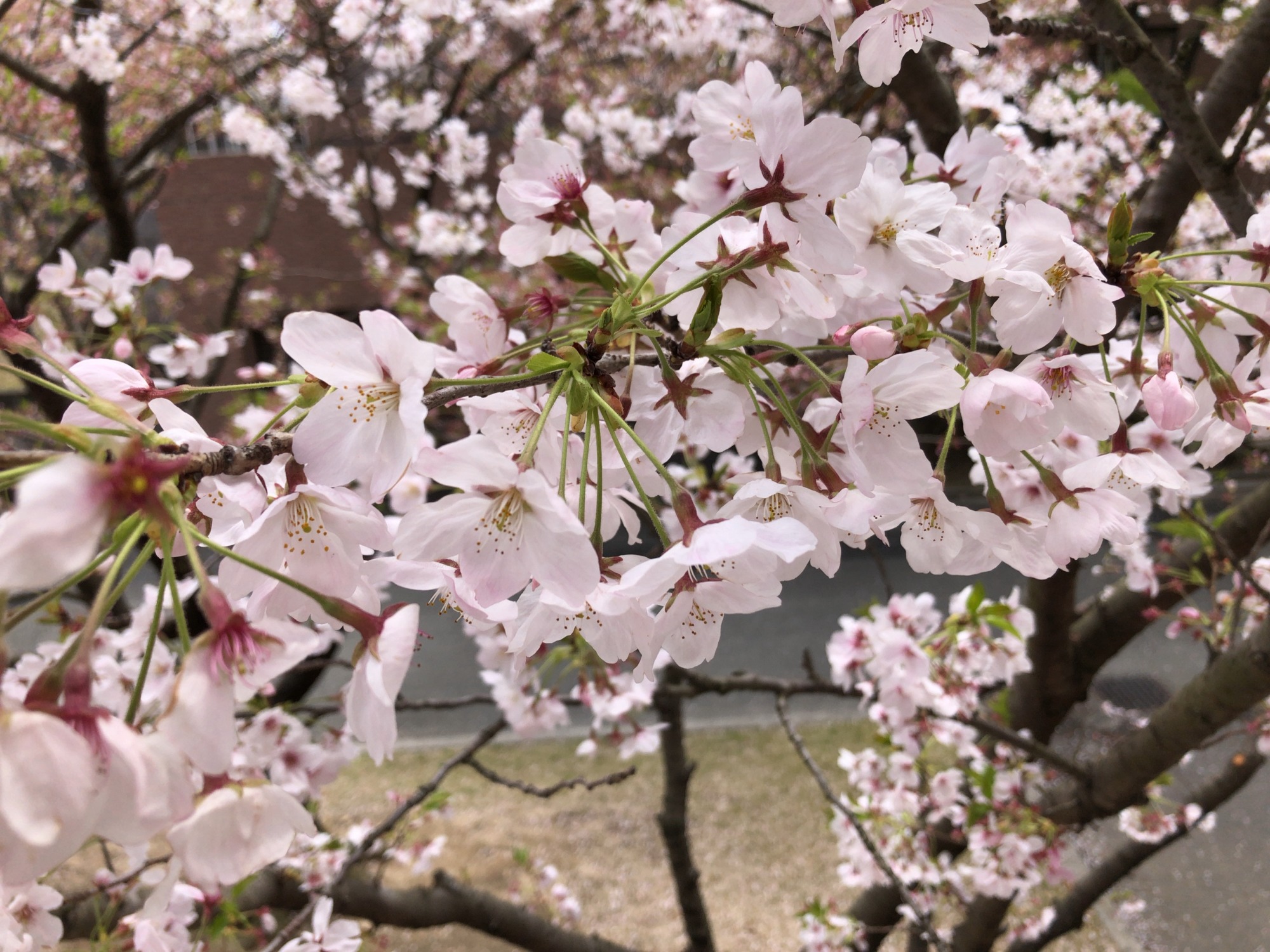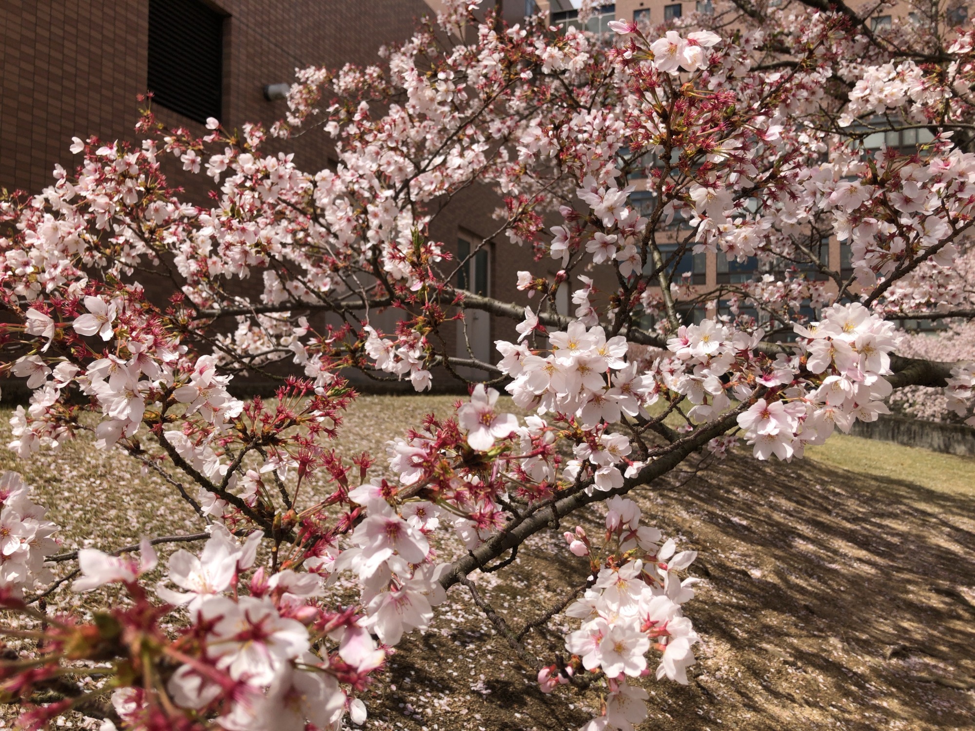 特に東側のマンションの陰? まだまだ、満開!