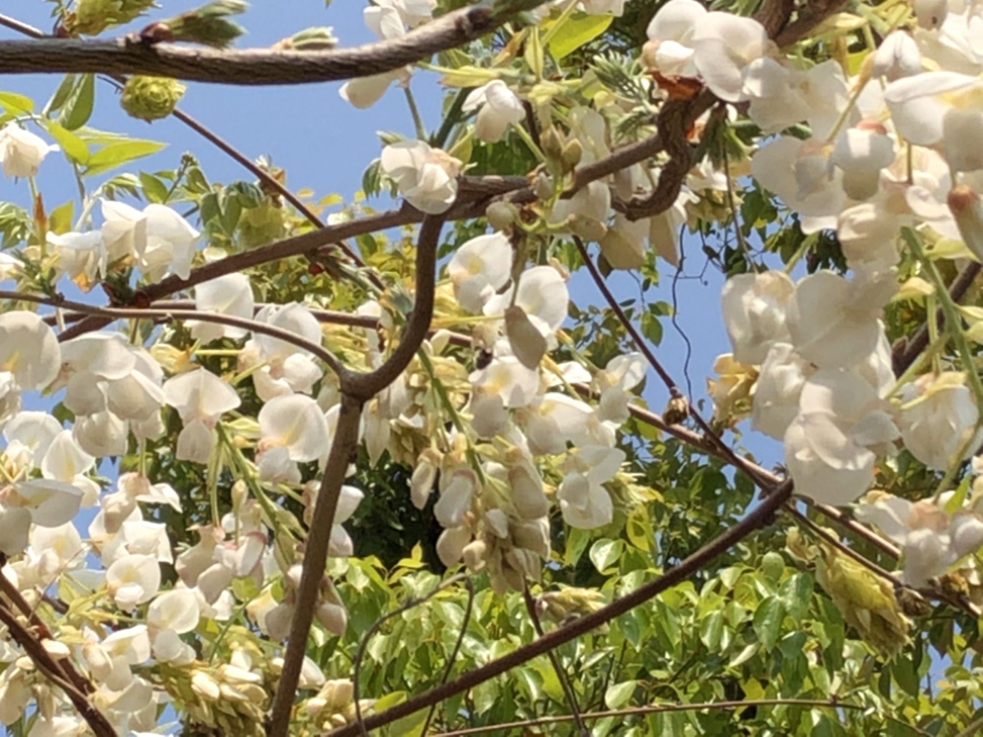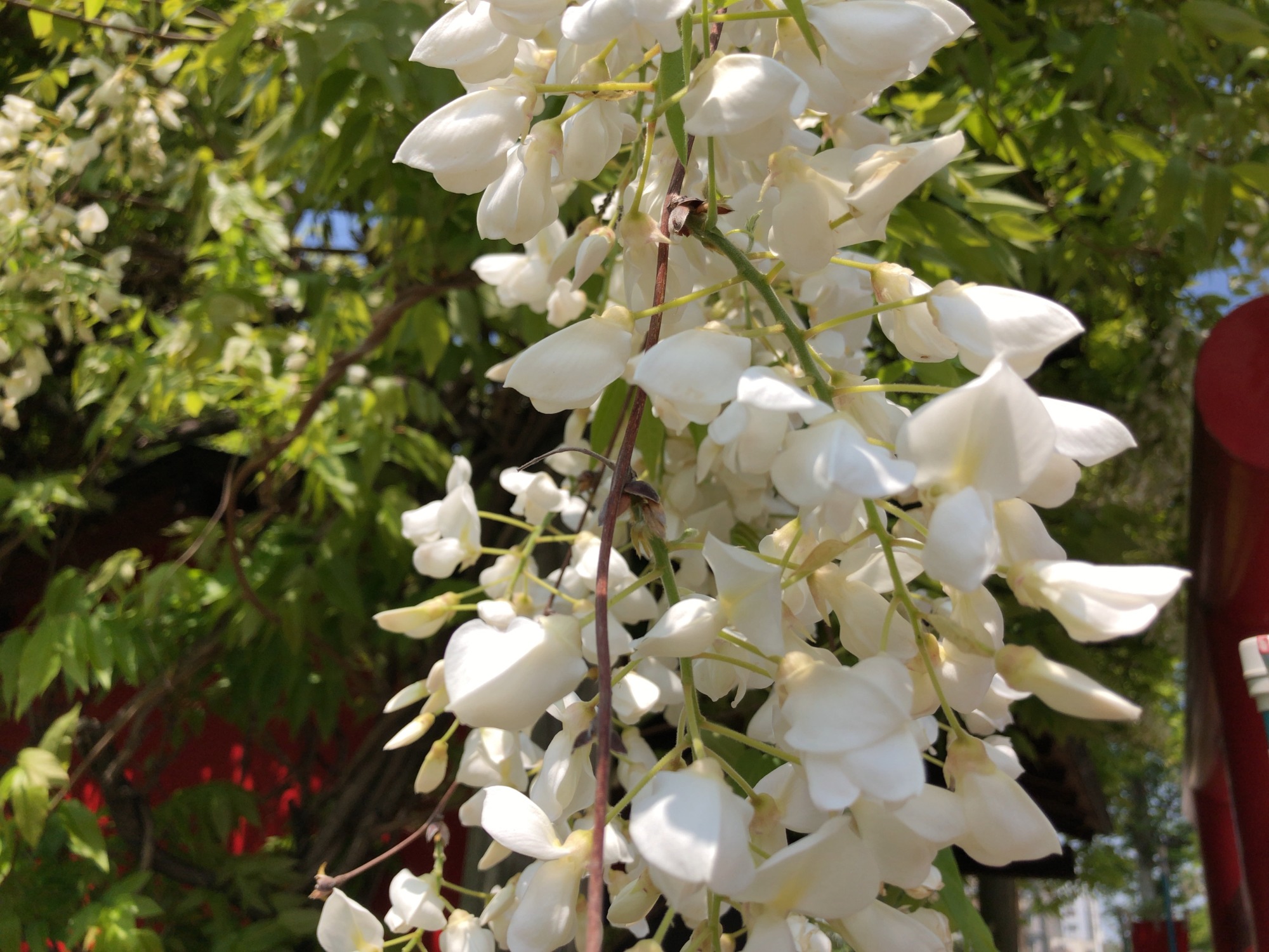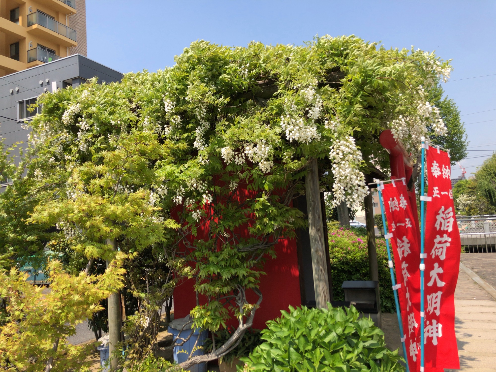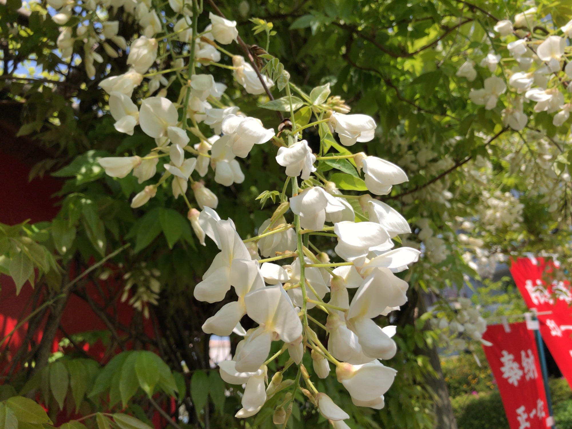 稲荷神社には藤ですか? 白いので何か種類が 針槐(ハリエンジュ)、別名ニセアカシアですか?