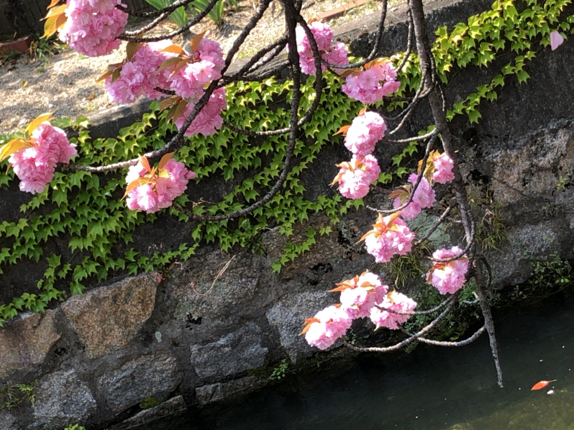 そして・・・県道近くには・・色合いの違う八重桜!