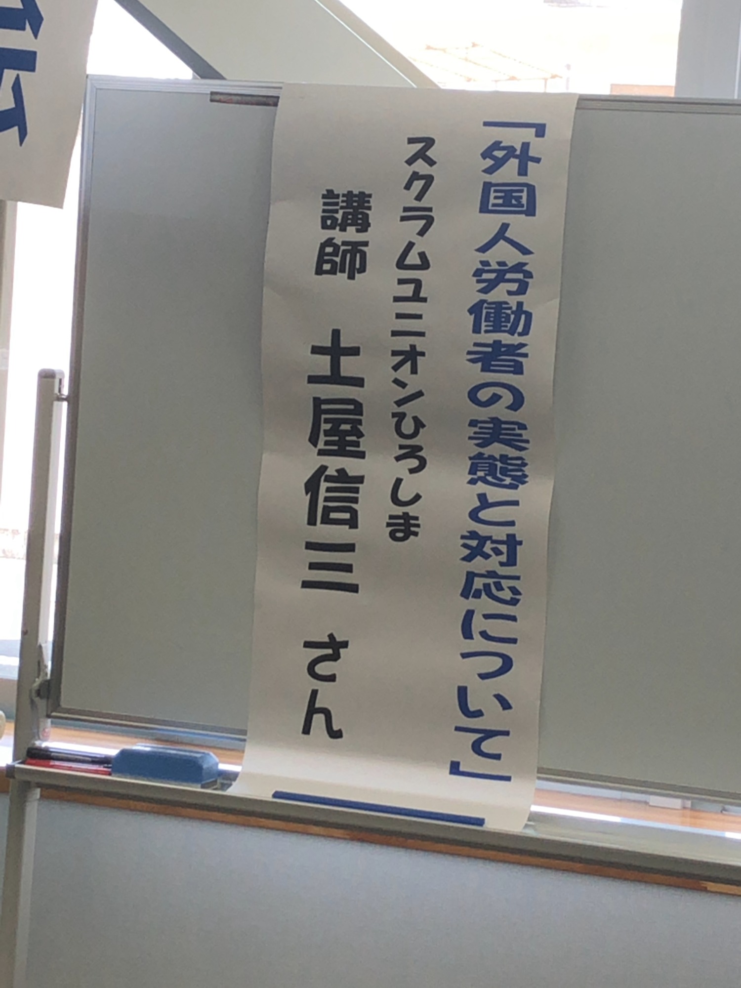本日の講演は、広島の「スクラムユニオン」の土屋氏で、外国人就労者の問題! 根深いし、法規制が変化していっていますが、本当に搾取に近い状況もあるとのことで、胸が痛いですね。