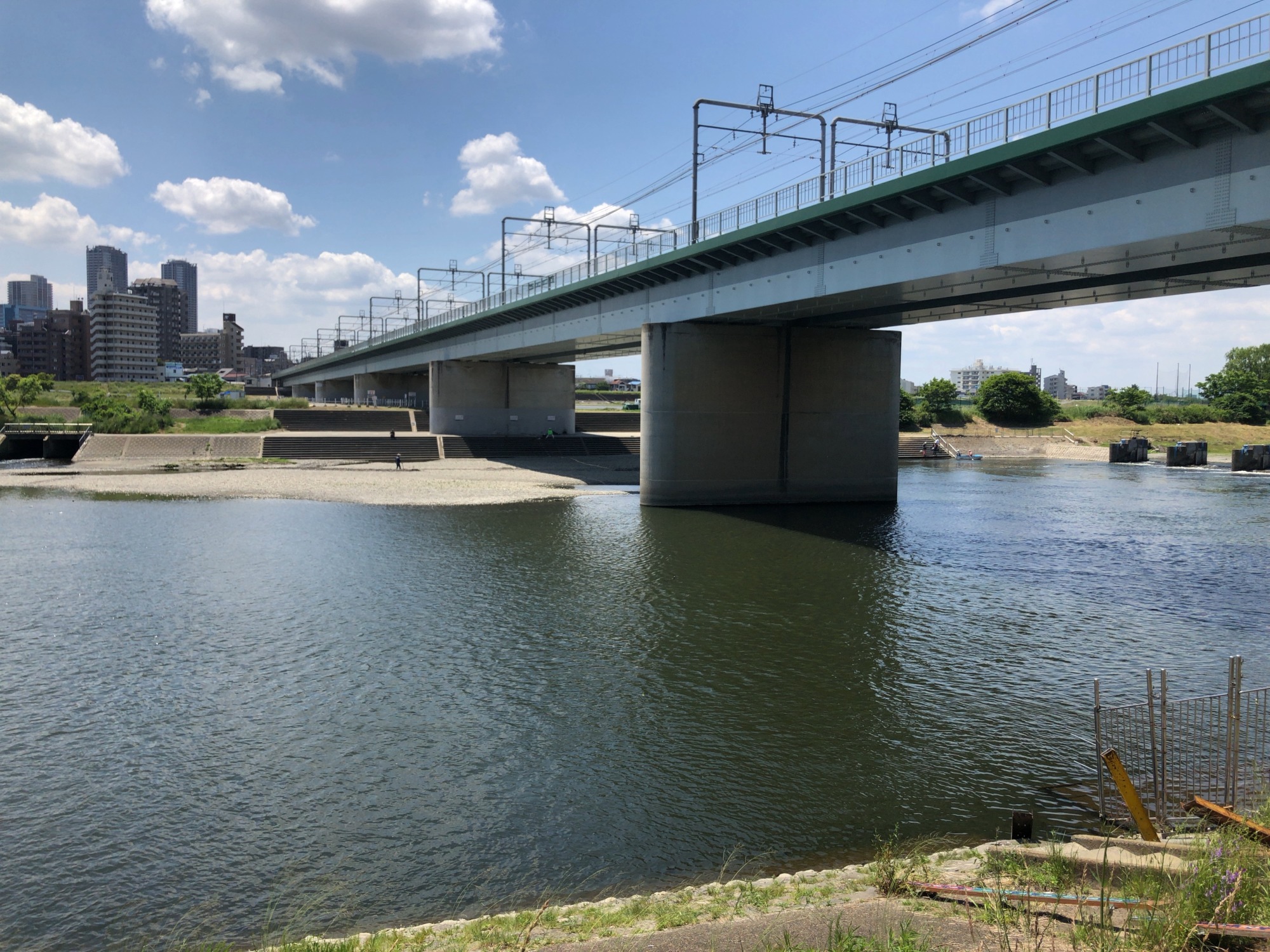 その向こうは、新幹線の鉄橋で・・沢山、行き来しています!