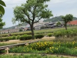 【備中高松城は、かつて深い堀と沼沢地に囲まれた毛利氏の堅固な要塞でした。天下統一を目指す織田信長の命を受けた羽柴秀吉(豊臣秀吉)の参謀・黒田官兵衛の奇策「水攻め」にあい、城主・清水宗治の自刃とともに落城しました。】