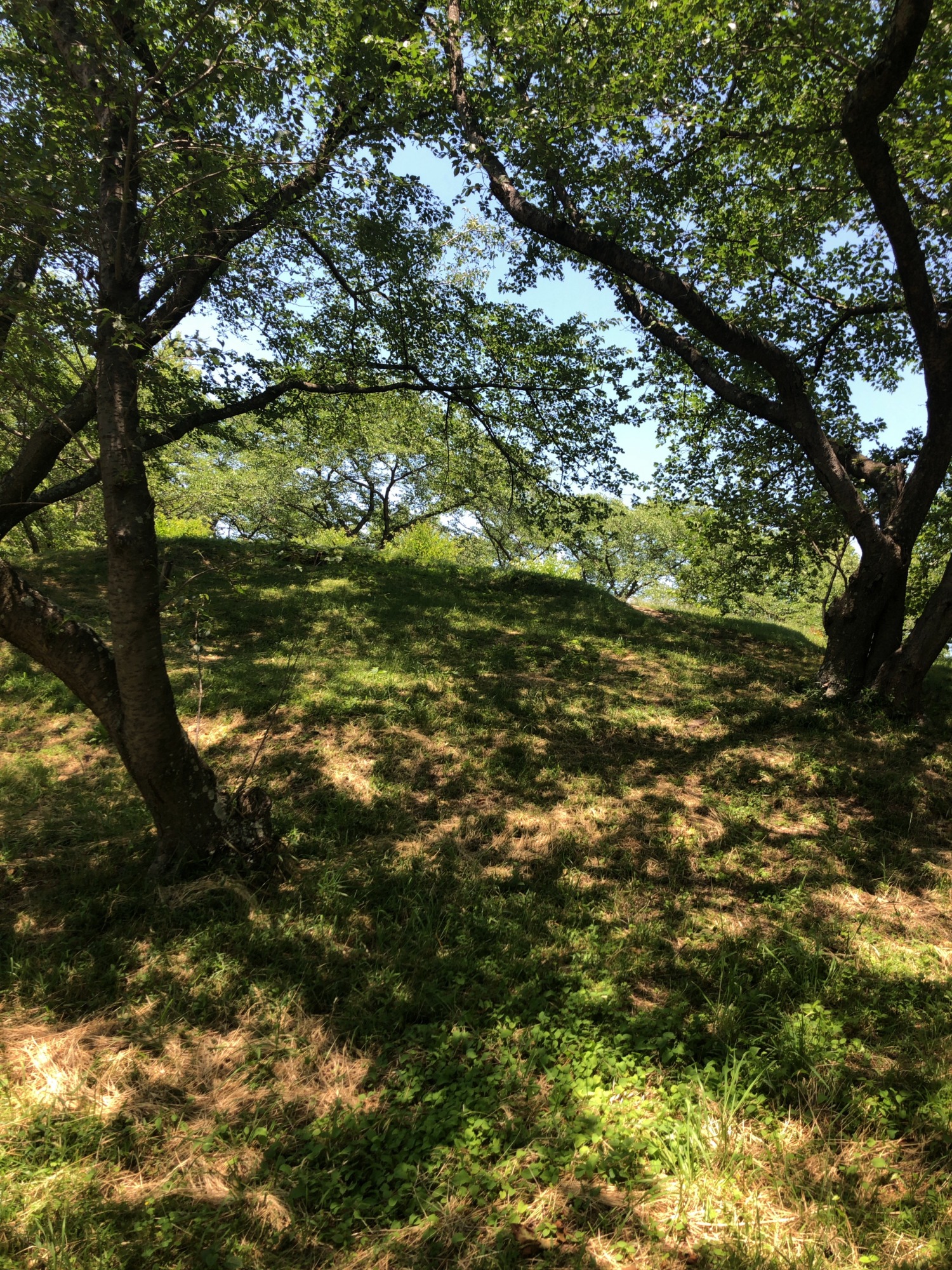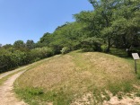 【標高85m程の丘陵上に営まれた、全長65mの前方後円墳である。後円部径43mで、南の平野側に向けた前方部がやや短く低いのが特徴である。埴輪や葺石は認められない。後円部の頂上は戦時中に高射砲陣地となった時、大きな穴があけられたが、竪穴式石室があった。】