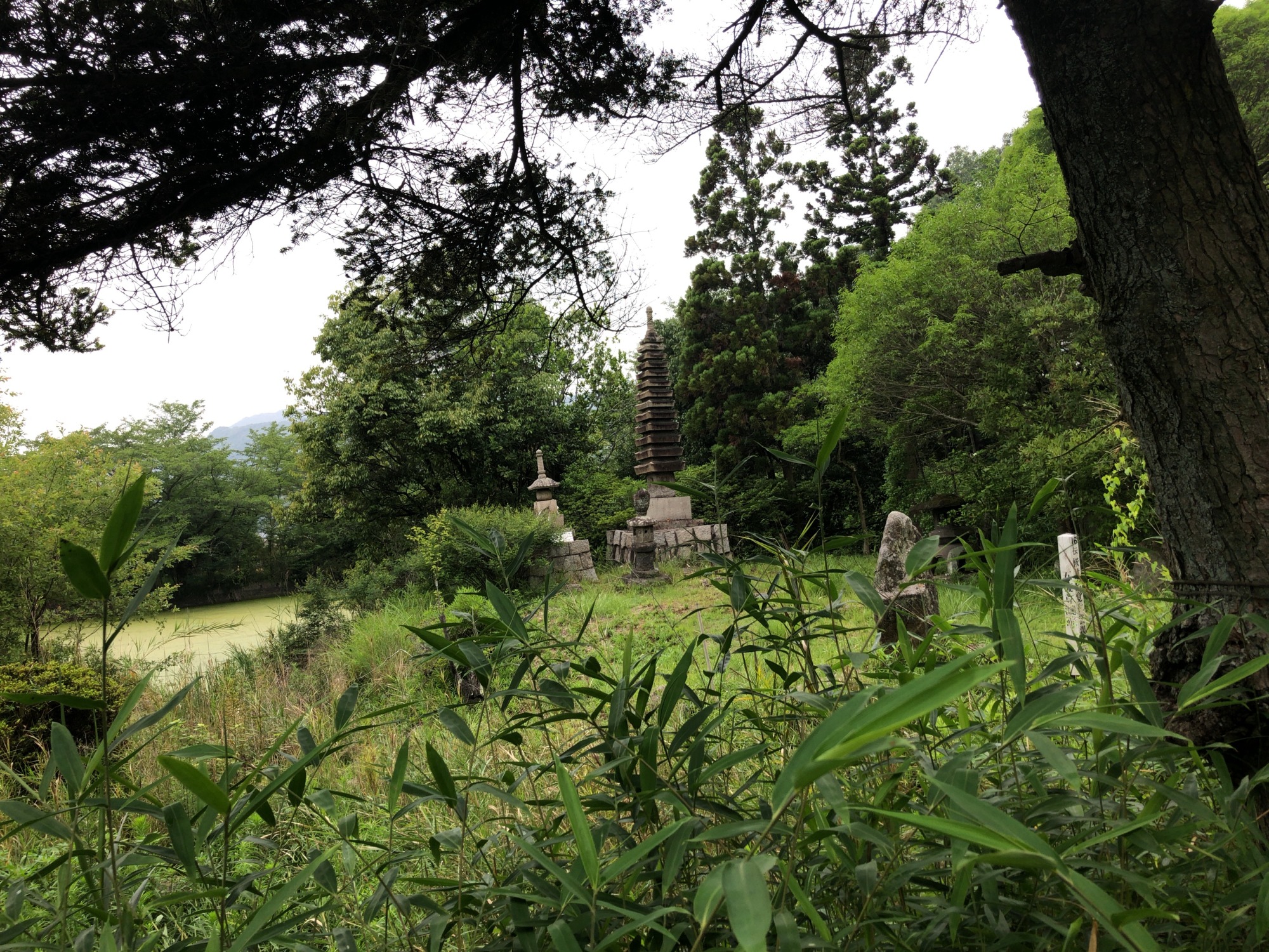 【承久3年の乱に敗れ、後鳥羽院は北条氏の為に隠岐島に配流され、第4皇子頼仁親王は当地へ配流となり、26年間御在世の後、薨去され諸興寺に葬り奉った。この間後鳥羽院は隠岐島にて崩去されたので、親王は仁治元年当境内に石造宝塔を建て日々供養されたと伝えられる。又桜井宮覚仁法親王も乱をさけ下向されたと伝えられるが、同宮は熊野三山検校宮にて特に五流山伏を取立てられたので、同親王の供養塔も境内池中に建てたと伝えられる。】