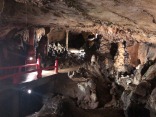 【内部は高低がさほどない全長 約450 m の洞窟が続いている。】