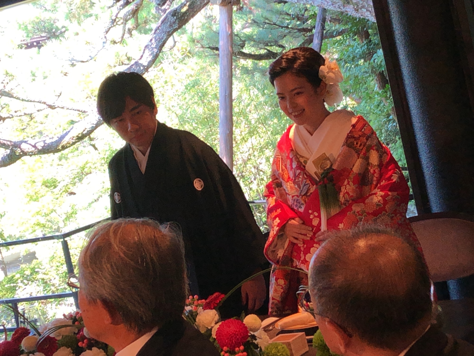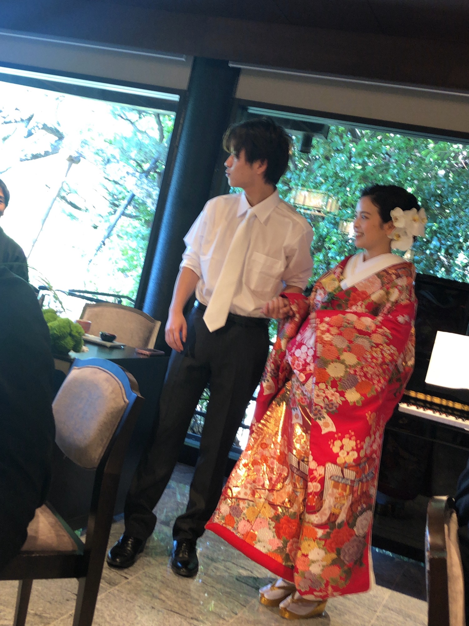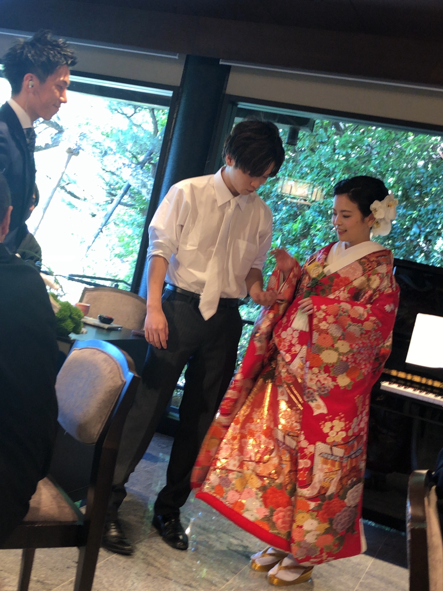平安神宮会館へ行ってきました。附属高校からの一級下の老木正彰先生と老木美帆先生のお嬢さんで、大槻が4年生の学年担任をしていた頃に、担当していた菜々美さんの披露宴です!!