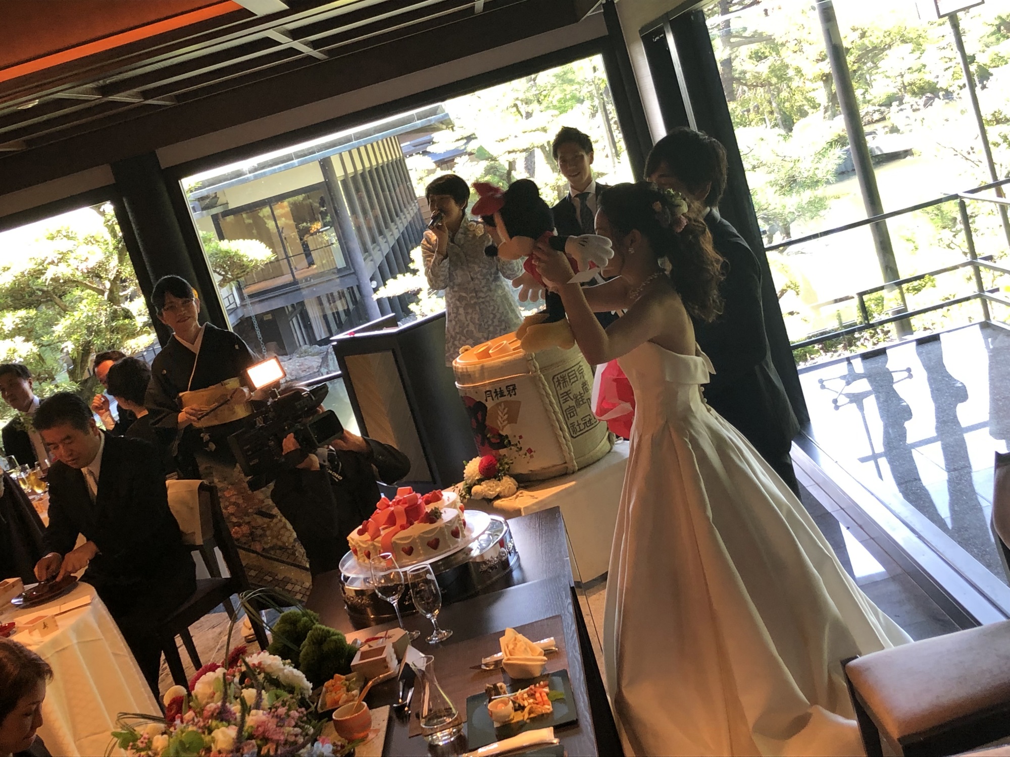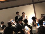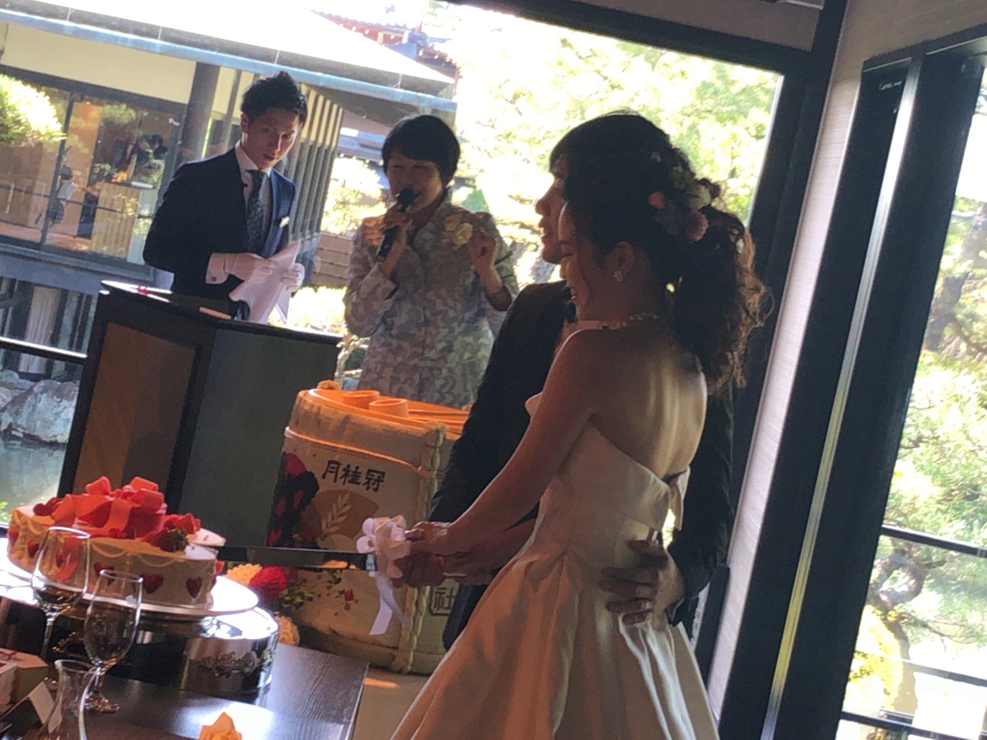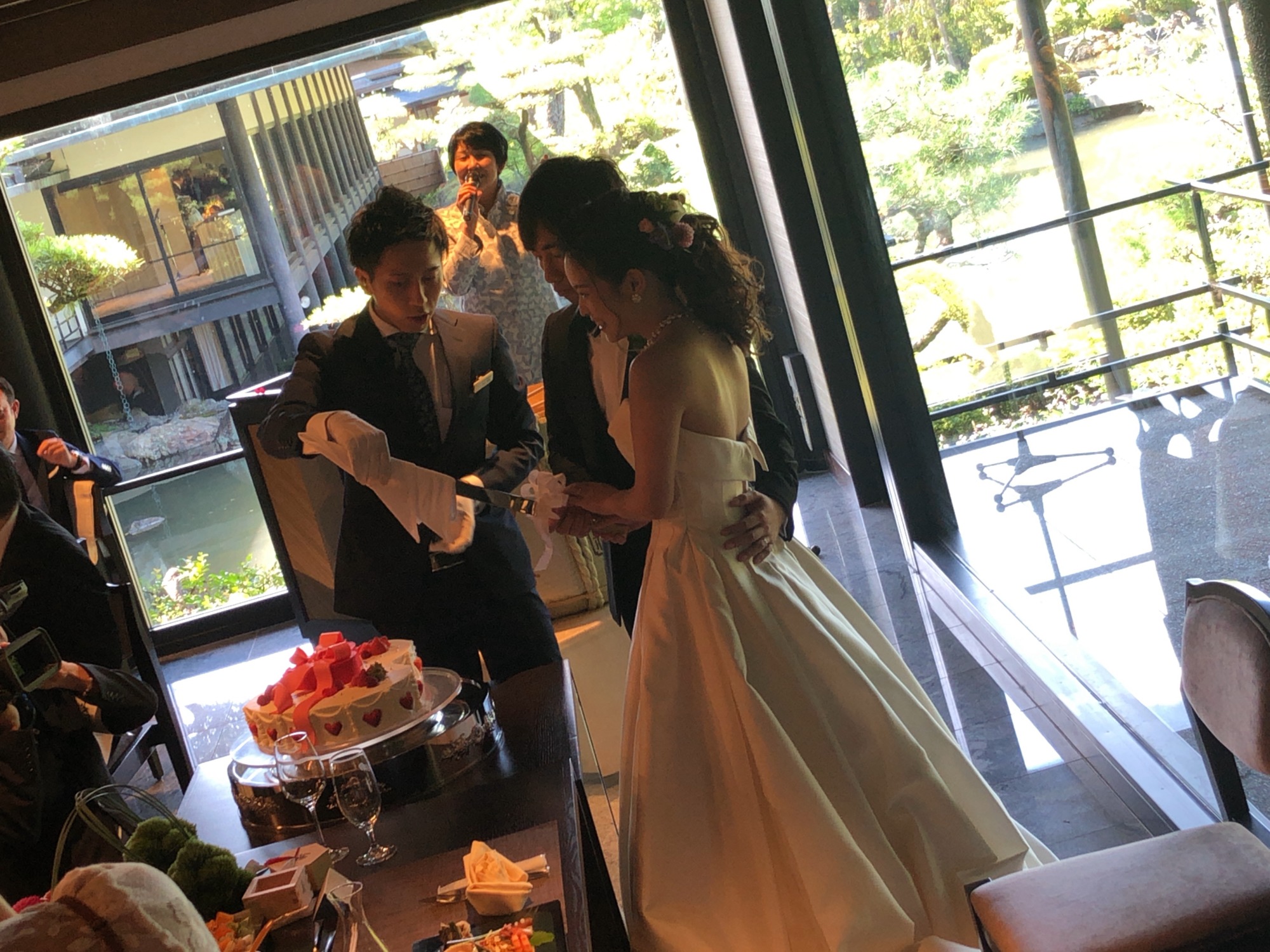 新婦父がサプライズで(当初予定は無かったそうですが)ウェディングケーキへの入刀です。