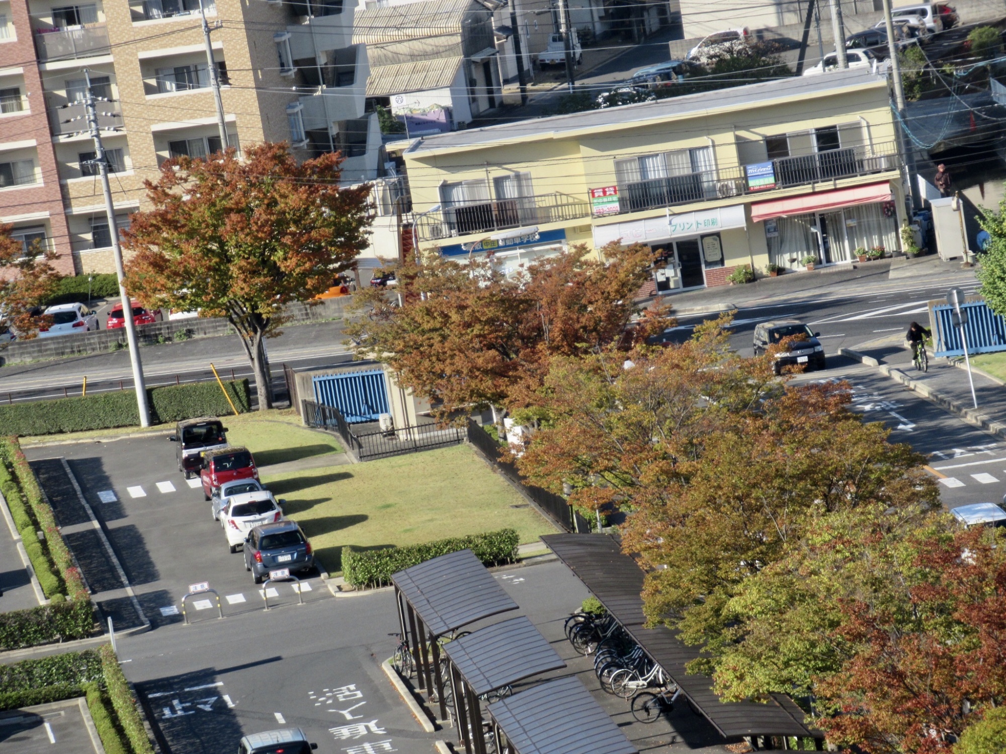 次は2週先の予定・・この駐輪場横は、もう落葉になっているかも。