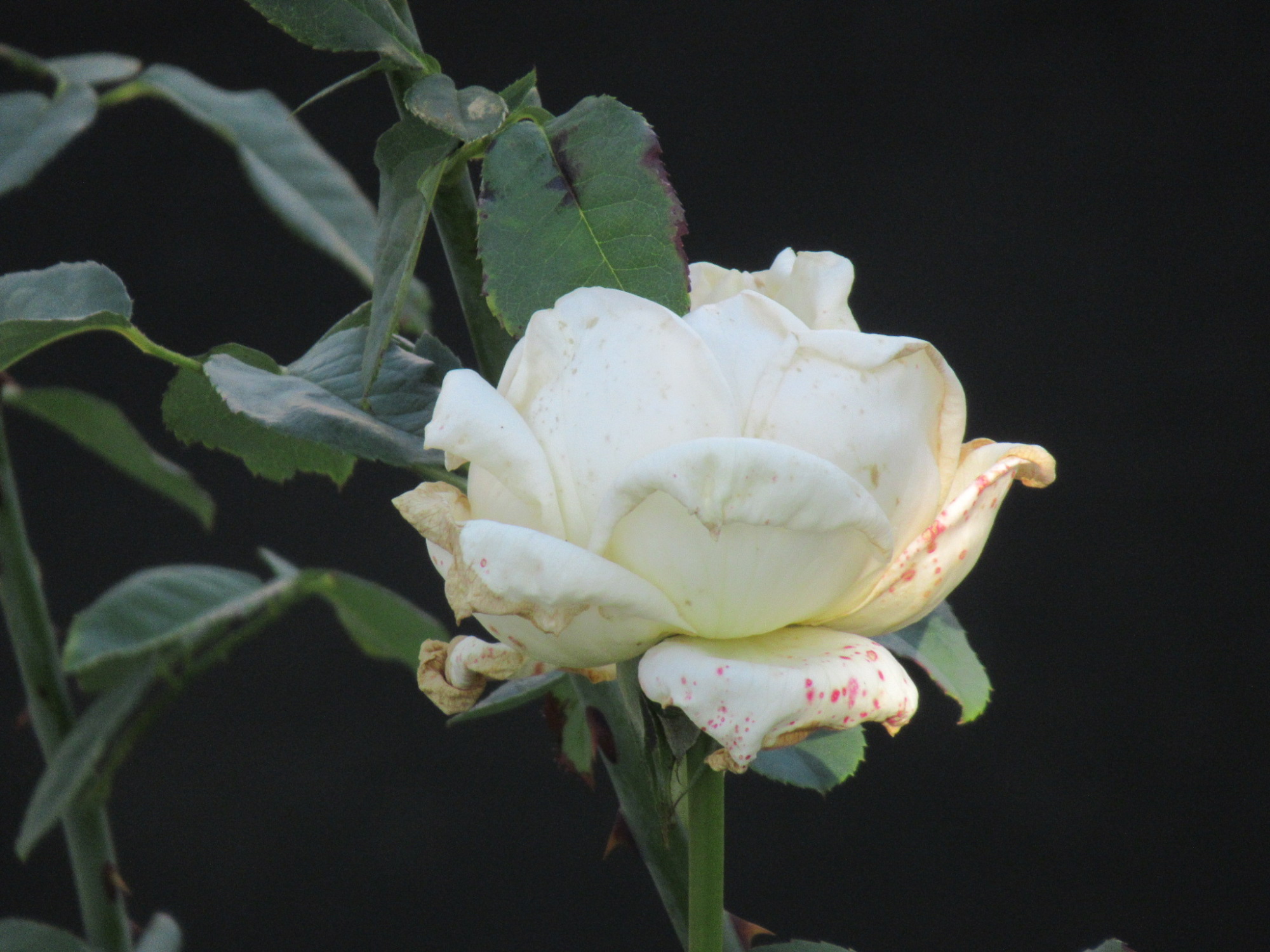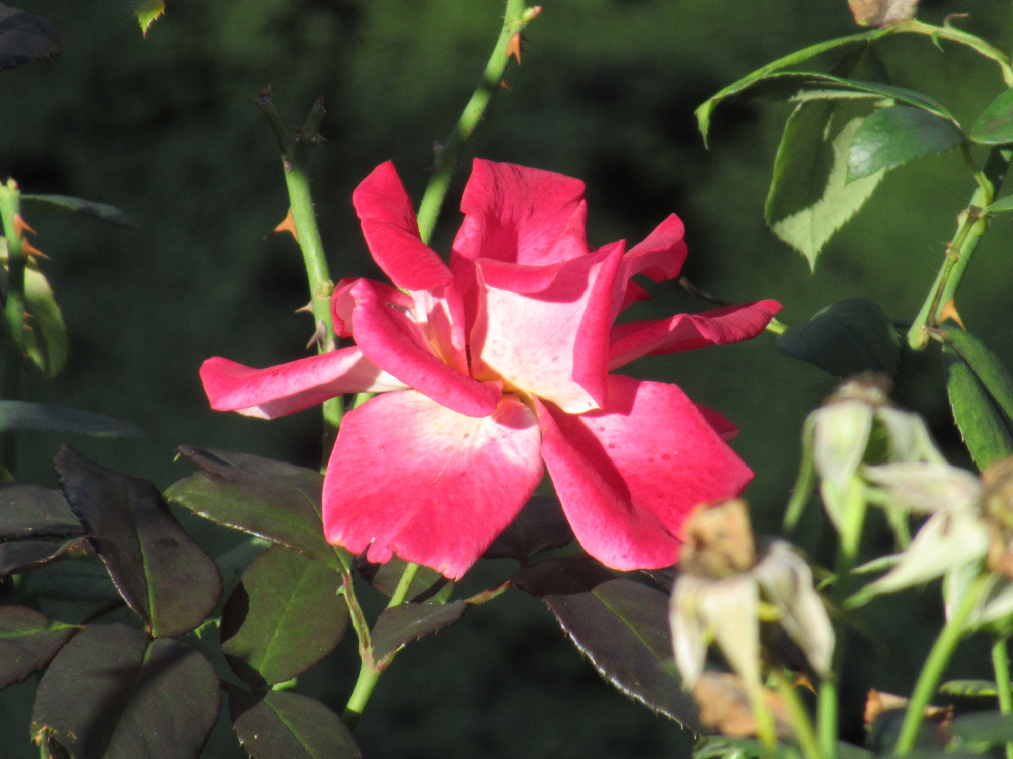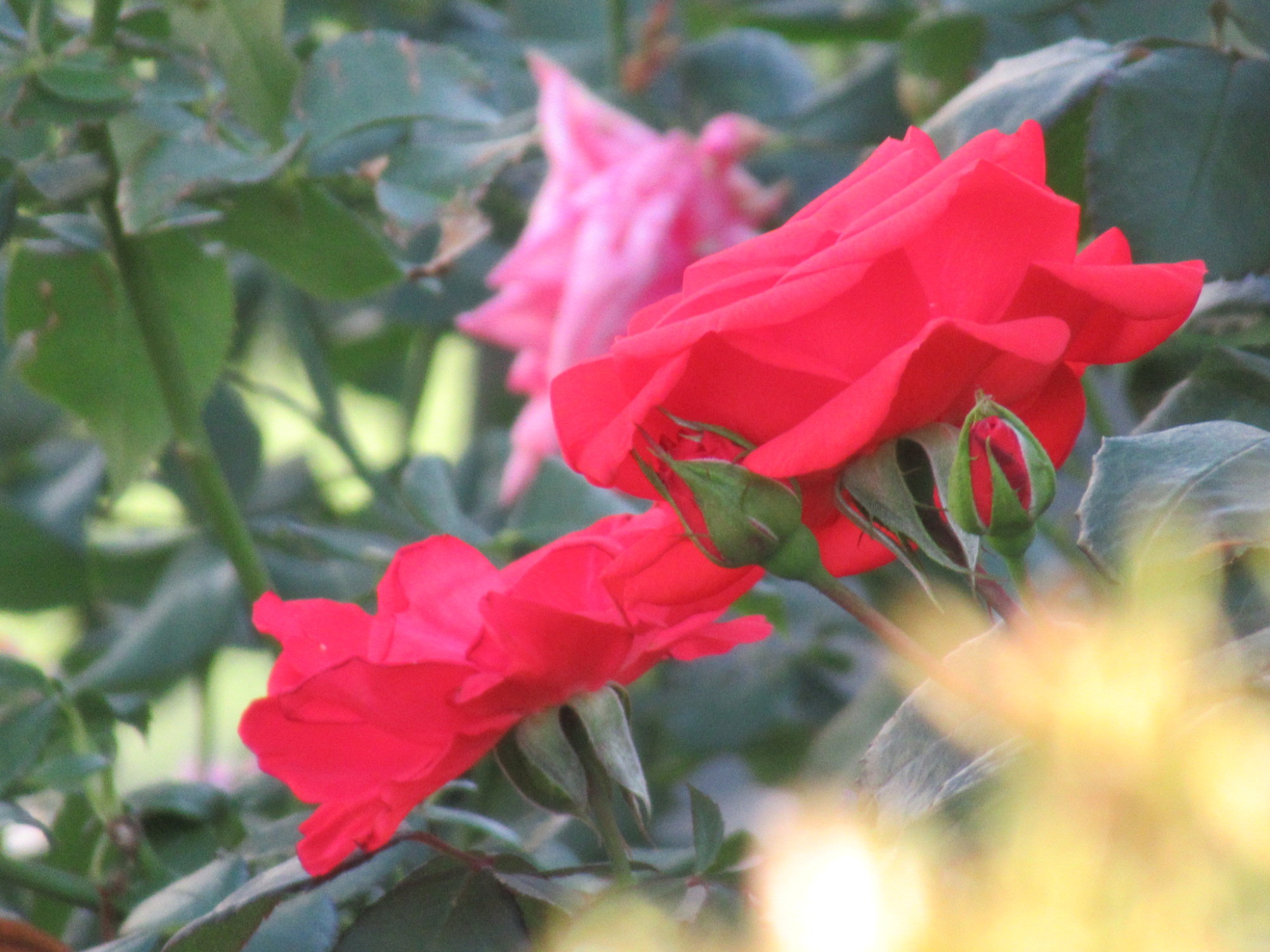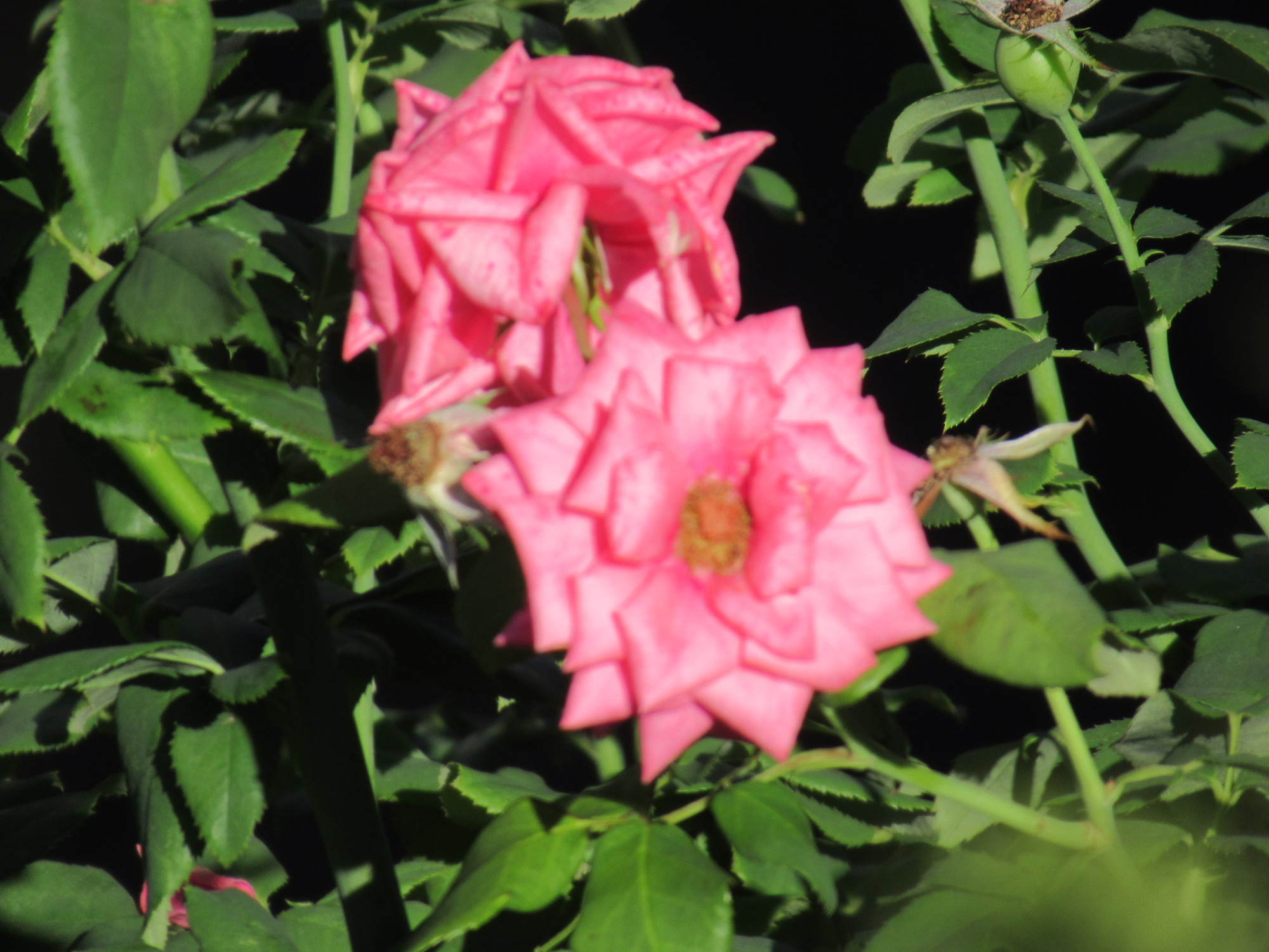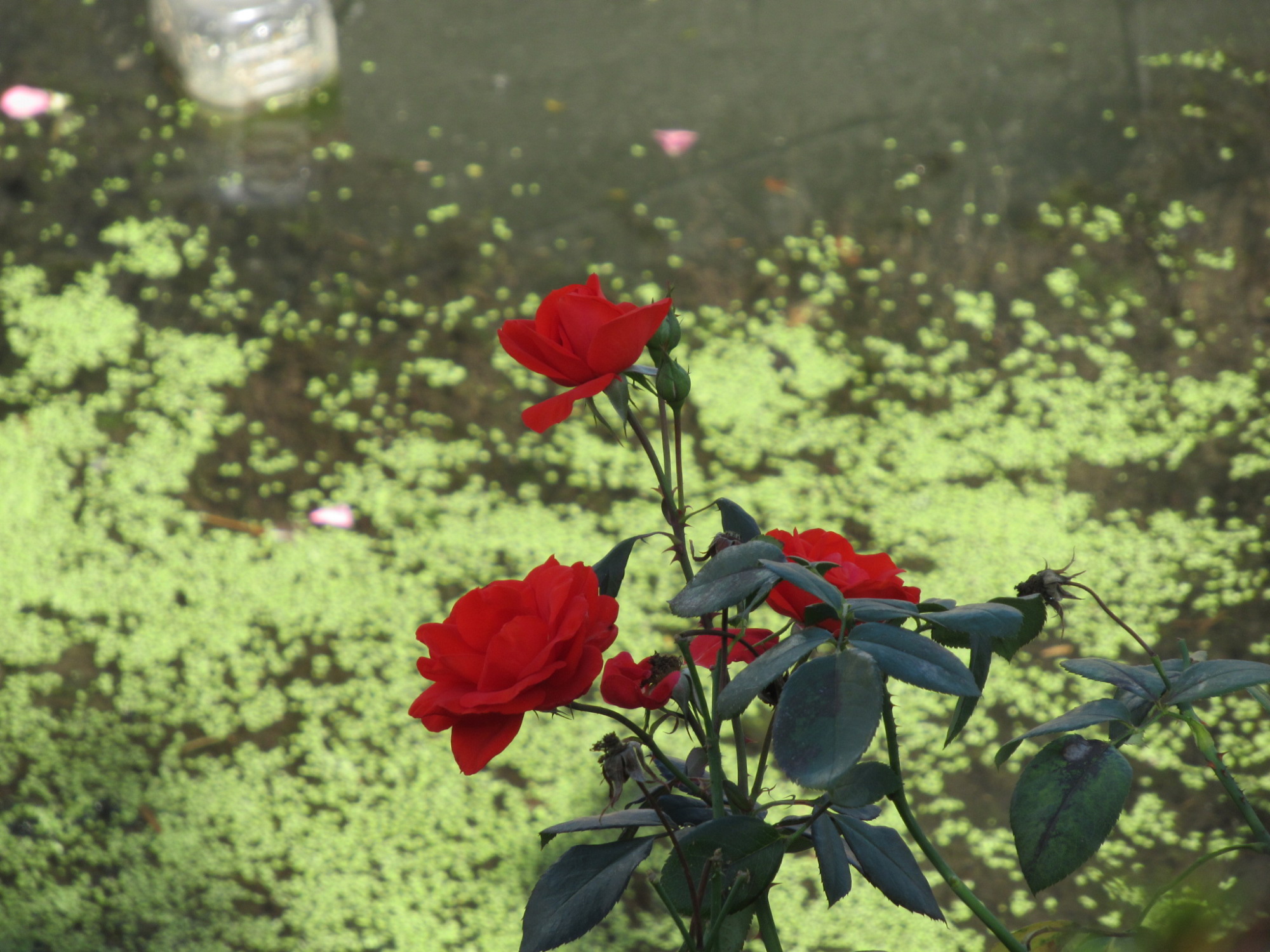 さて、いつものコースで、今度は、駐車場の向こう、県道横の用水路の脇の薔薇!