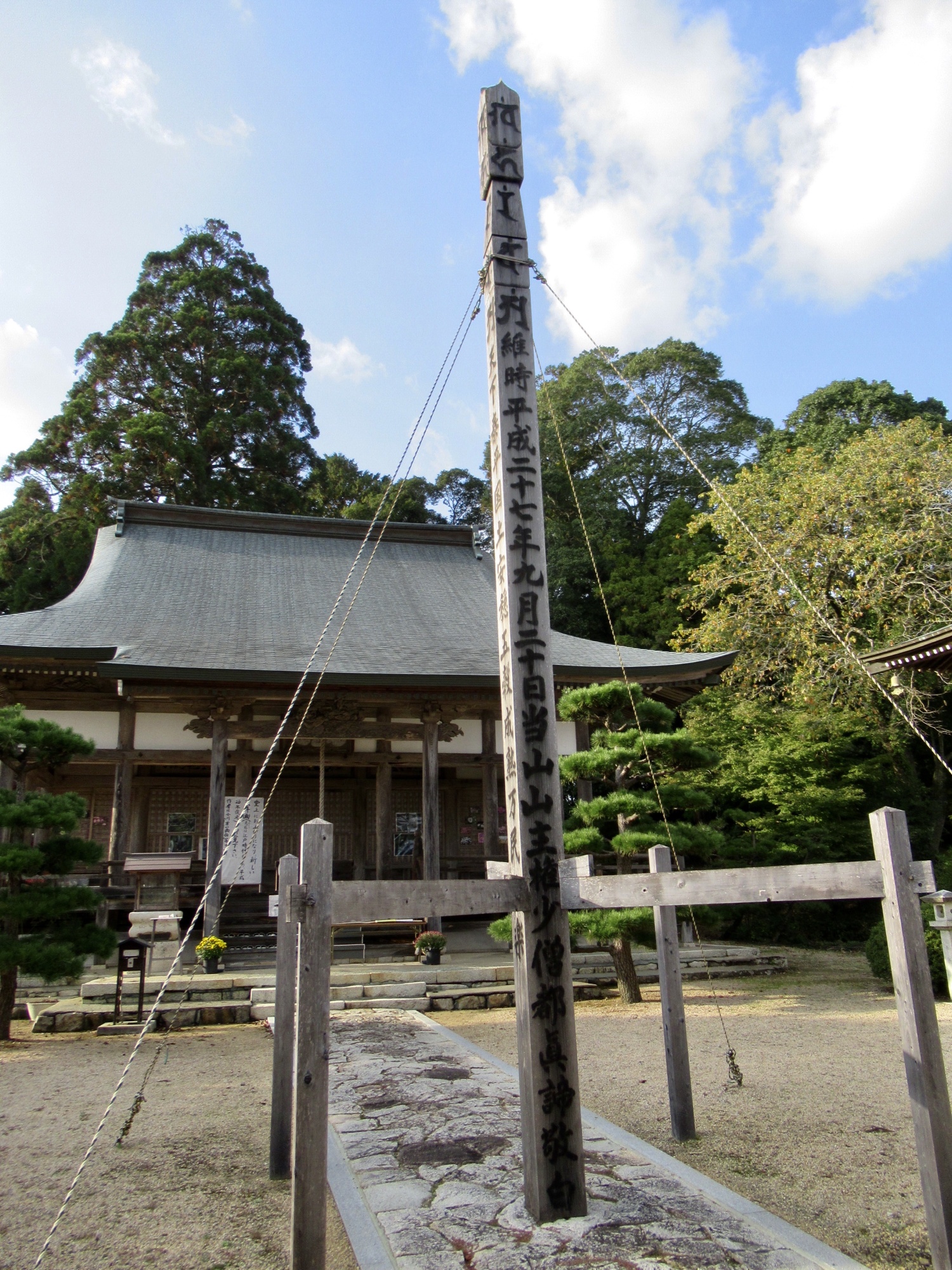 【霊亀元年(715年)、東大寺創建の勧進にかかわった行基が本宮山山頂付近に開基した正法寺が起源。弘安5年(1282年)に伽藍を焼失し現在地に移転、現在の寺号に改めた。】