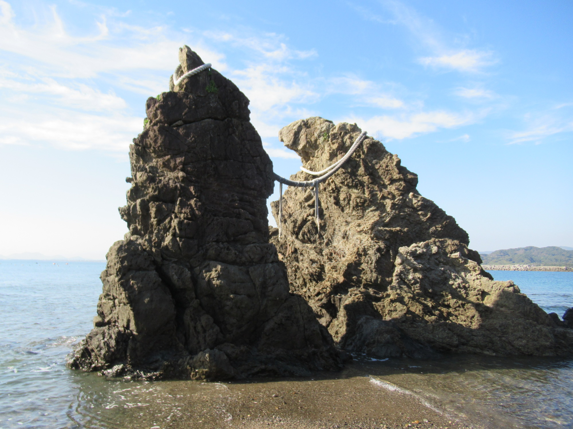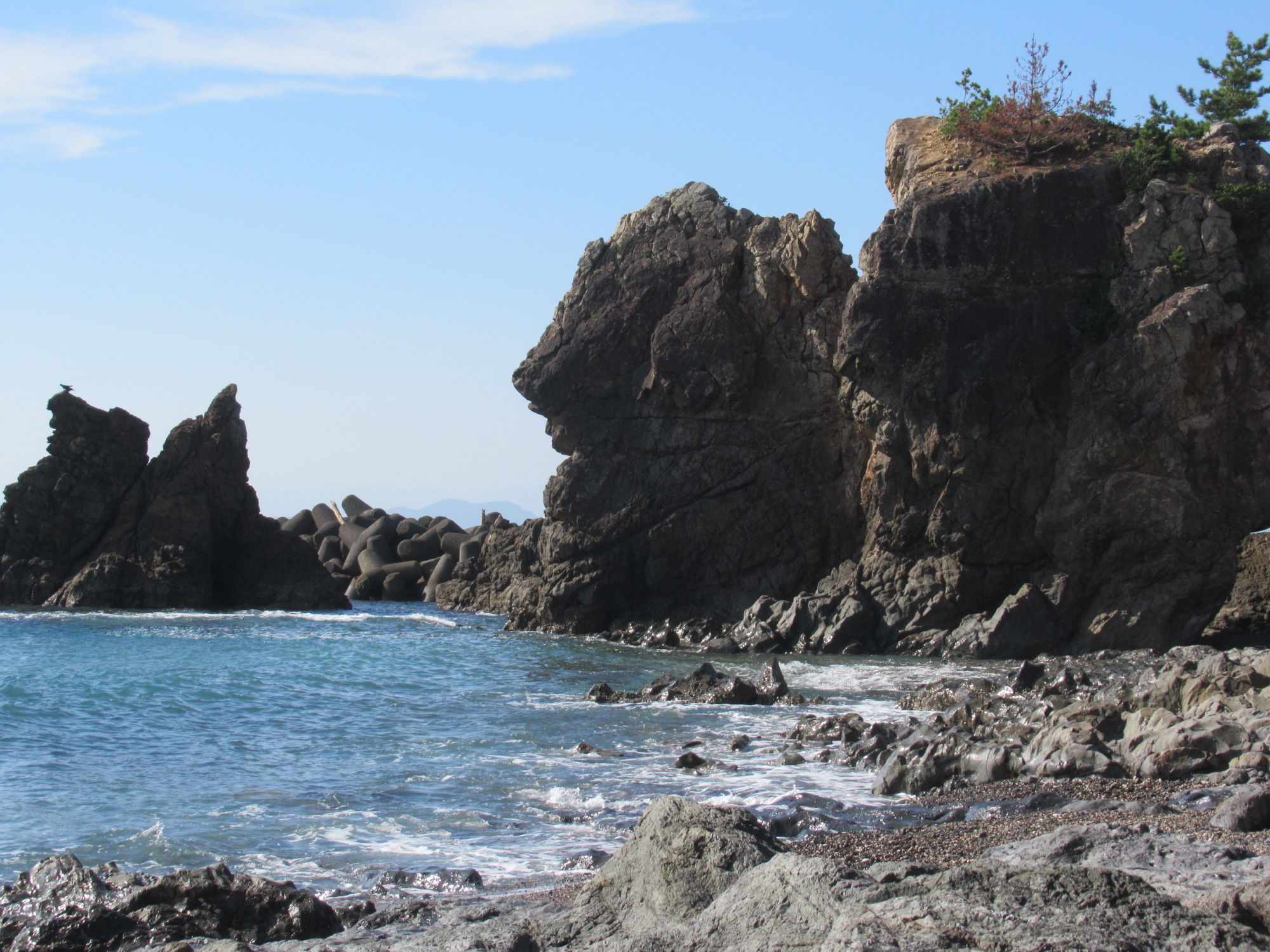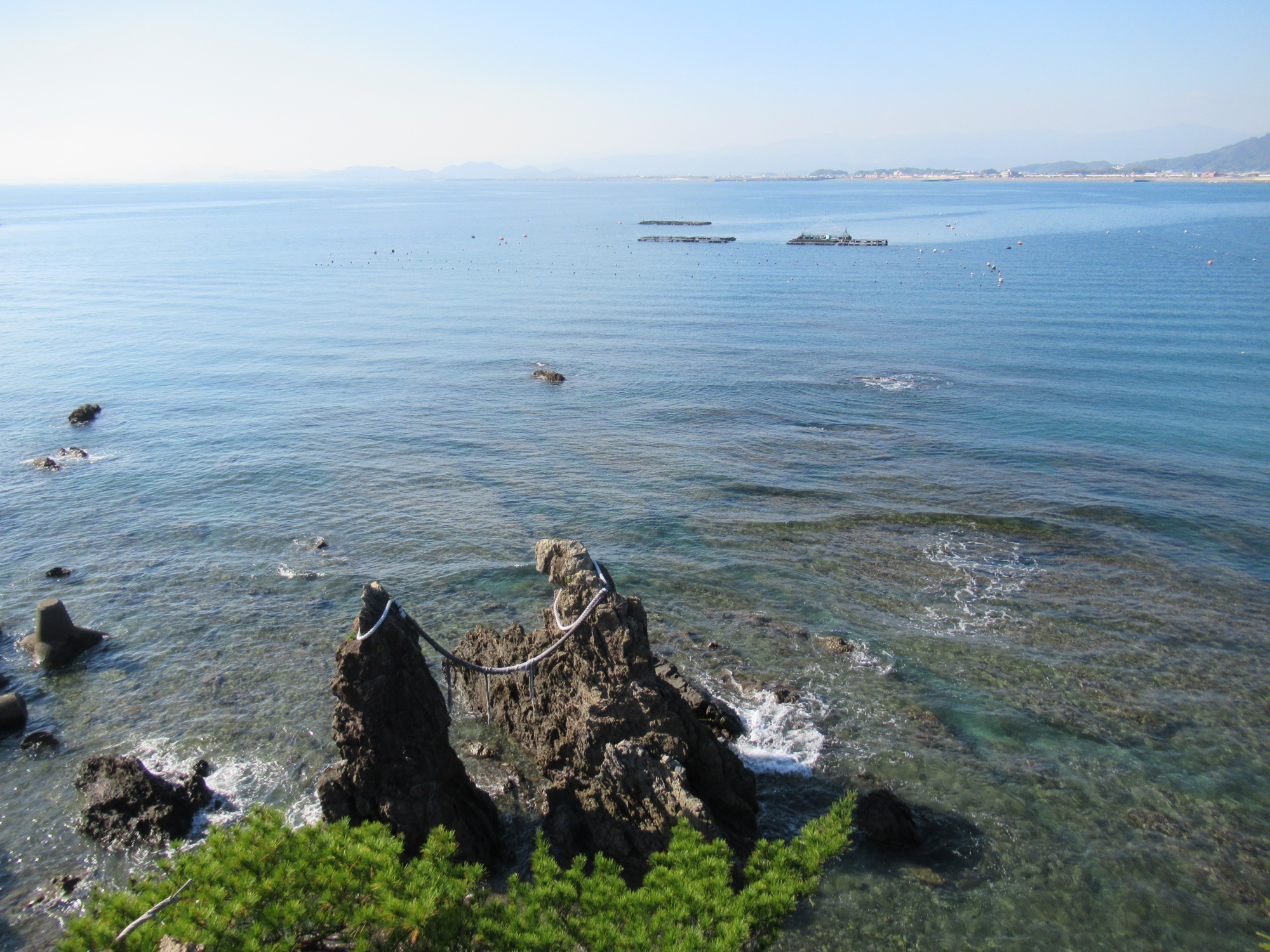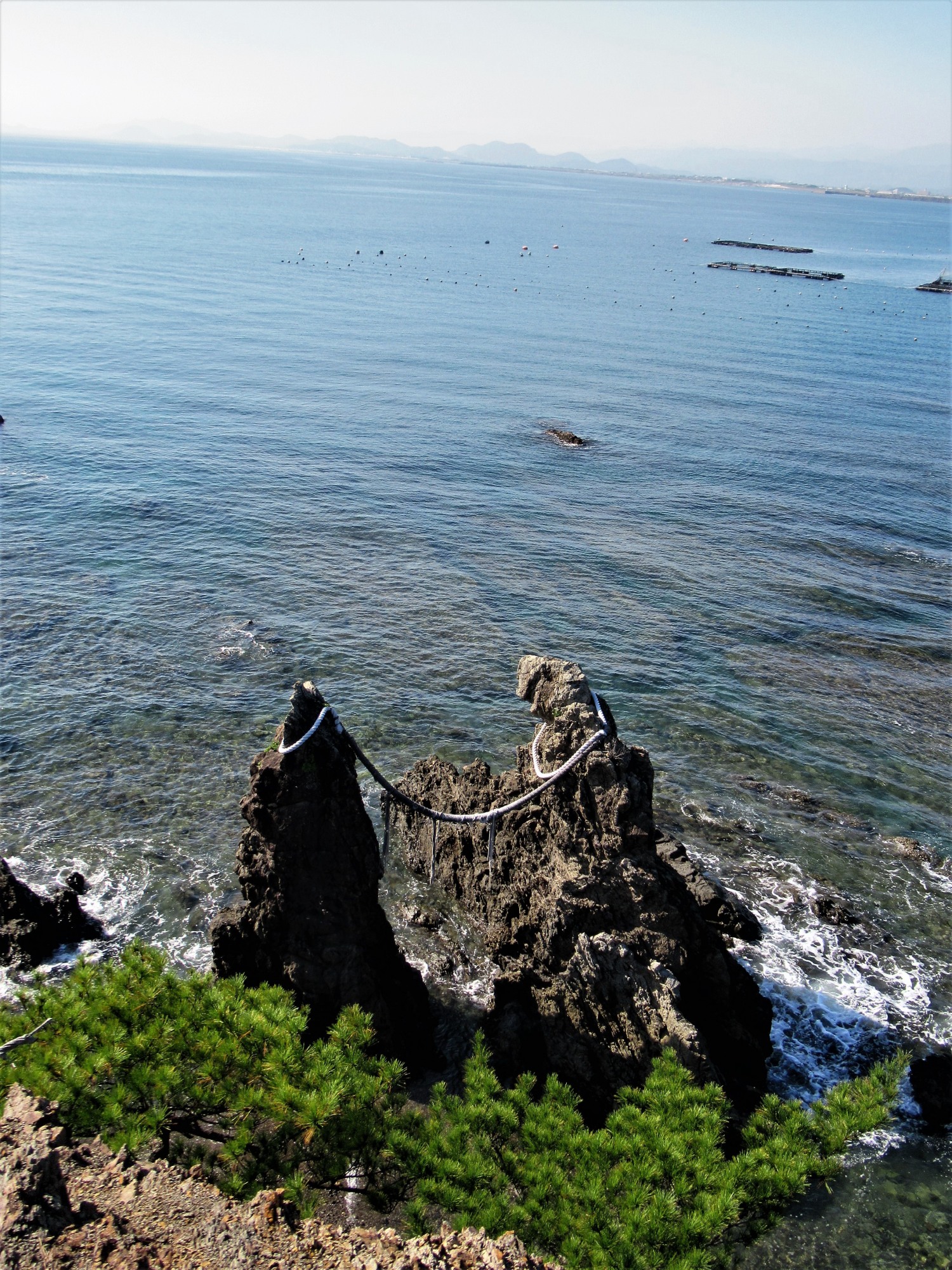 さて、灯台の立っている岬の突端まで、恐々行くと・・・夫婦岩