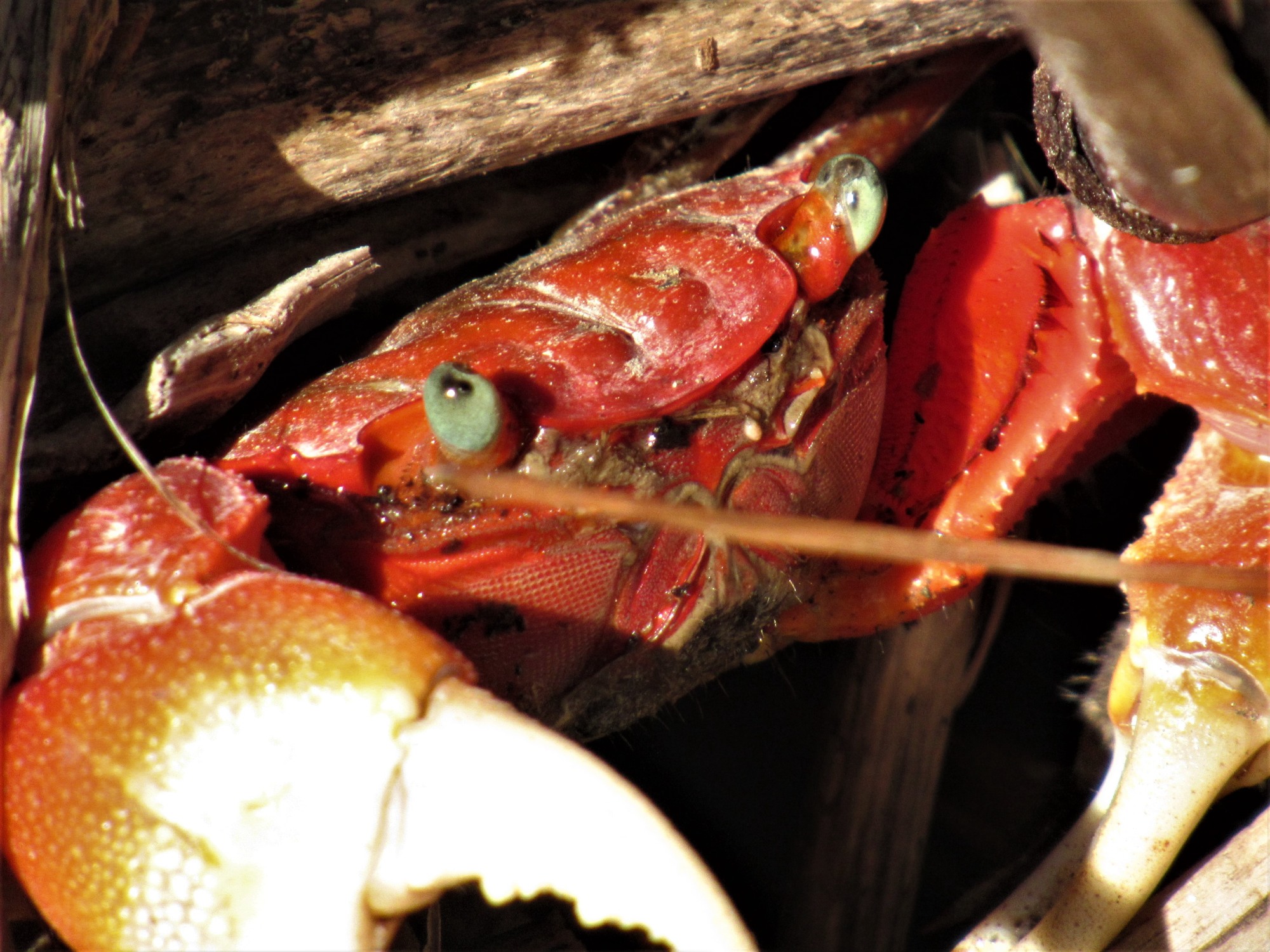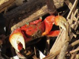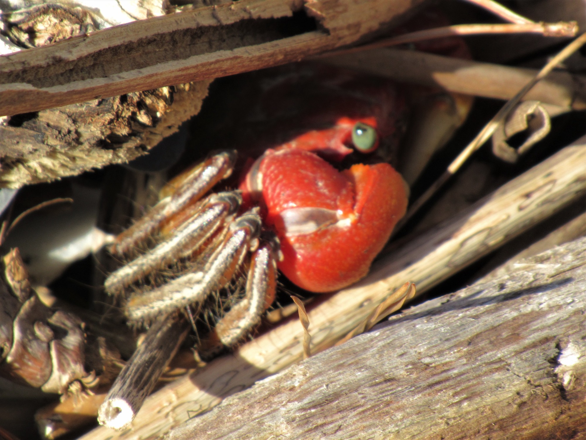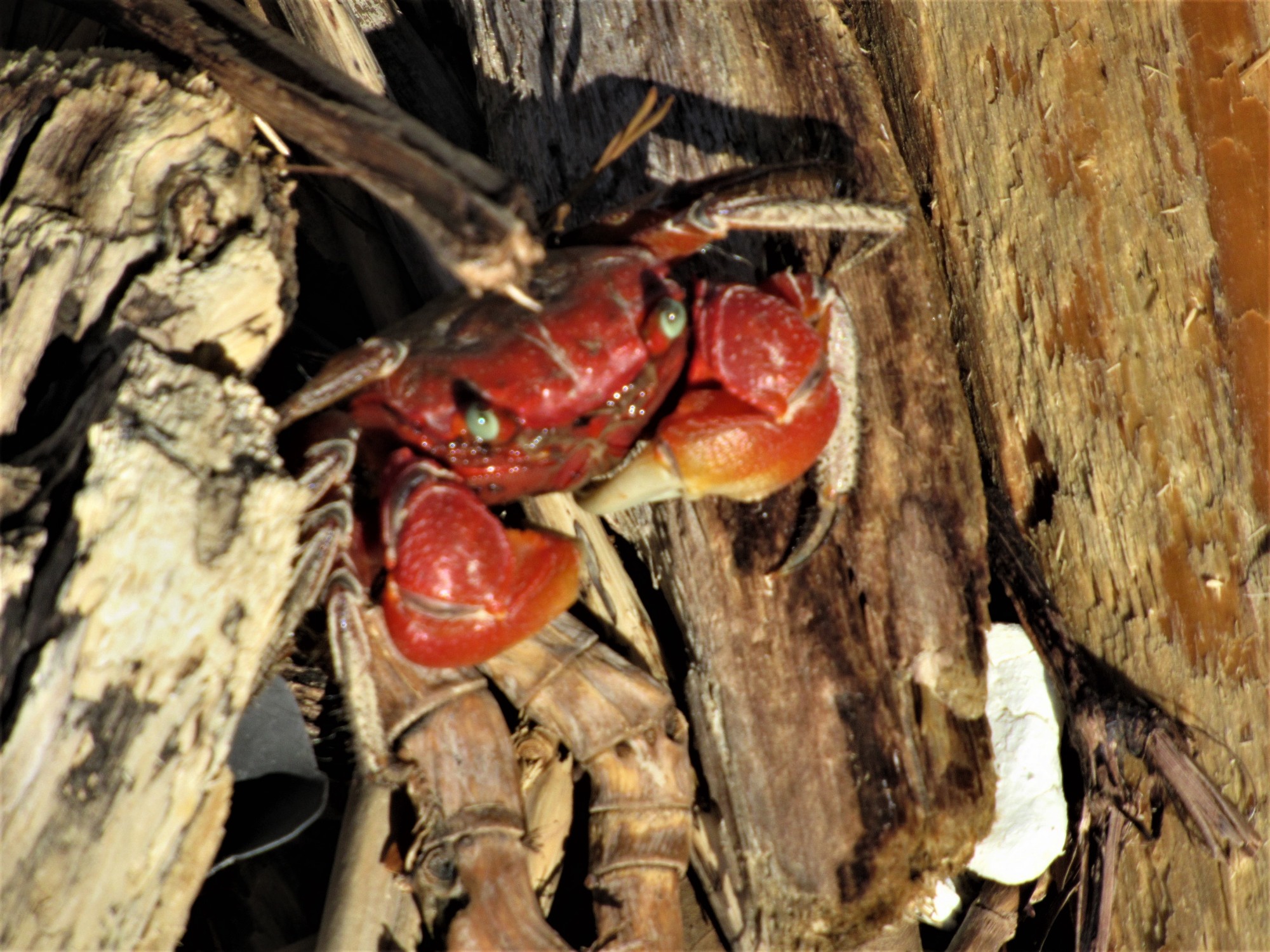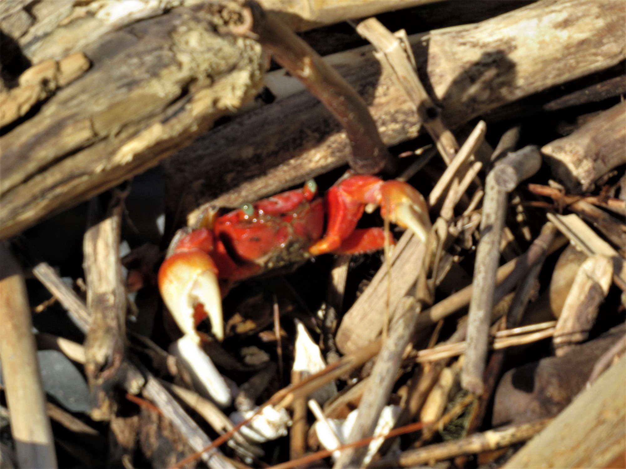 おっと、岸から結構、離れた流木の所に~~カニさん!
