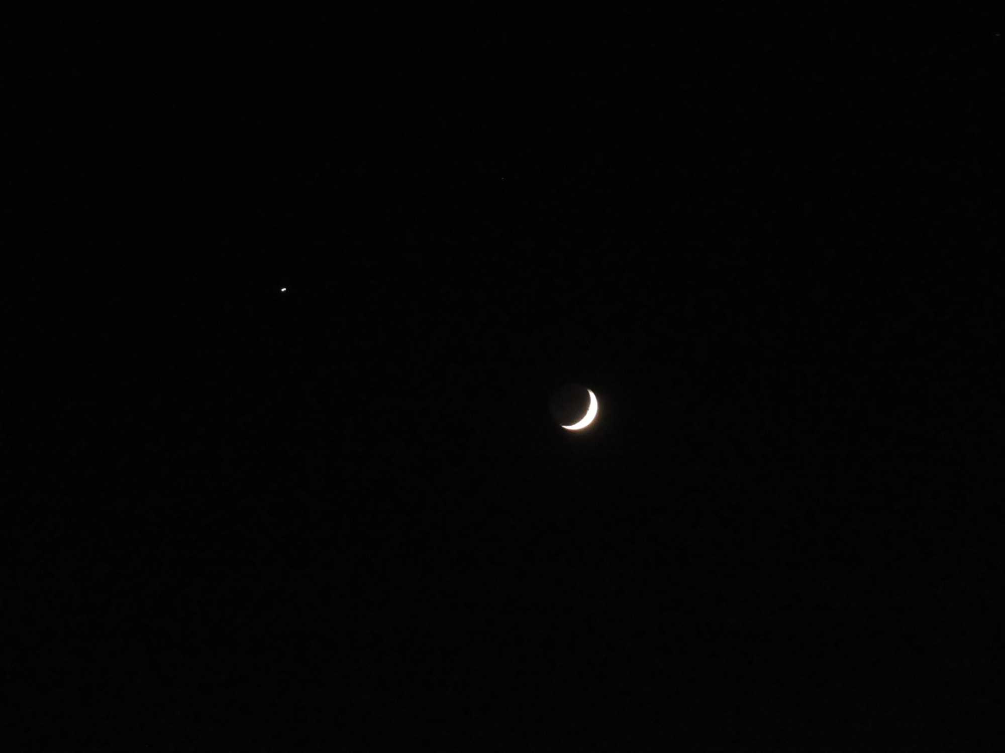 修了すると、もう暗くなっていました。上弦の月~、三日月です。