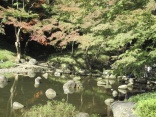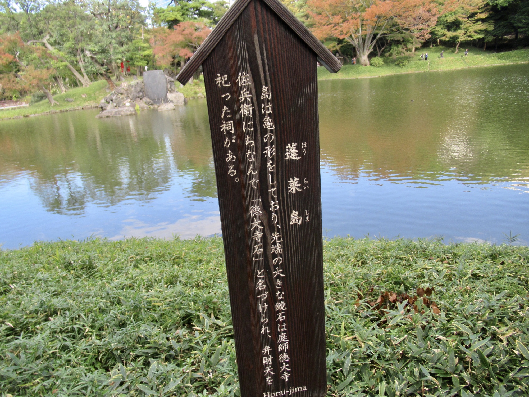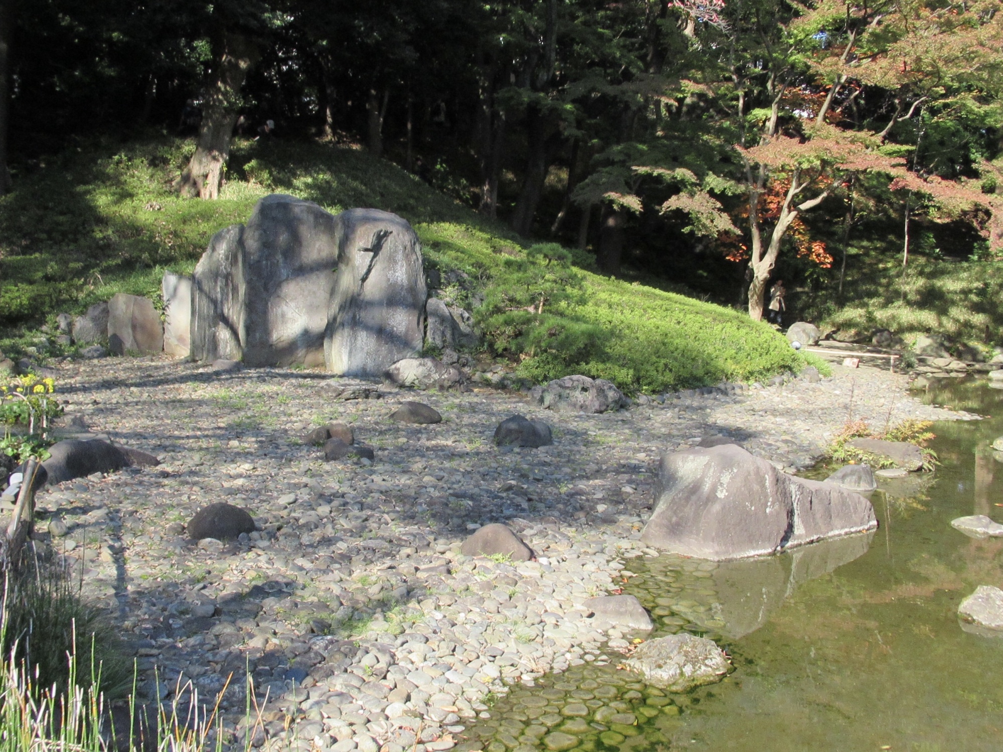 【7万平方メートル以上の広大な園内には、蓬莱島と徳大寺石を配した大泉水を中心に、ウメ、サクラ、ツツジ、ハナショウブなどが植えられ、四季を通じて情緒豊かな景色が広がる。】