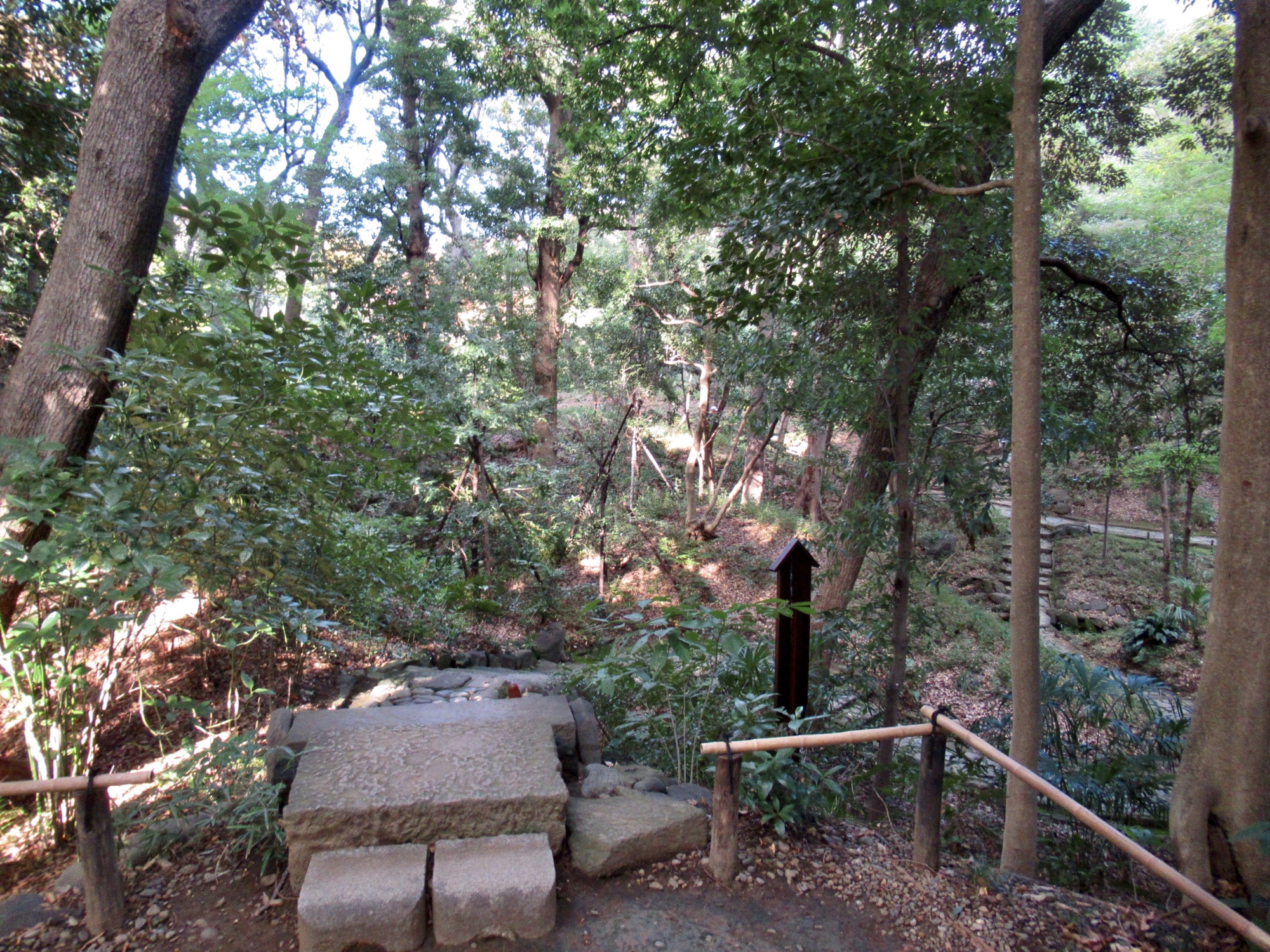 【1869年(明治2年)の版籍奉還により藩主徳川昭武が邸宅とともに新政府に奉還し、そののち東京砲兵工廠の敷地の一部として陸軍省の所管となった。(この名残で現在でも砲兵工廠の遺構のいくつかを園内で見ることができる)】