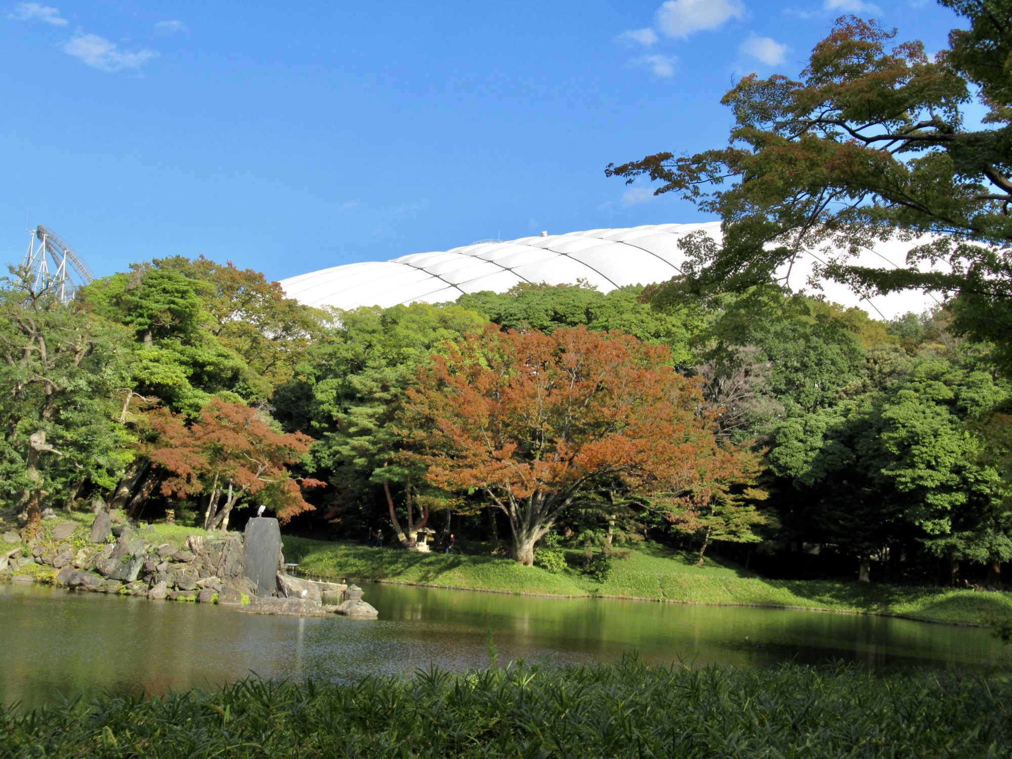 【江戸時代初期に水戸徳川家の江戸上屋敷内につくられた築山泉水回遊式の日本庭園(大名庭園)であり、国の特別史跡及び特別名勝に指定されている。】