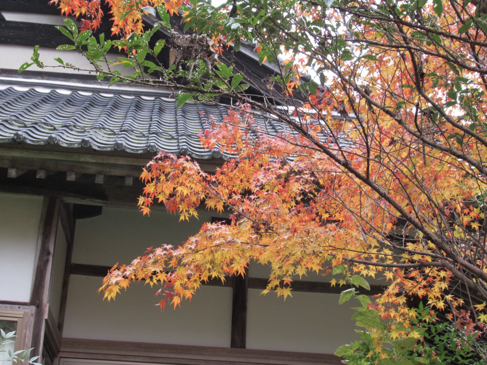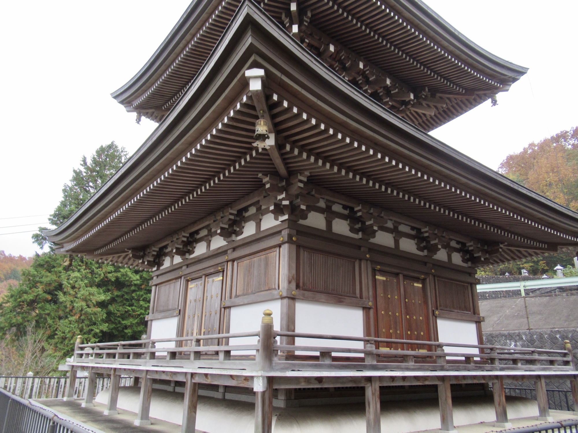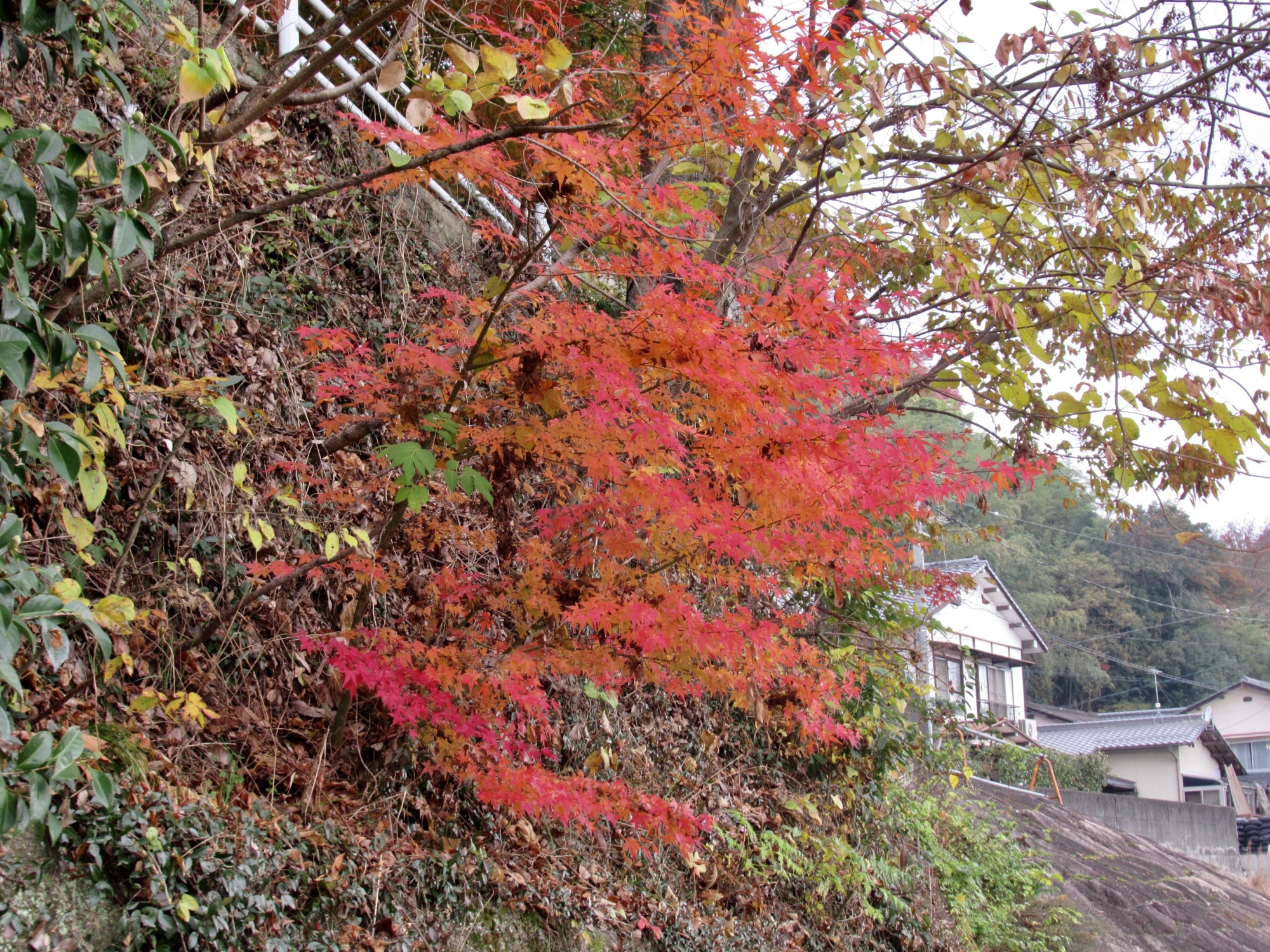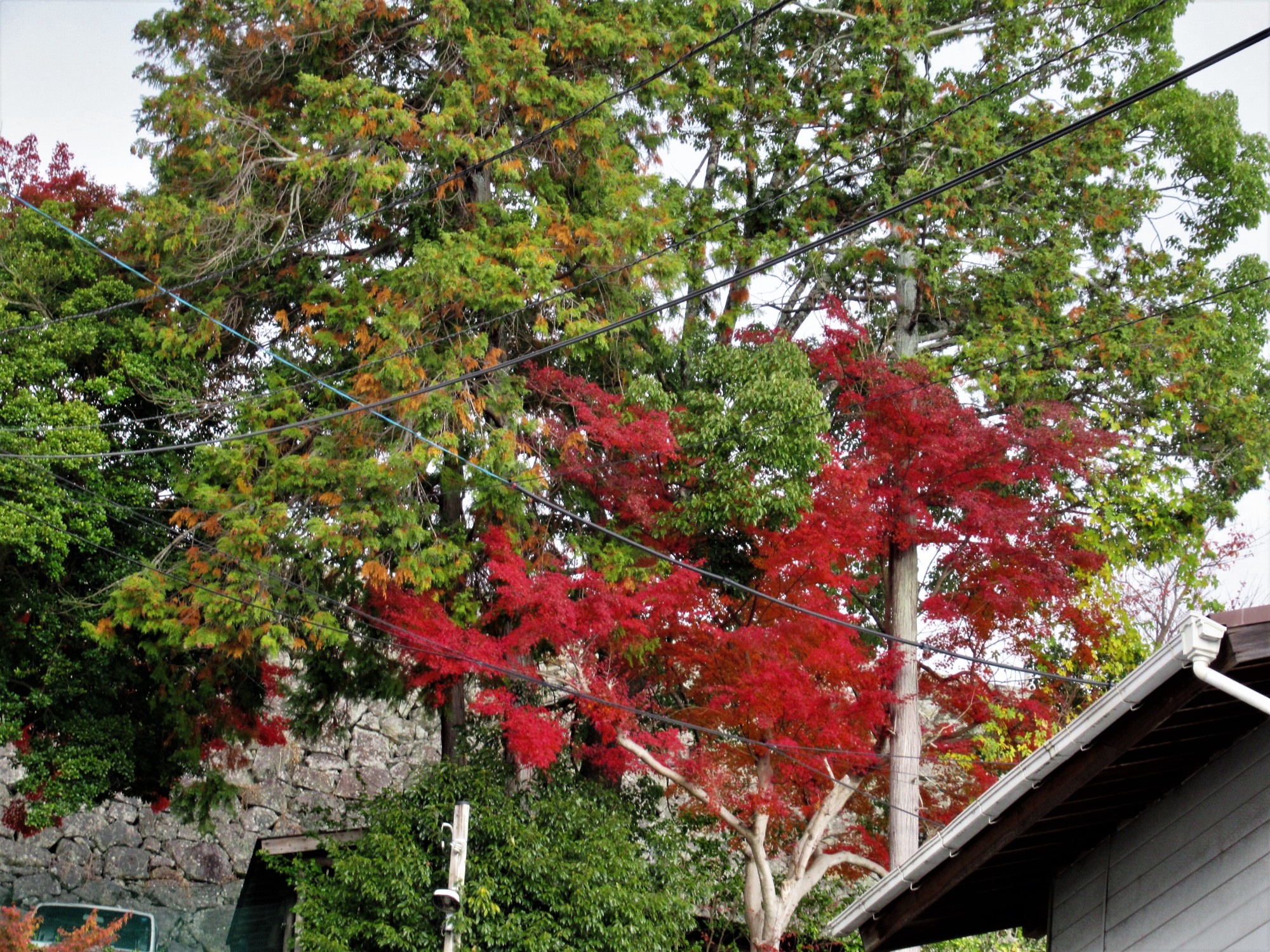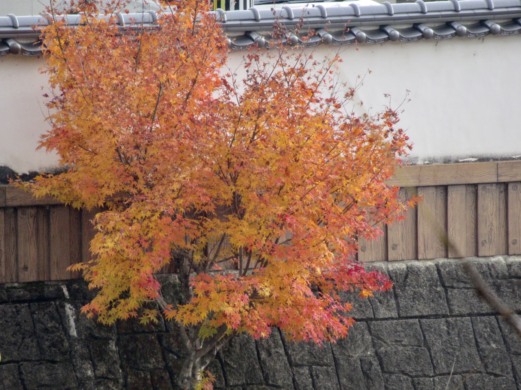 さて、ちょっと早めに出発して、大学から~ナビ任せにしていたら、すごく細い峠を通って(御津と建部の間の浜坂峠)・・で、建部からはR53を北上・・・山が錦繡~で、津山に入る処で、中腹に塔とその下に銀杏!