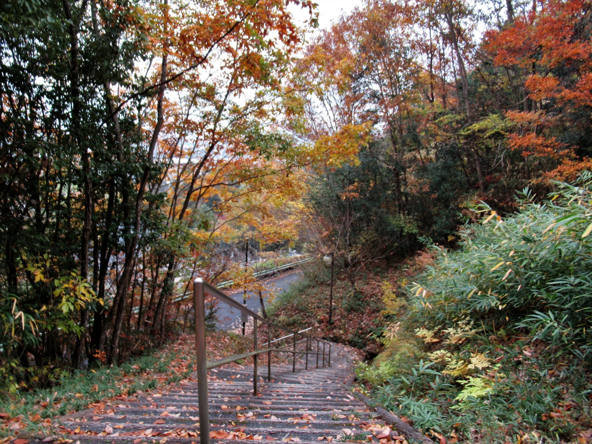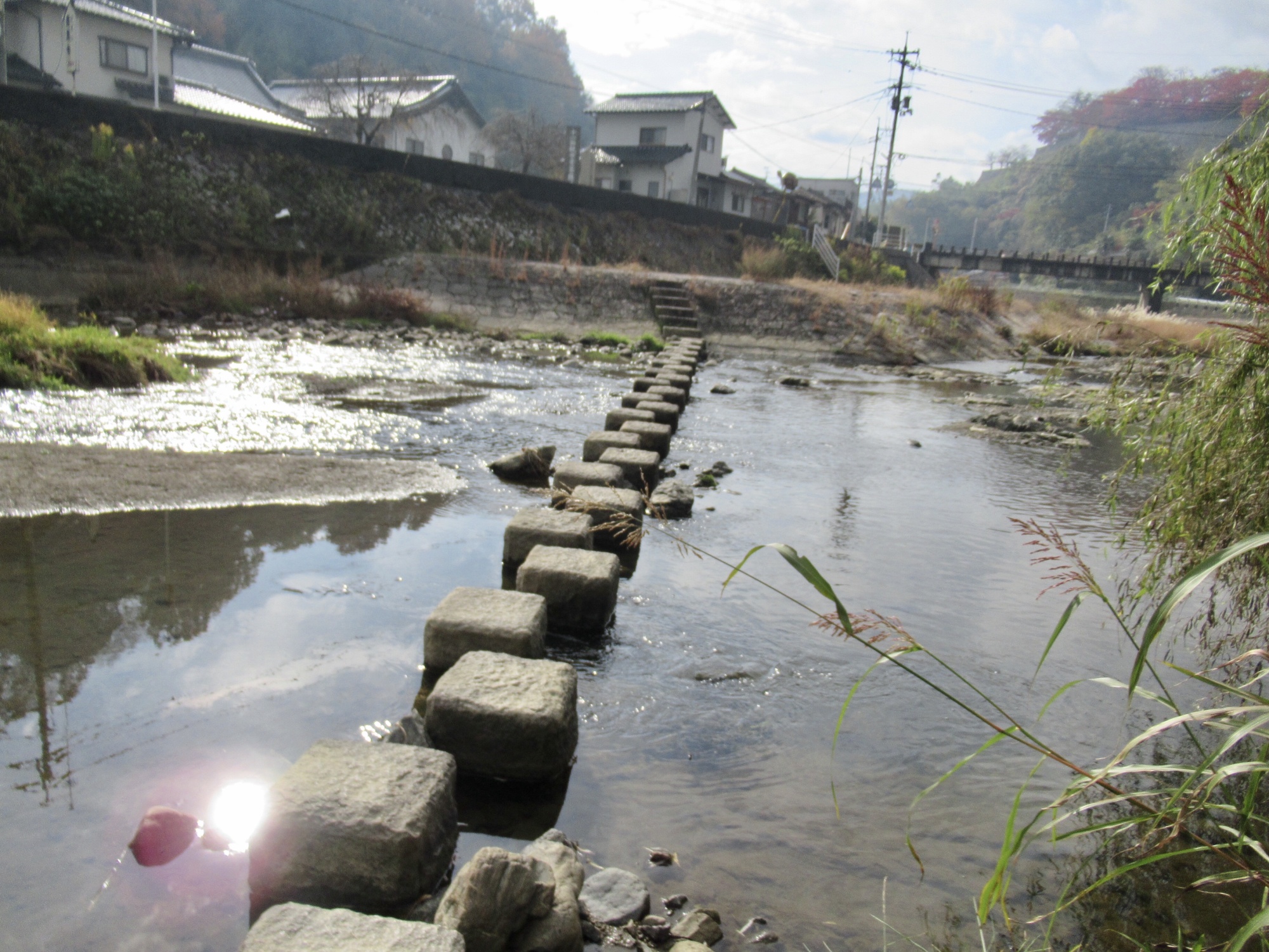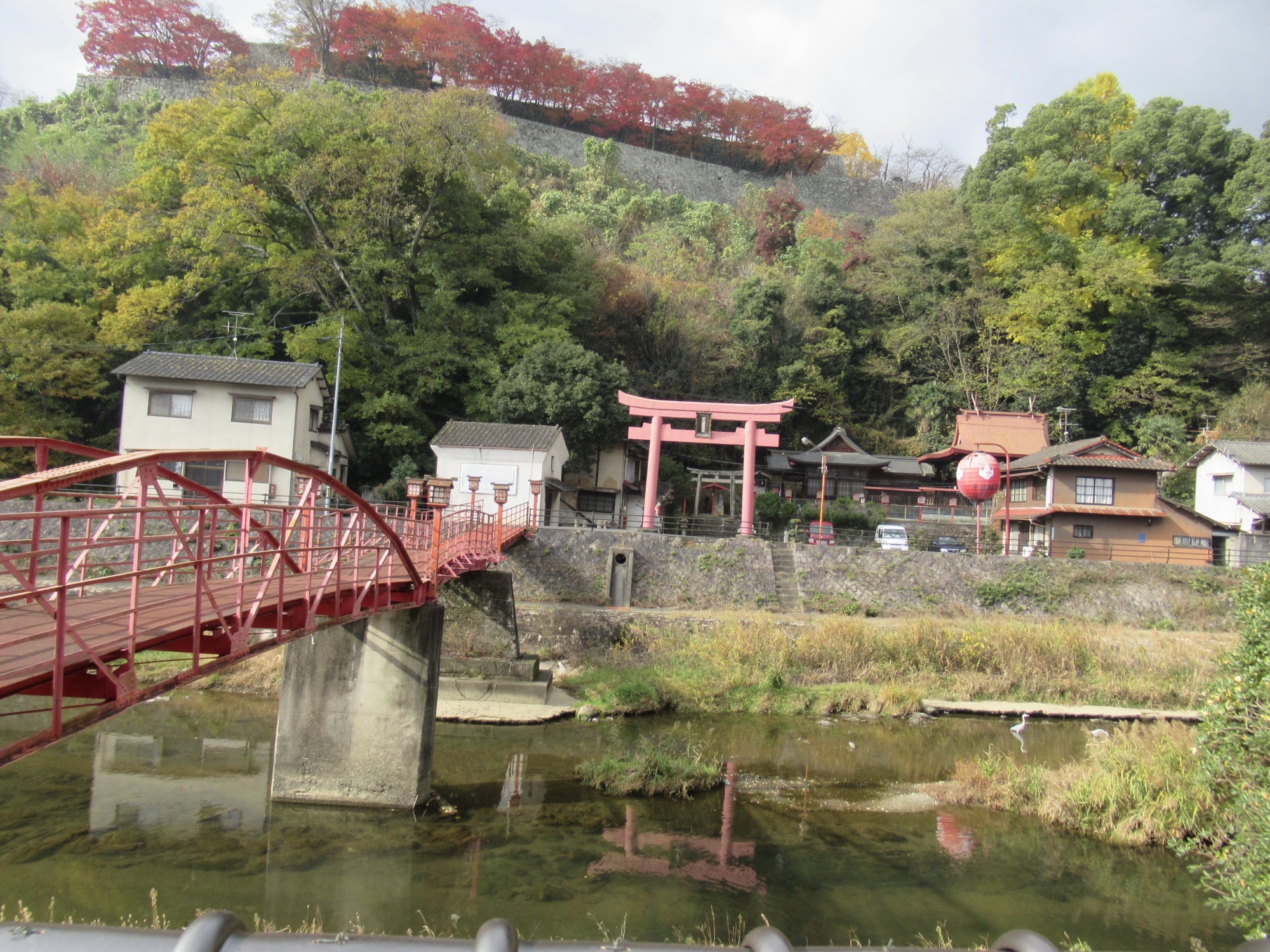 さて、その後・・・結局、美作大学の駐車場に停めて・・・お土産と会費制のランチの千円を作るために・・観光センターまで、調べると、2.2kmくらいで徒歩圏内なので、宮川沿いを歩きました。そして、まずは、鶴山公園(津山城址)の麓、東よりの斜面の千代稲荷神社