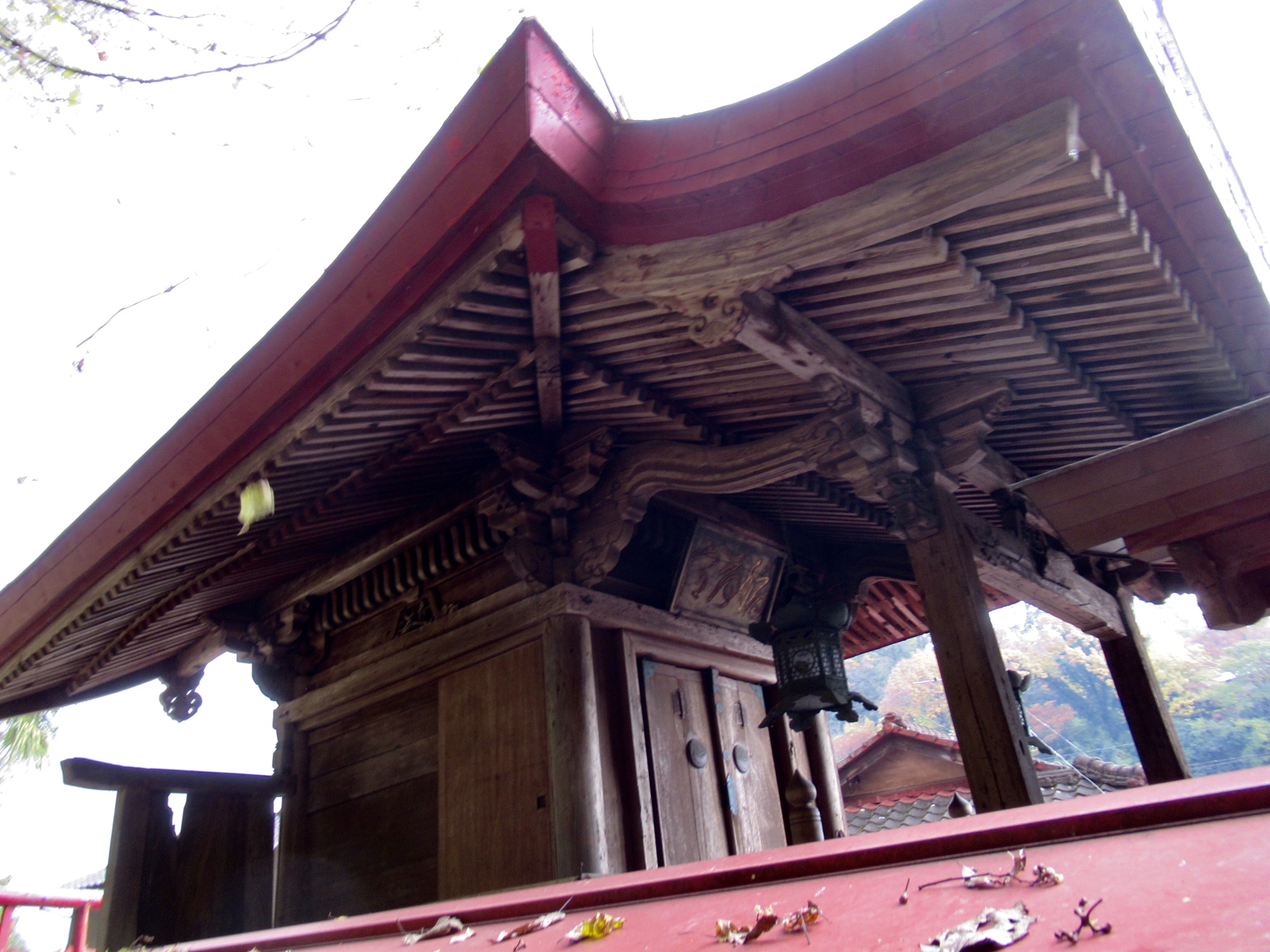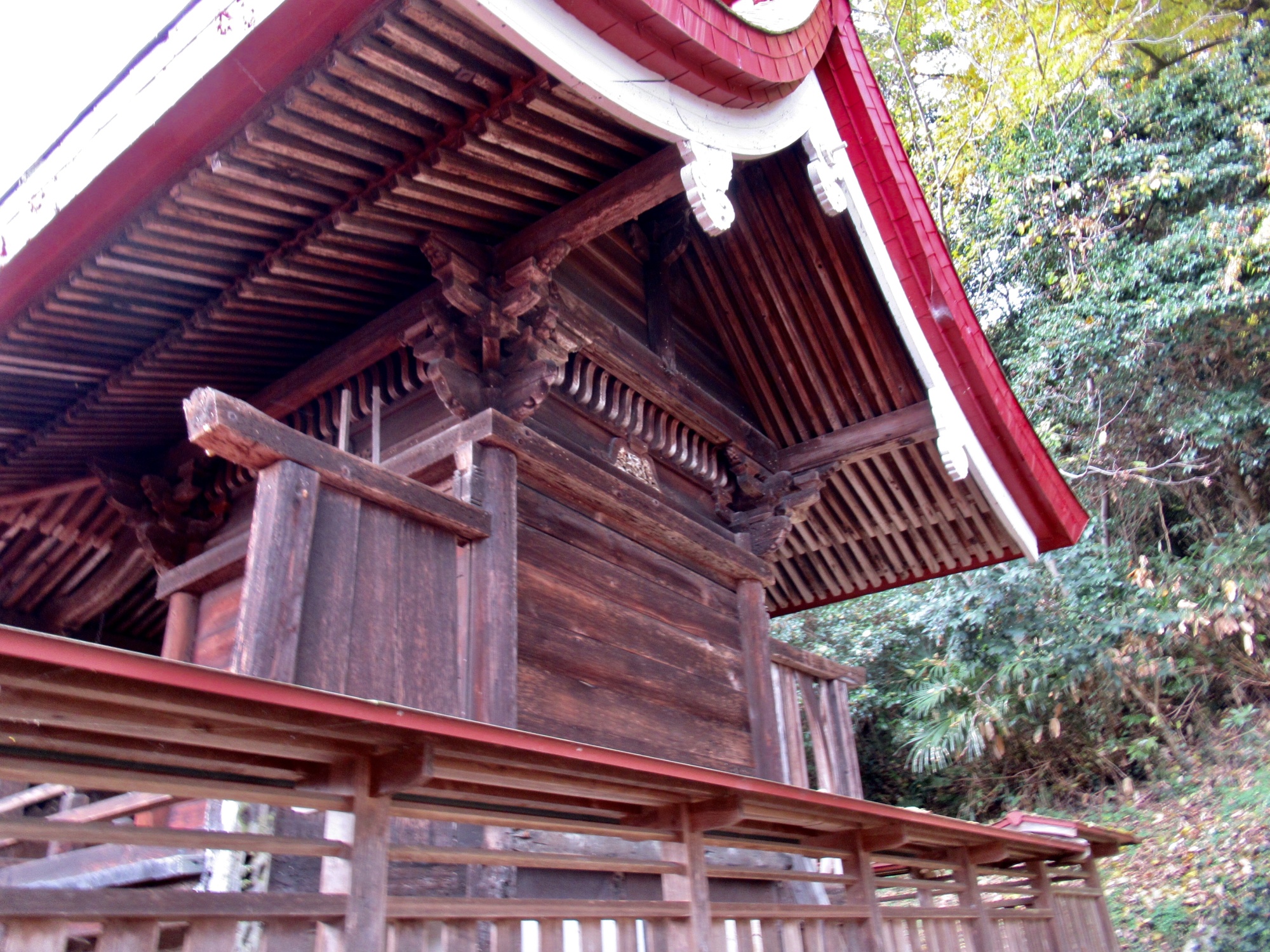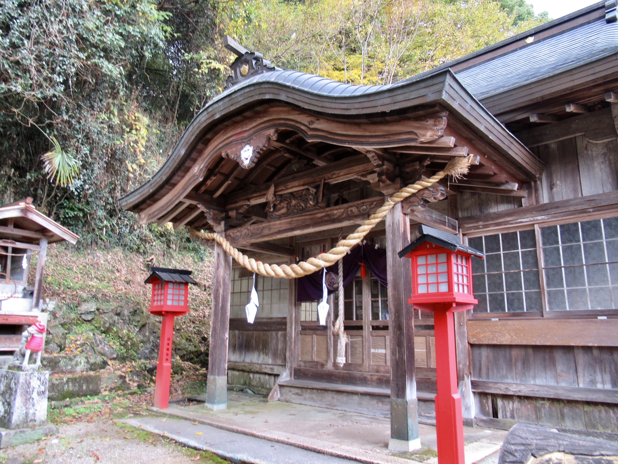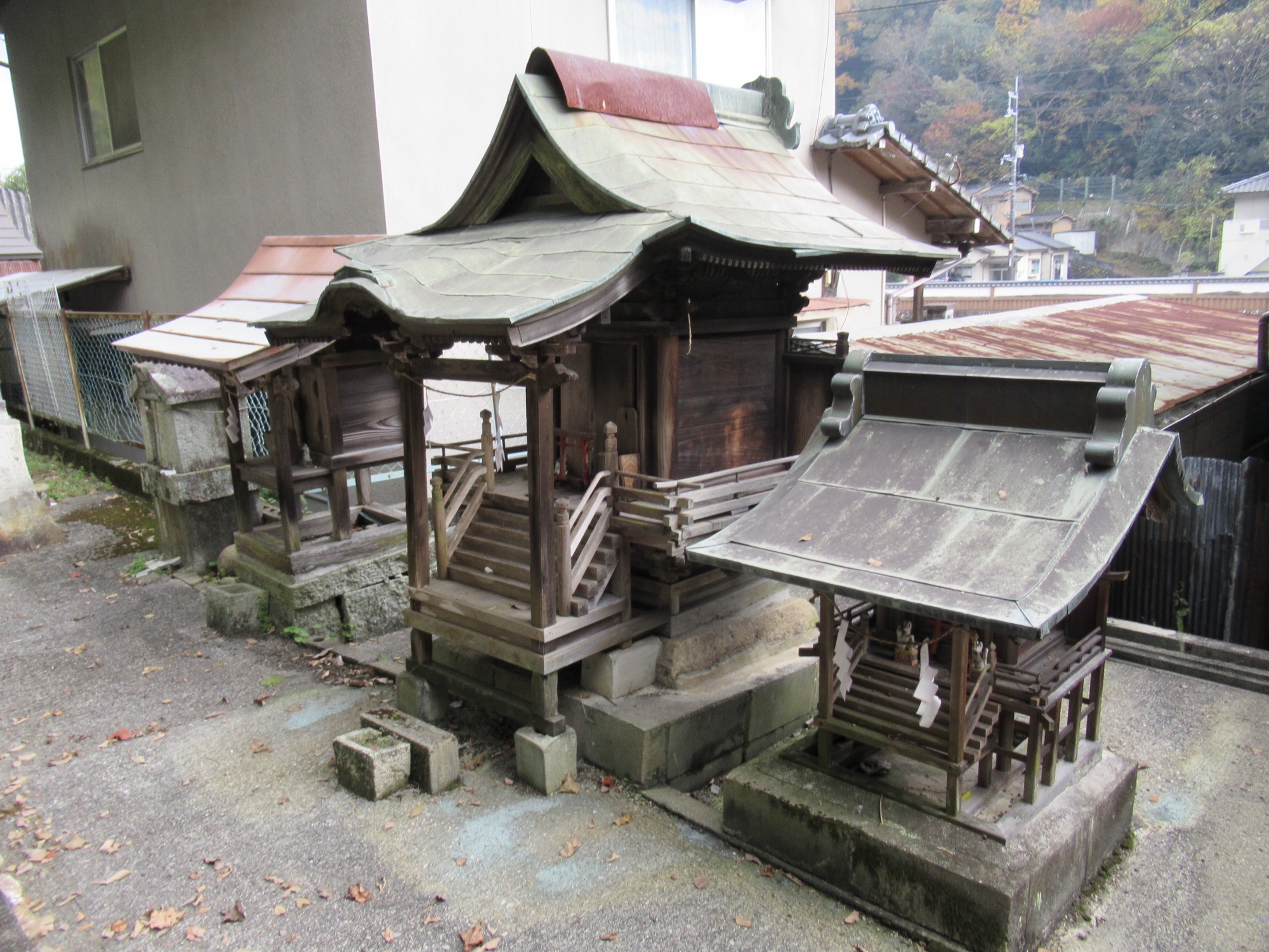【創建は承平4年(934年)とされている。元々は鶴山八幡宮の摂社として鶴山の中腹に立地していたが、森忠政が慶長9年(1604年)の津山城築城時に、城南の覗山に八幡宮と共に移築、次いで慶長13年(1608年)に八子に移された。】