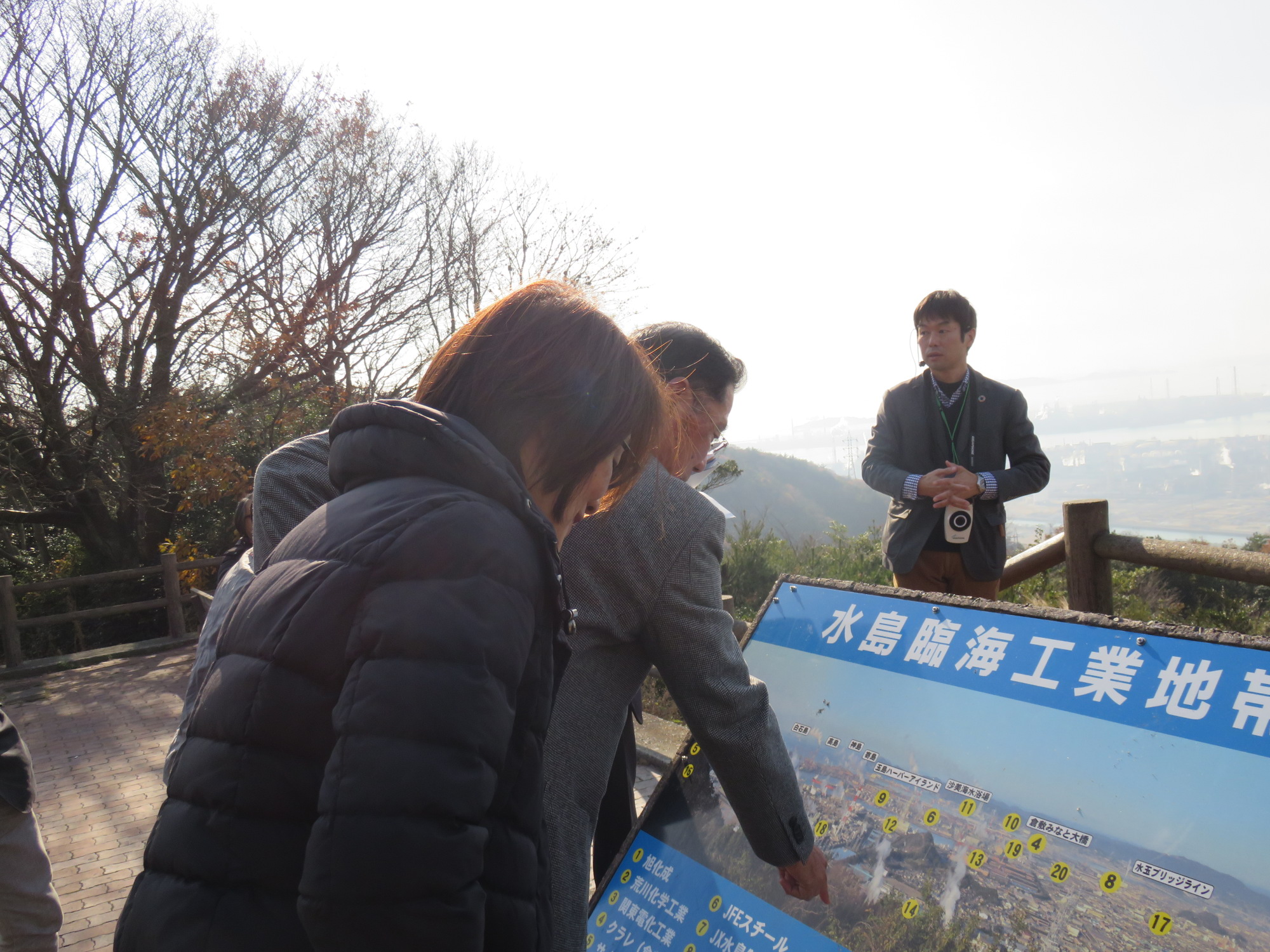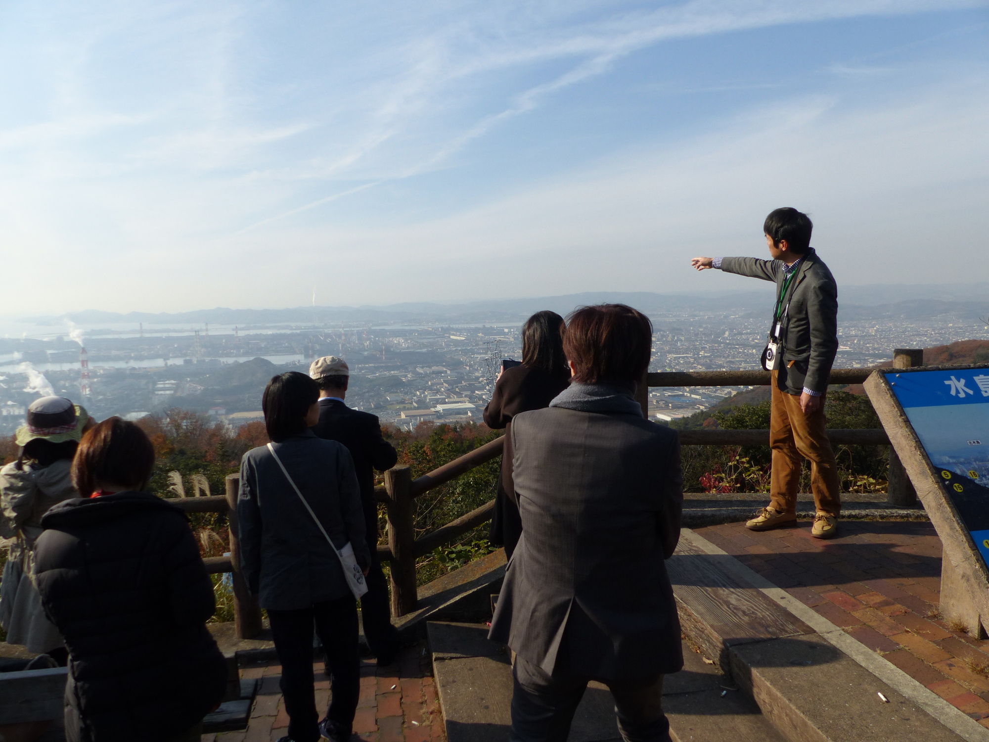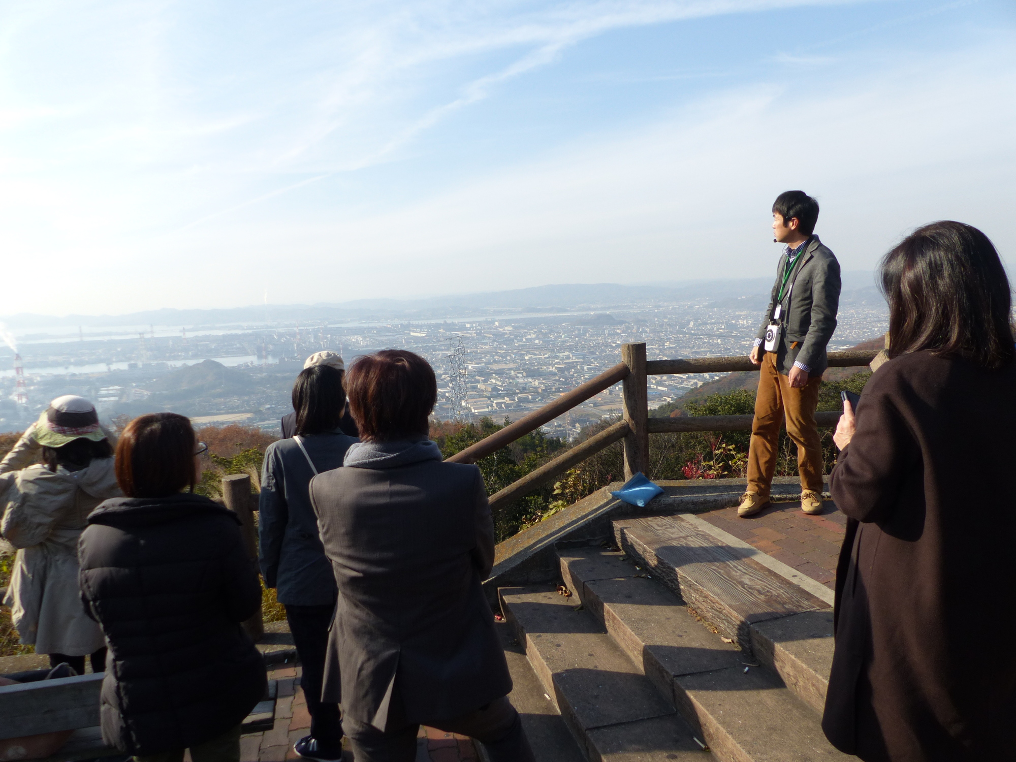 まずは、12/13のフィールドワーク、倉敷駅をバスで出発、鴨が辻山の展望台で水島を眺めます!