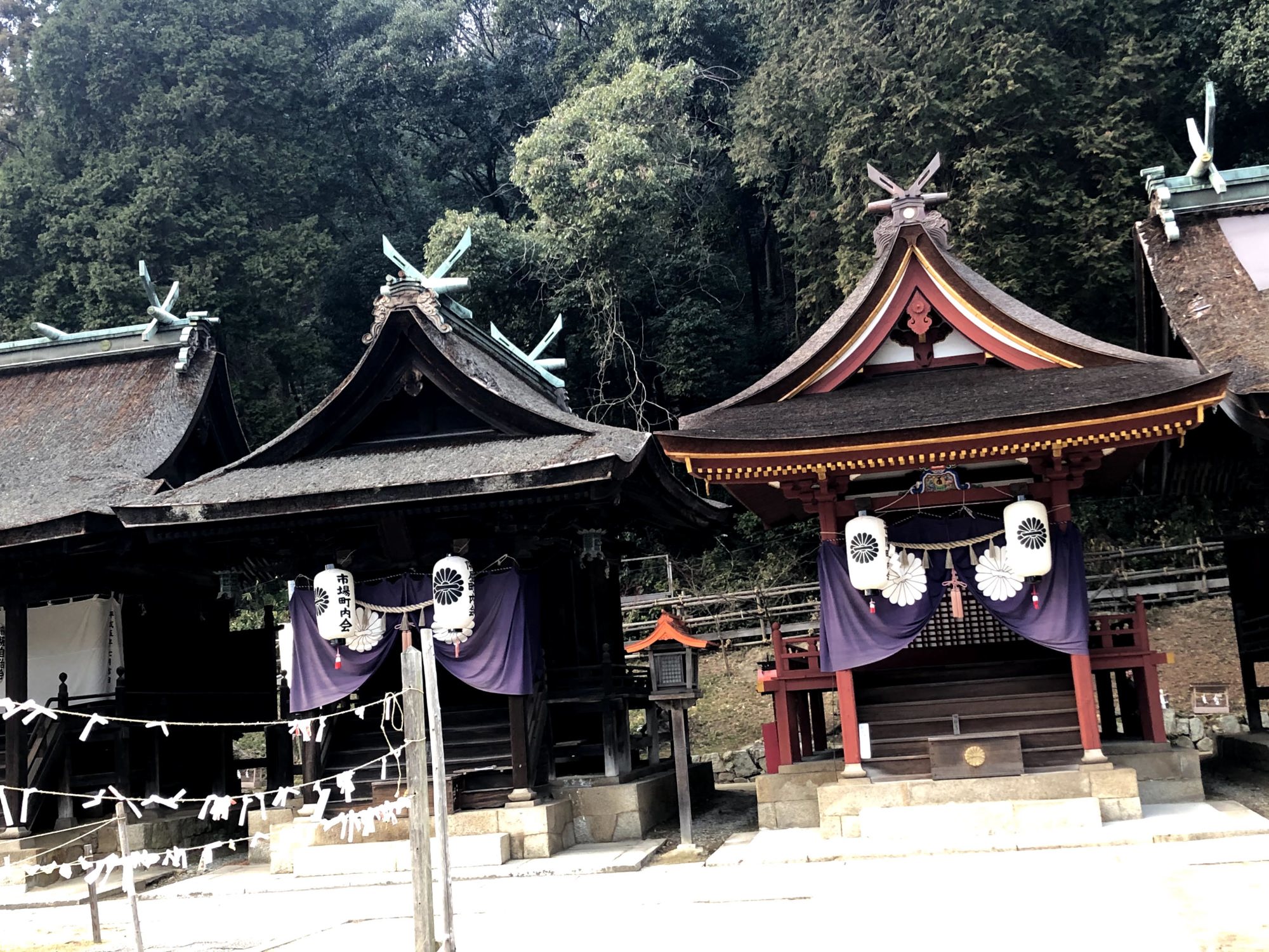 さて・・・熊野神社:【修験道の祖と言われる役小角は文武天皇3年(699年)、朝廷より訴追を受け、熊野本宮に隠れていたが伊豆大島に配流された(続日本紀)。社伝によれば、この際、義学・義玄・義真・寿玄・芳玄ら5人の弟子達を中心に熊野本宮大社の御神体を捧持したとされる。彼らは3年にわたり各地を放浪し、役小角が赦免となった大宝元年(701年)3月、神託を得て現在の地に紀州熊野本宮を遷座したとされる。天平12年(740年)聖武天皇が児島一円を熊野神社の社領として寄進した。天平宝字5年(761年)には紀州熊野と同様の社殿(十二社権現宮)を整え、付近の木見に新宮を、山村に那智宮(現・由加神社本宮、蓮台寺)を建て新熊野三山とした。熊野神社と修験道の寺院が一体となった神仏習合の形態を取る宗教施設として栄えたが、平安時代中期以降は衰微した。承久3年(1221年)承久の乱が勃発し、敗れて隠岐に遠島となった後鳥羽上皇に連座して、上皇の第4皇子頼仁親王が児島に配流となった。頼仁親王は衰退していた熊野神社と寺院を再興し、以後、南北朝の頃まで繁栄した。室町時代になり応仁の乱が勃発すると、この地も戦乱に巻き込まれ応仁3年(1469年)には細川勝元方に加担した覚王院円海を中心とした兵により新熊野は焼き討ちにあい、ほぼ全焼した。明応元年(1492年)より焼き払われた建造物の再建が開始された。現在、国の重要文化財に指定されている第二殿はこの時造営されたものである。現在見られる第二殿を除く社殿は正保4年(1647年)に池田光政によって造営された。明治時代になると神仏分離令により、十二社権現は熊野神社となり他の寺院(五流尊瀧院)は天台宗寺院となった。平成15年(2003年)9月、明和5年(1768年)建造の拝殿(修験道では「長床」と呼ぶ)を失火により全焼[2]。平成19年(2007年)10月に再建した。】