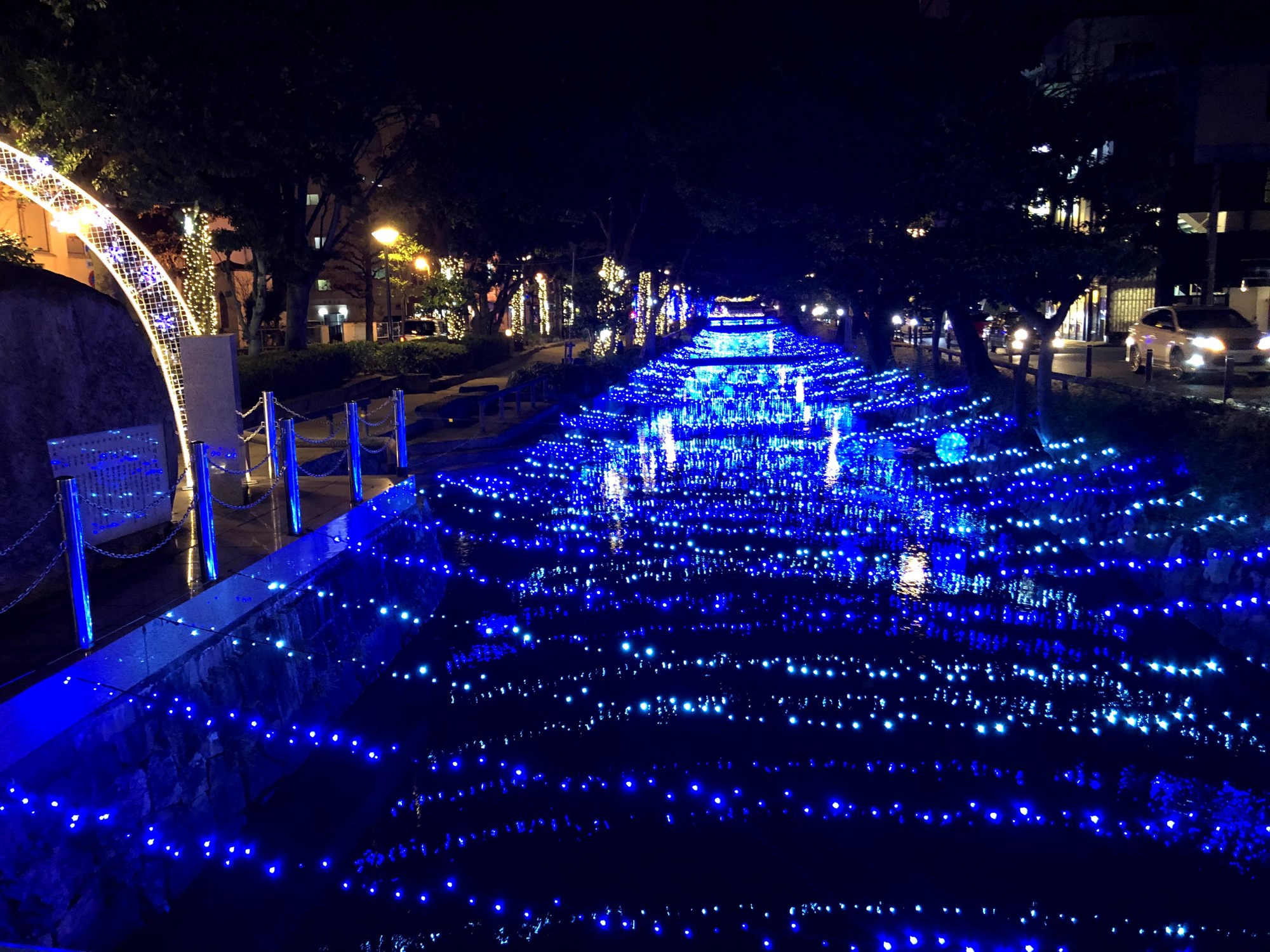 滅多に、岡山の夜に出向かないので・・西川緑道公園のイルミネーションも新鮮!