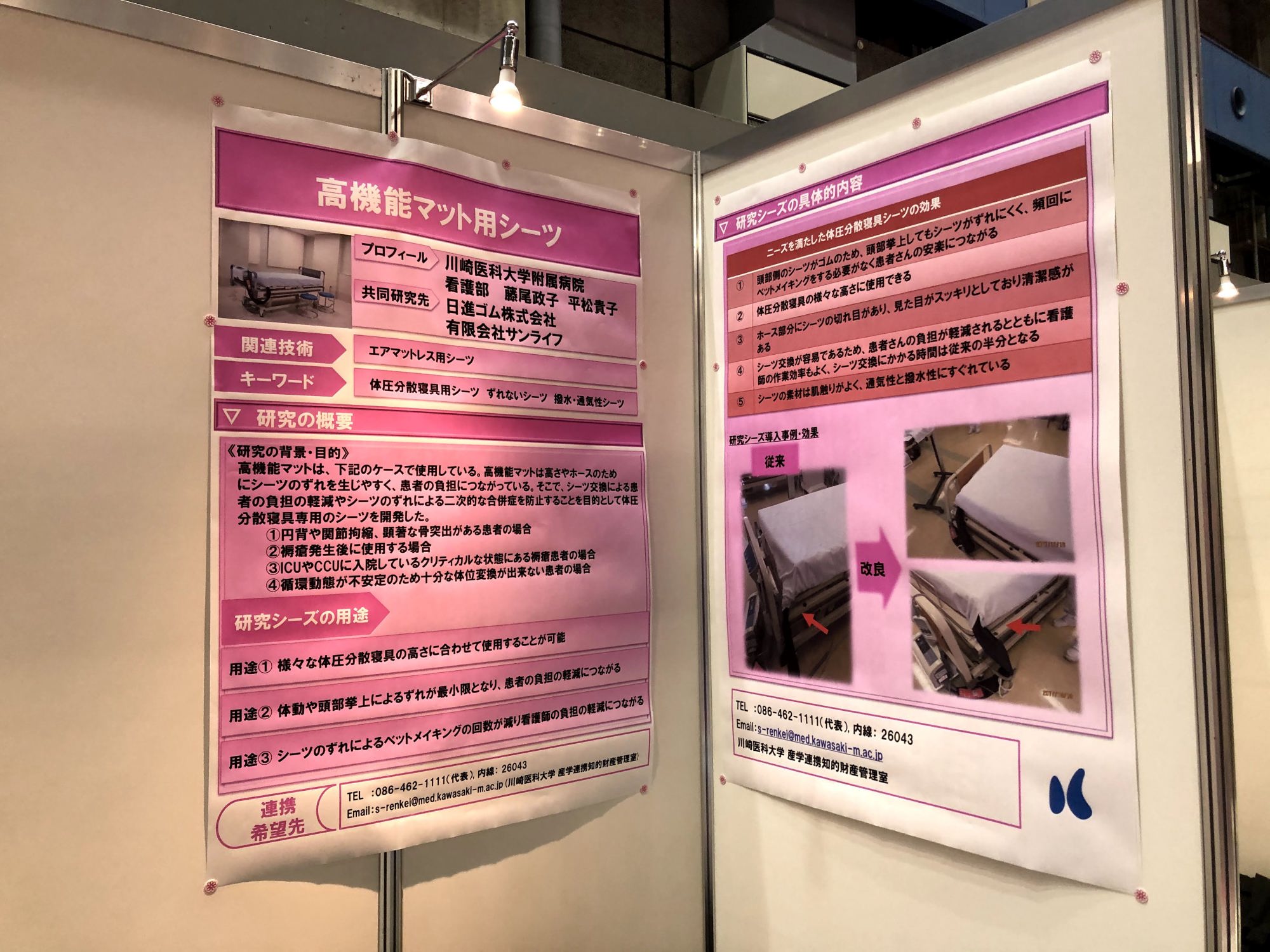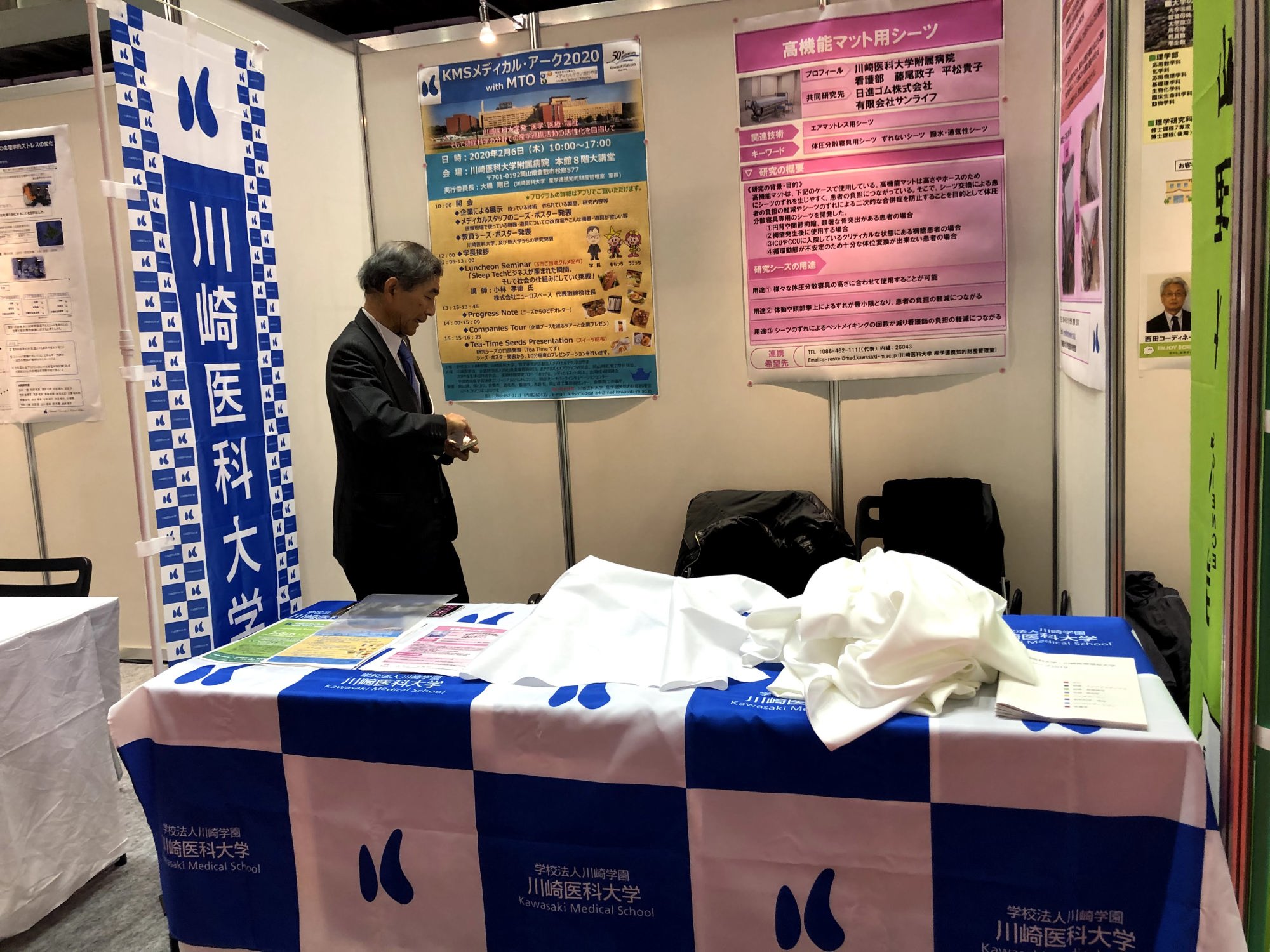 川崎医科大学も、岡山県産学官連携推進会議のメンバーなので、ブースがあって、それなら出展・・・いつもの・・・大学メンバーさんたちです。