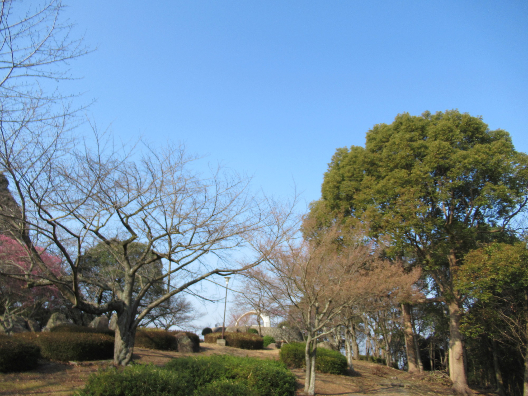 【倉敷市の東南部に位置する公園で、高さ100メートルの台地である向山にある。公園の総面積は約4万8400平方メートル。園内からは倉敷の市街地、岡山市、児島湖を一望できる。】なんですよ。