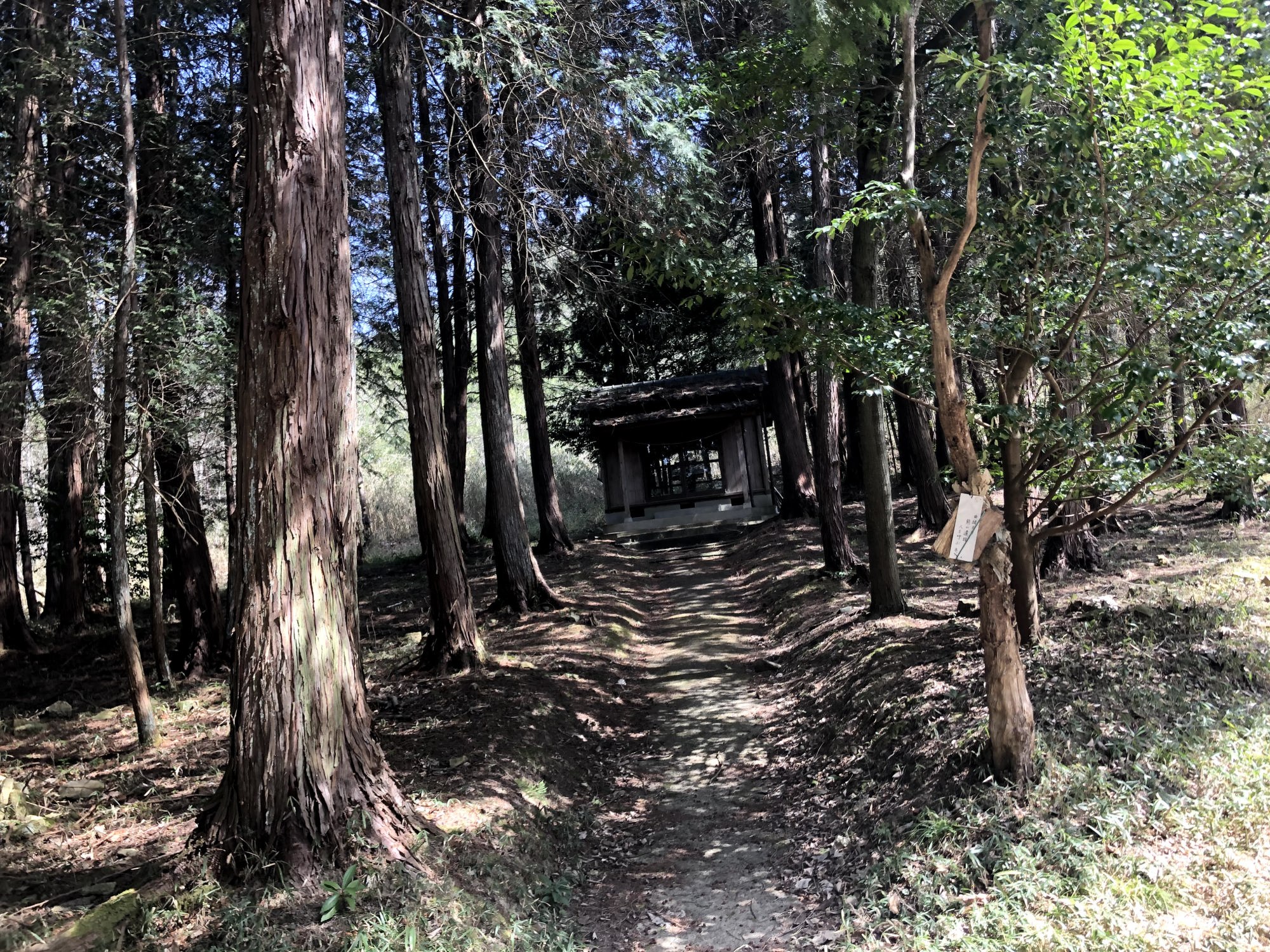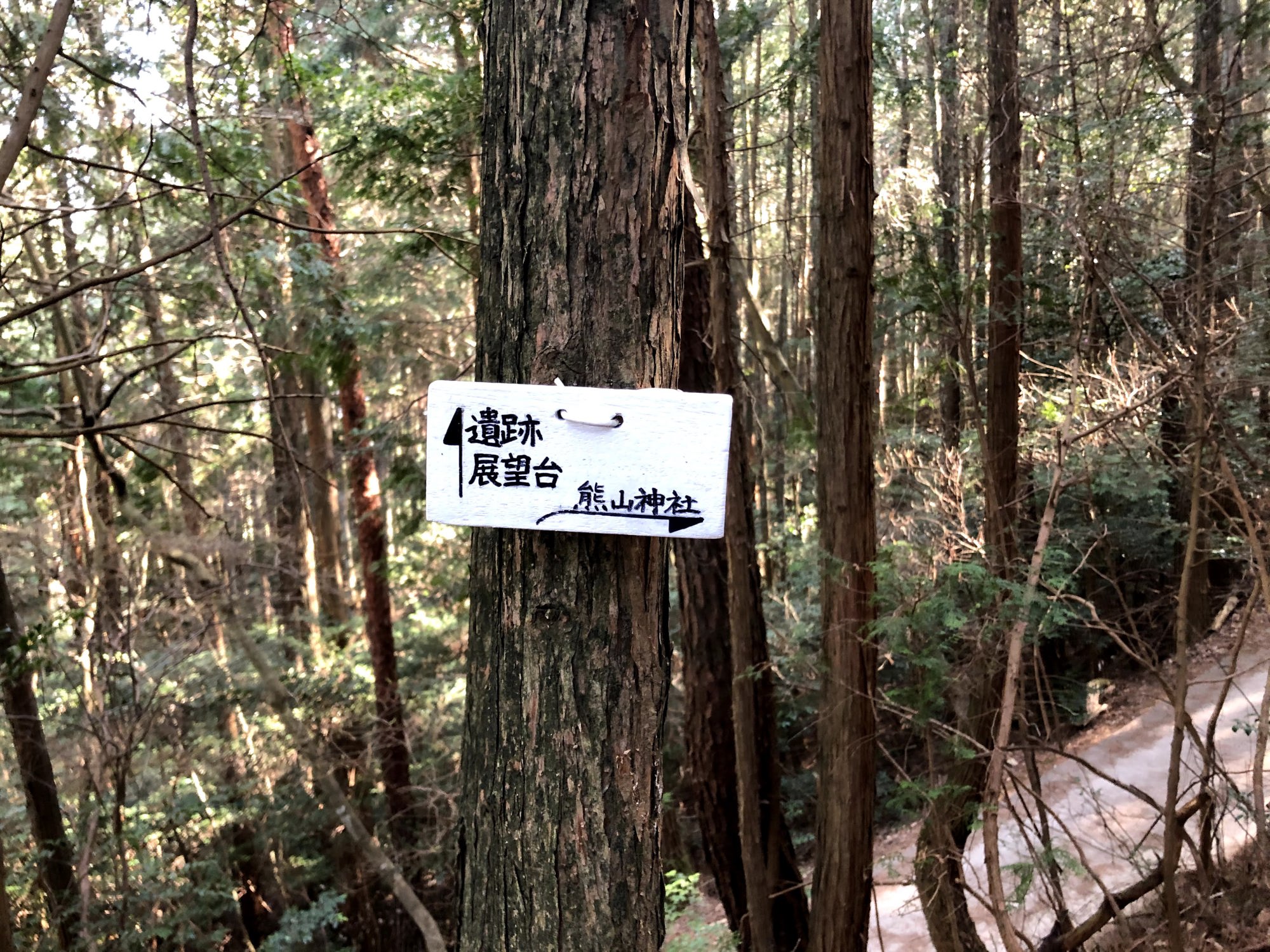 さて・・・もう少し進むと・・・いよいよ熊山遺跡ですが、天然記念物の二本杉も。