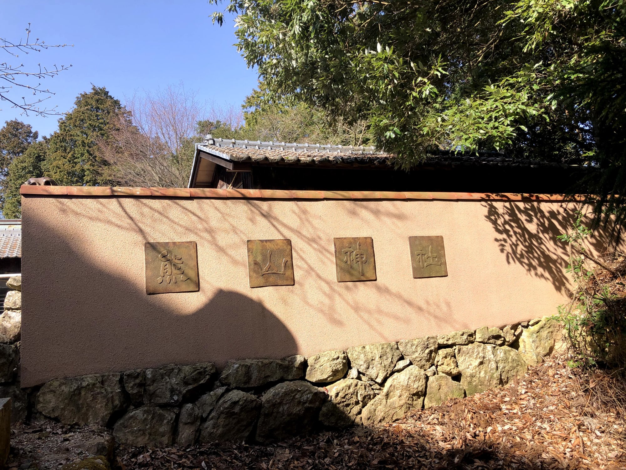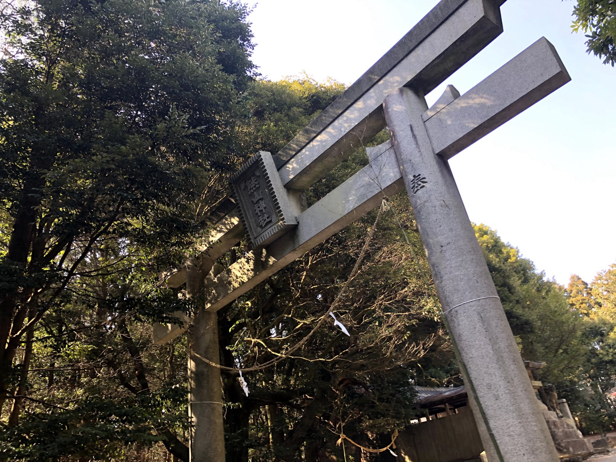 【創建年代は不詳である。本神社は熊山の山嶺に鎮座し、神位従四位下、式内外で一二八社の一であった。唐僧鑑真和尚が天平勝宝六年(754)に聖武天皇の招きにより入朝し、帝釈山霊山寺を開き地蔵菩薩を社内に安置し、国家泰平・牛馬安全の守護神とした。】