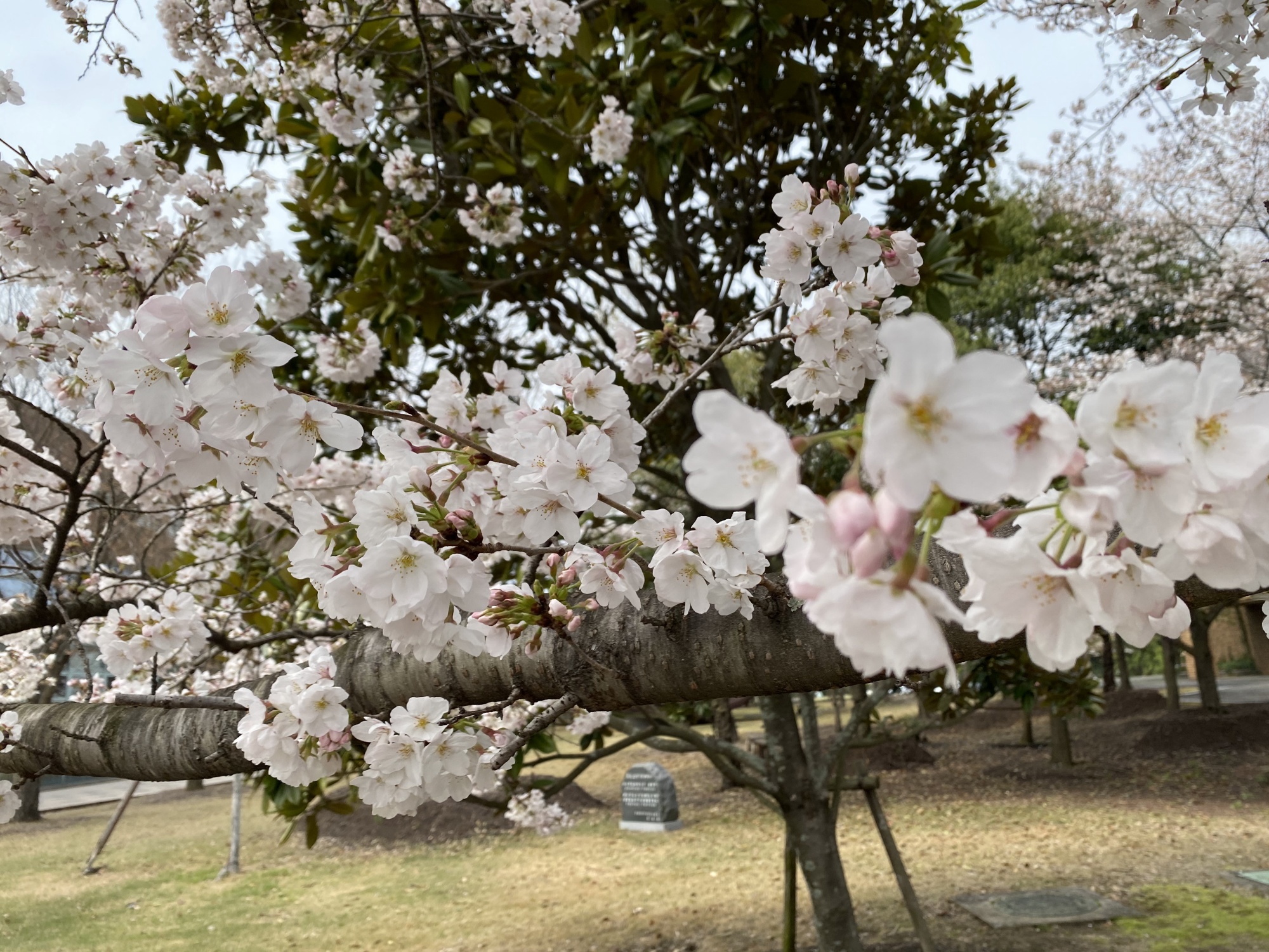 また、国道180号線から、キャンパスまでの桜並木が満開でした。