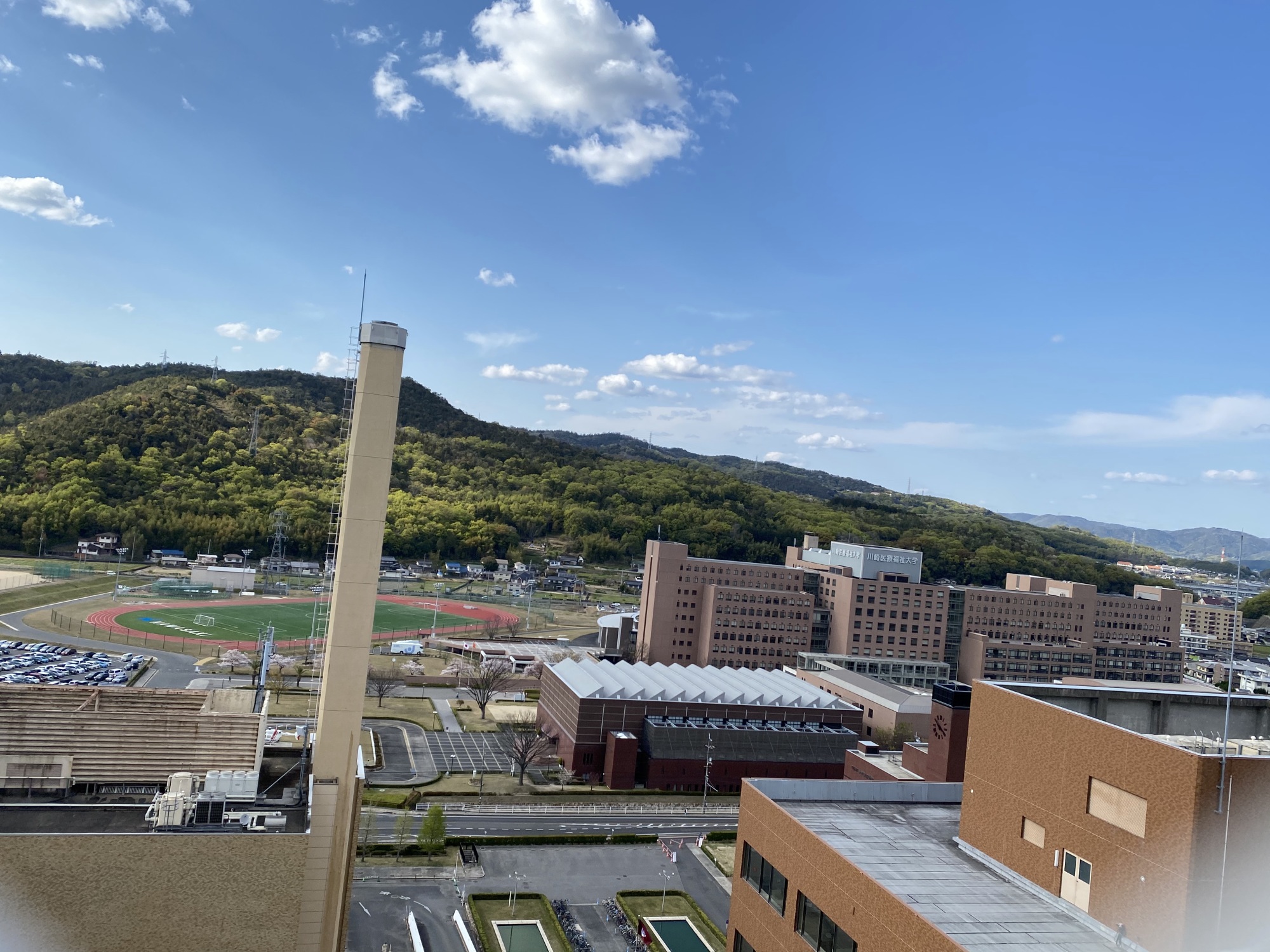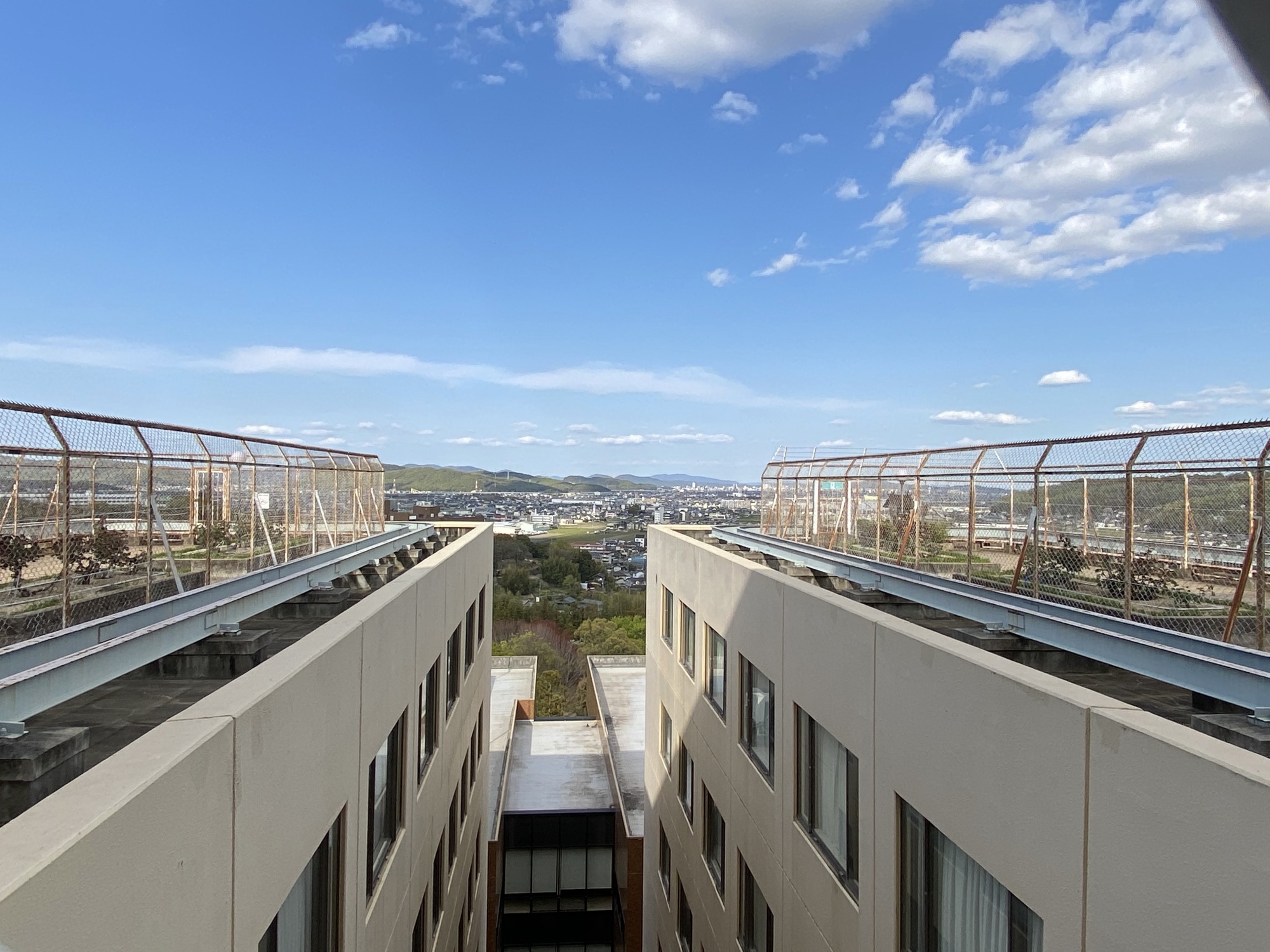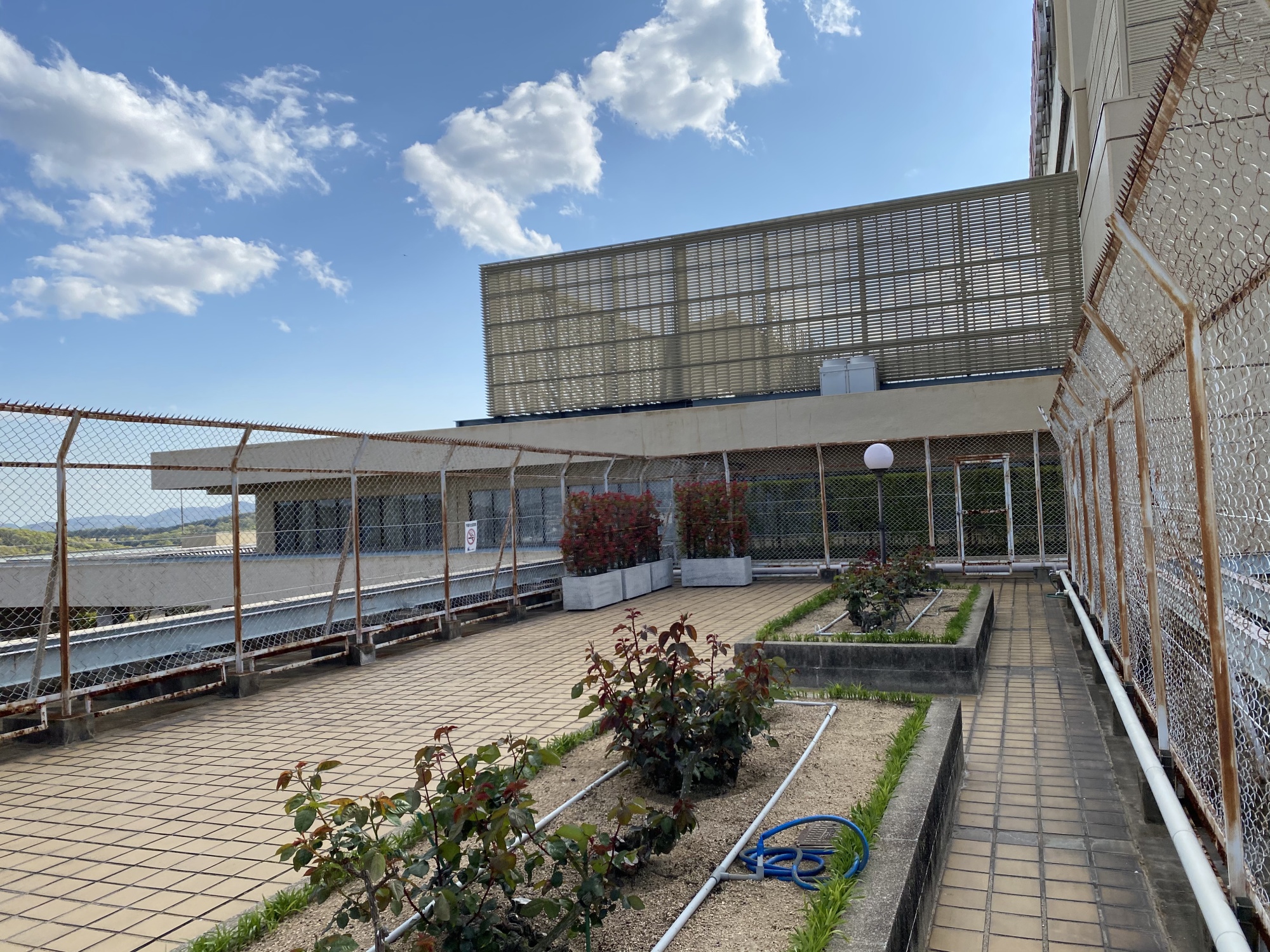 午後に所用で、16Fの学園事務局へ~天気もよく屋上庭園
