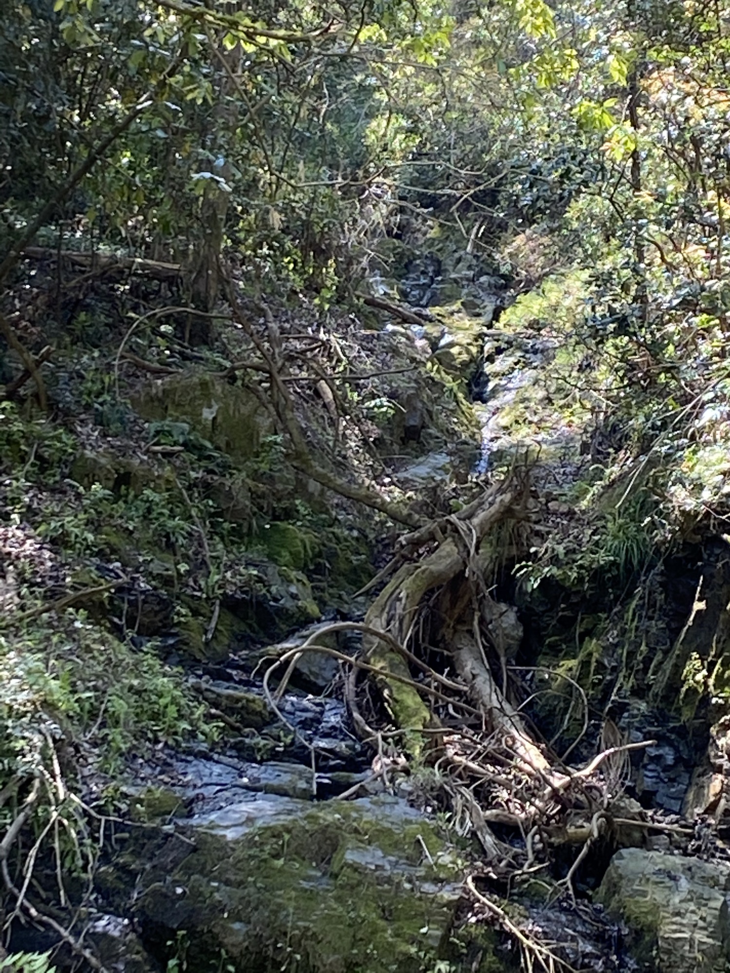 ミラーに「龍頭ヶ滝」って書いてあるのですが・・・気付きました。ここは、多分・・・滝の上流ではないのかな?? だって、地図で見ても、この上流はなだらかな谷間で・・・で、この下へ!