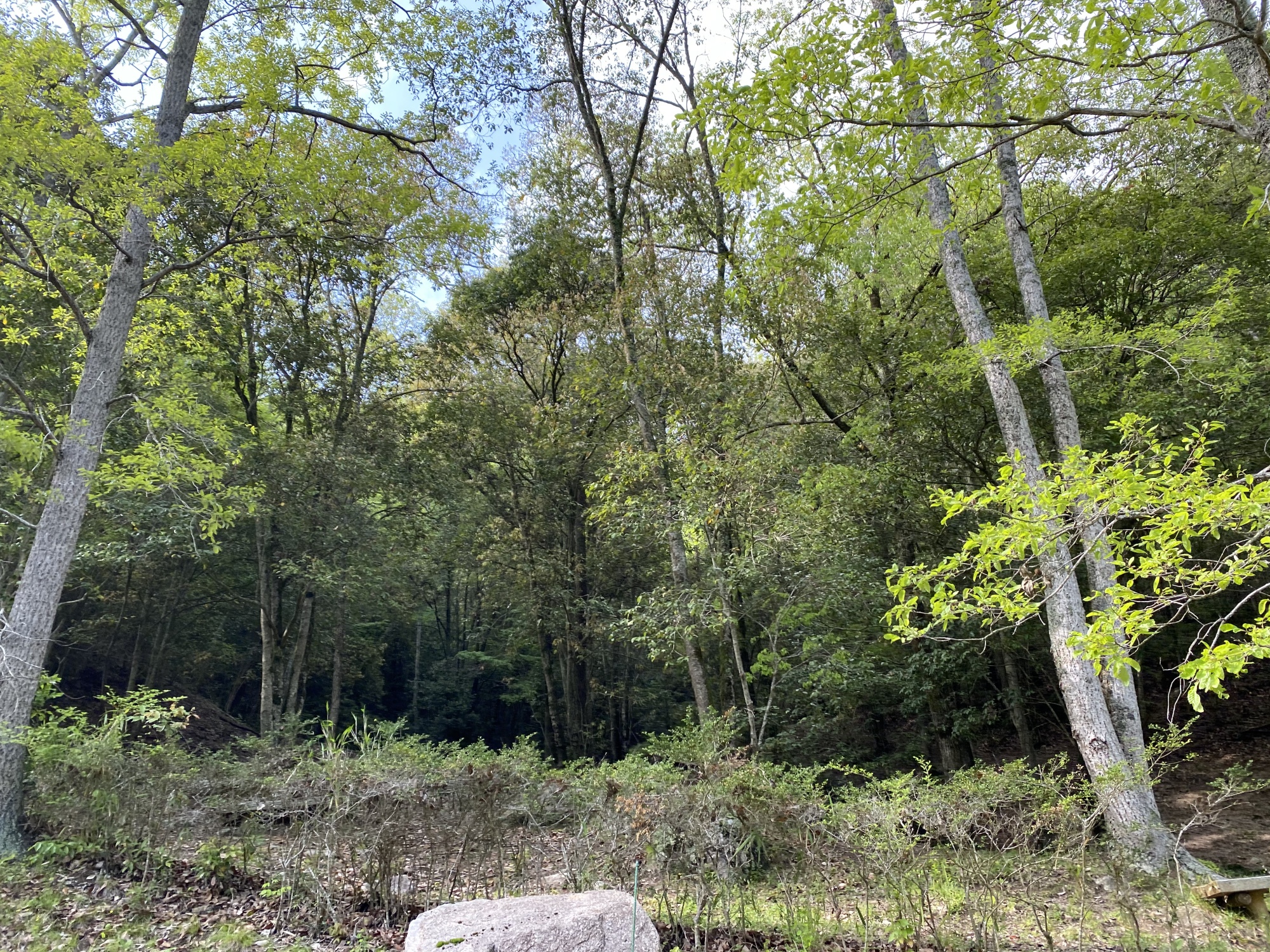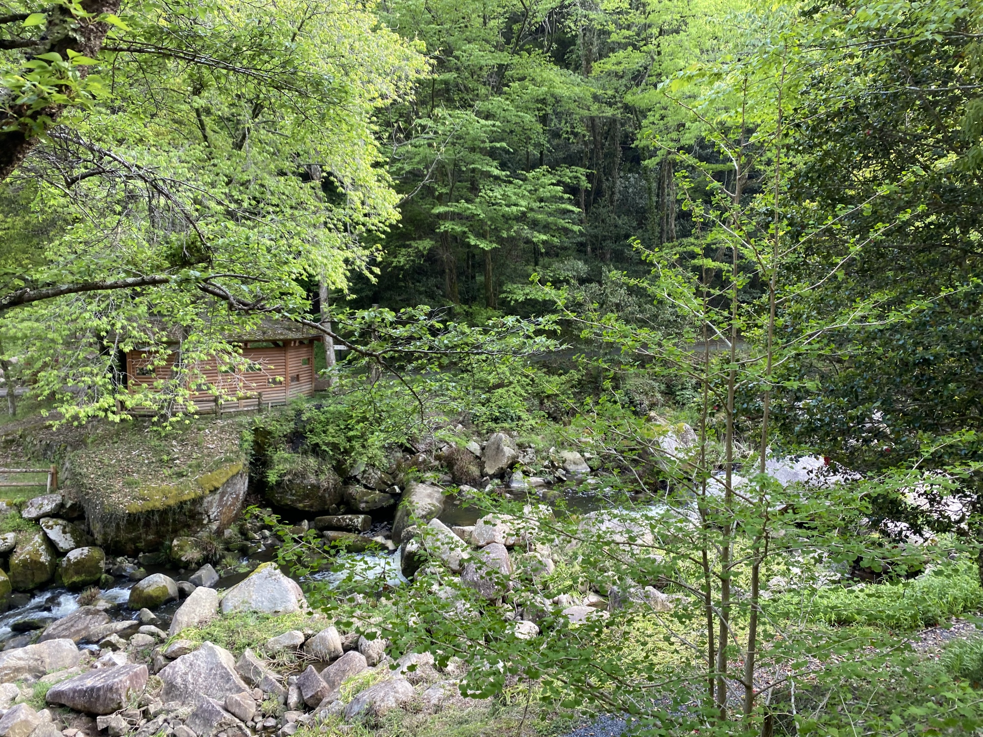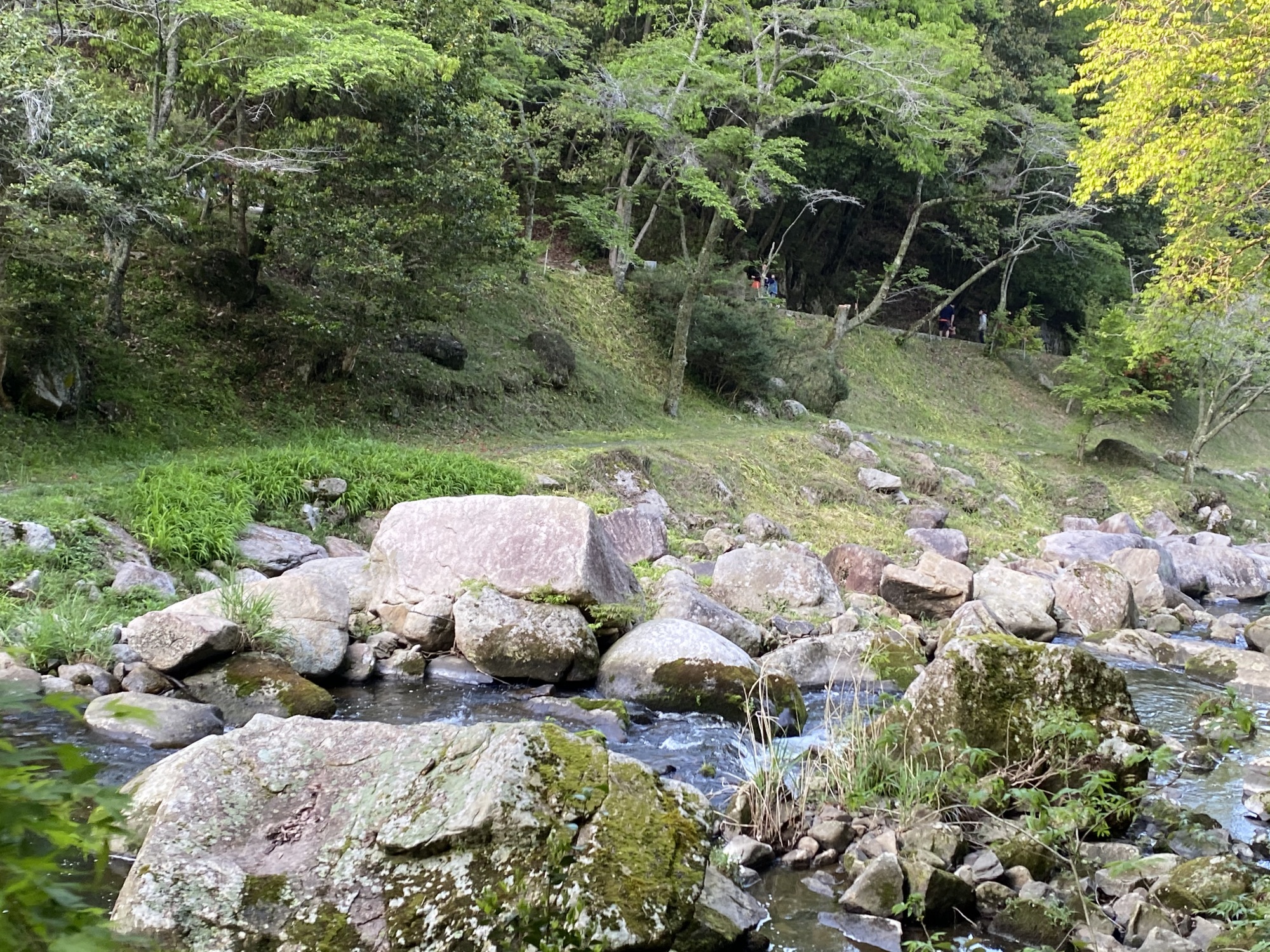 こちらの岸の方が・・・渓流の際まで行けますね。