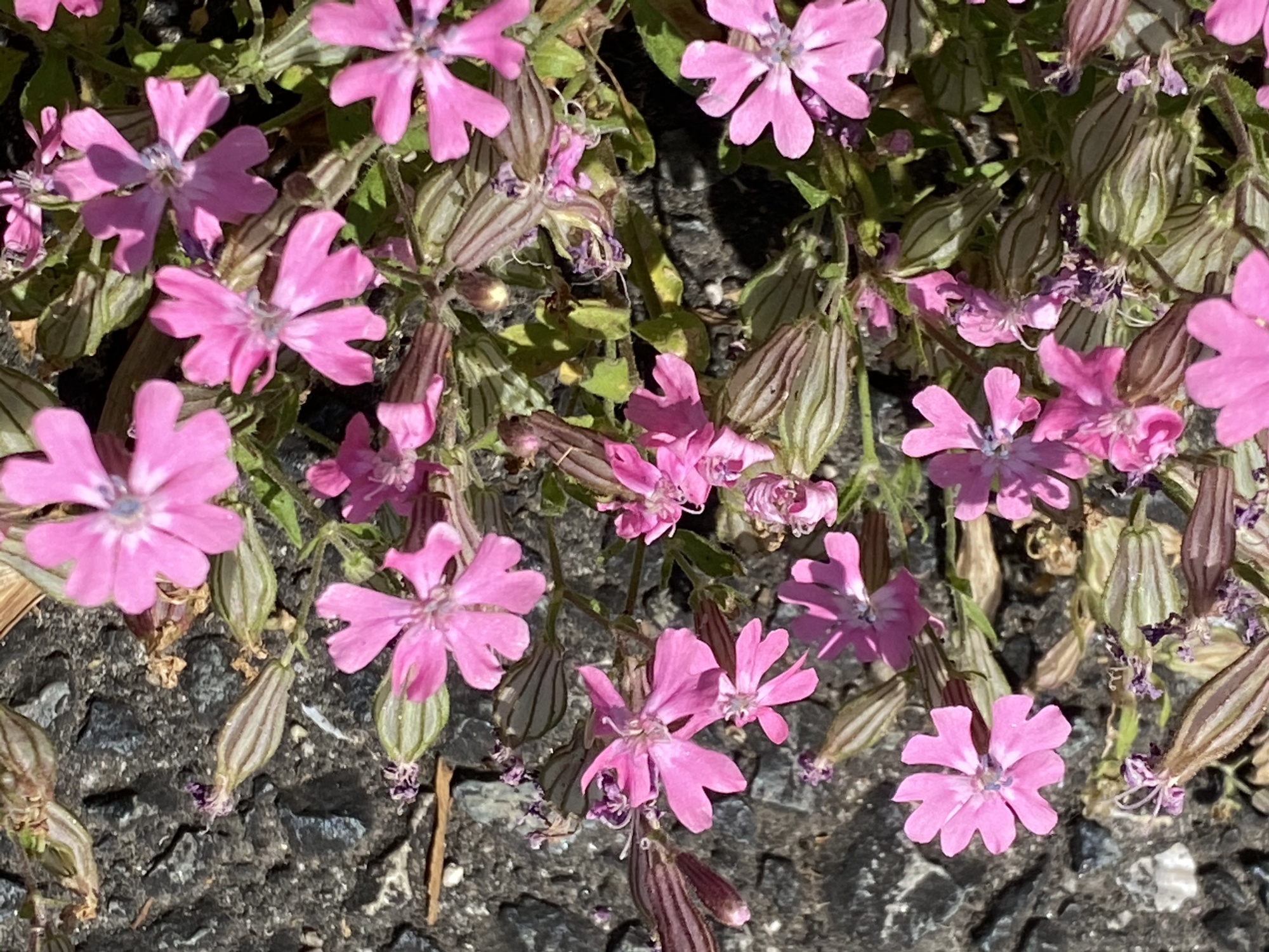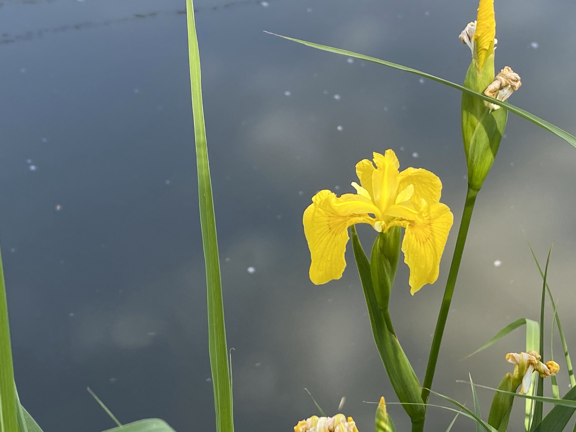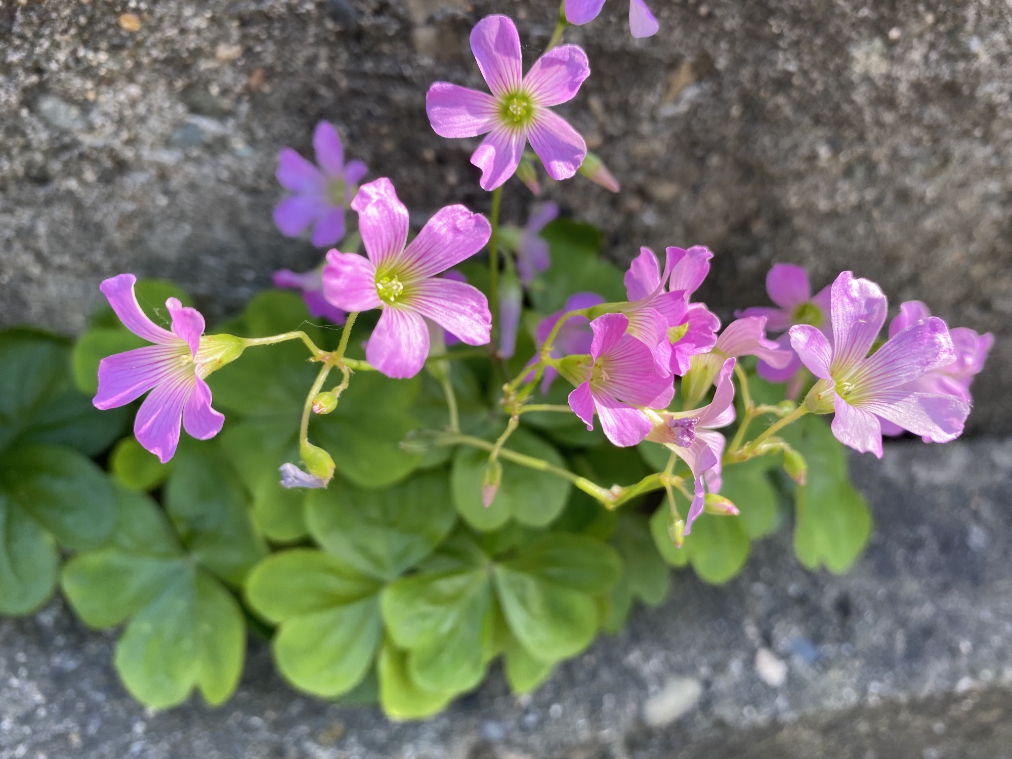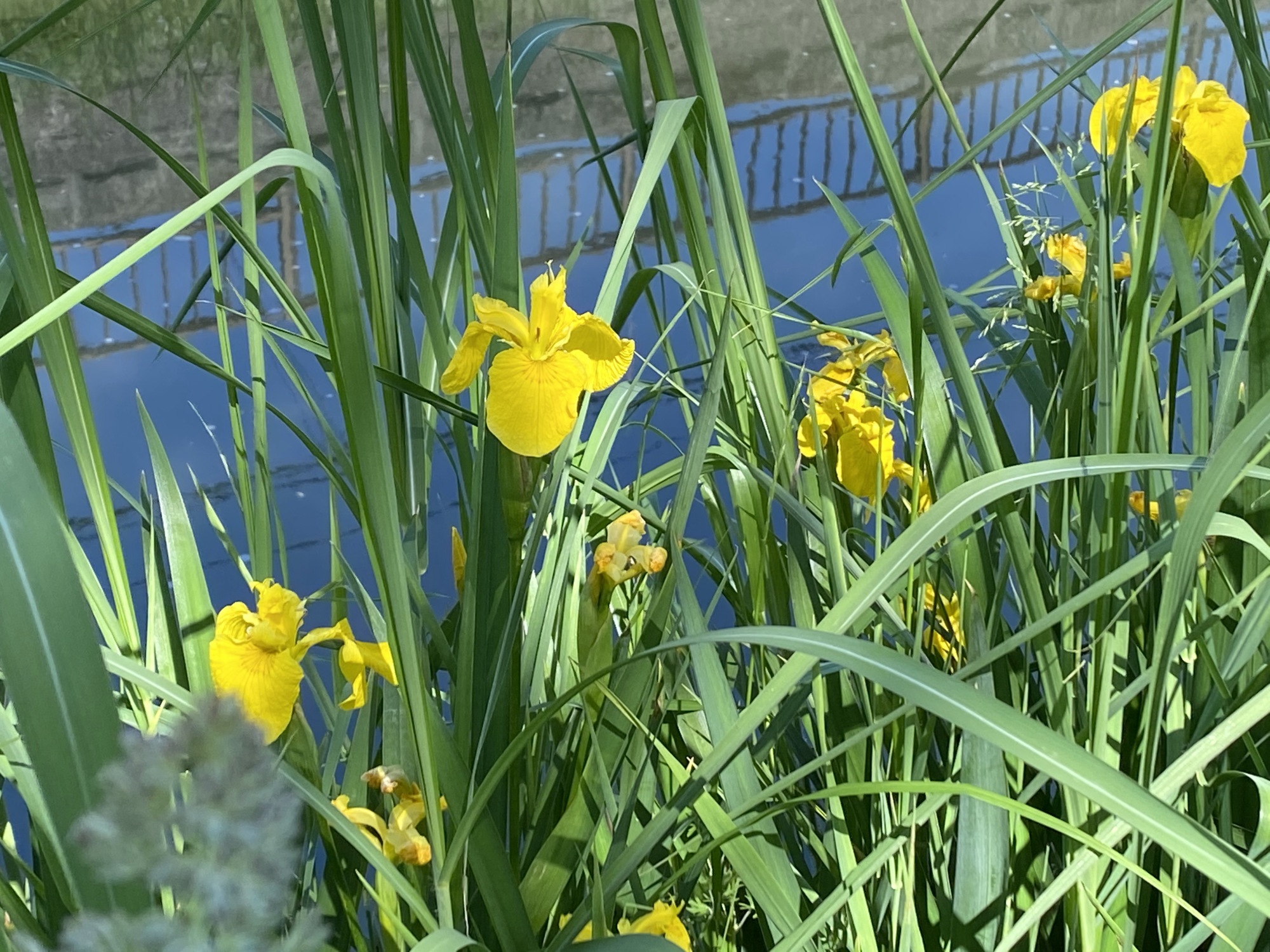 倉敷川沿いの柳の下に・・少し花が植わっていて……。