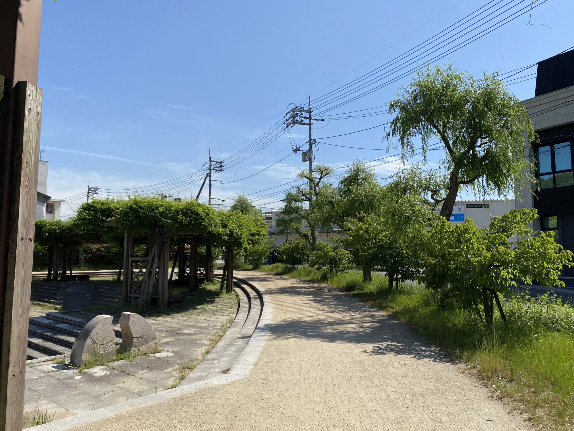 藤棚みたいな日陰で、女子高校生二人が、マスクしながら、何か話していました。