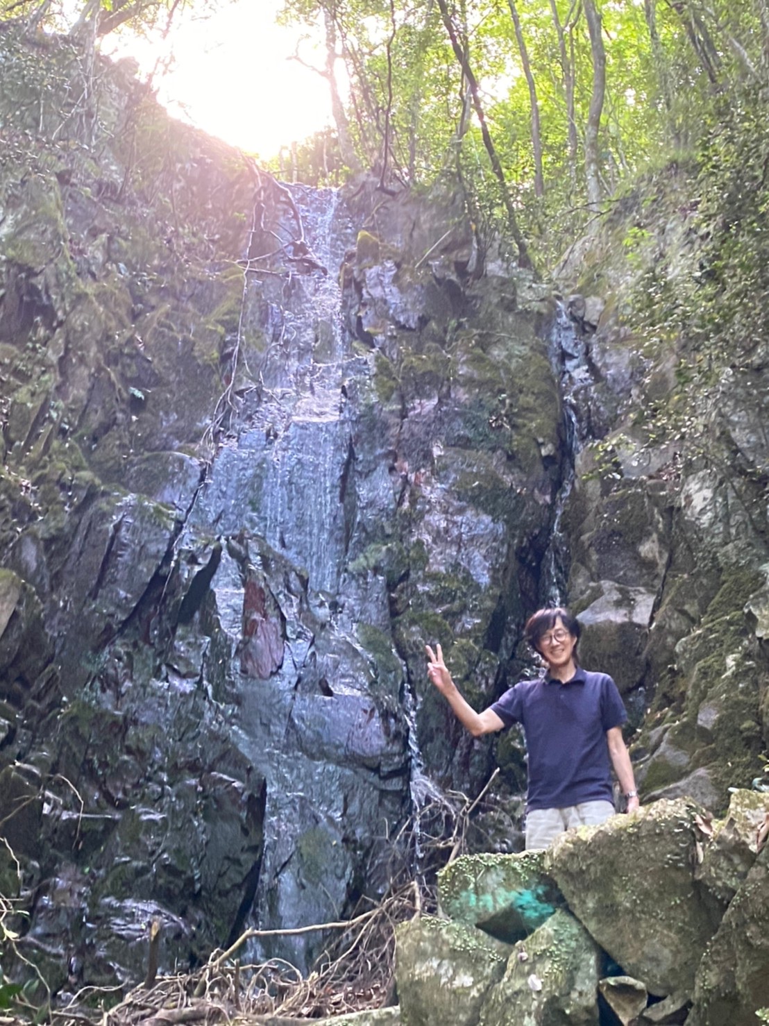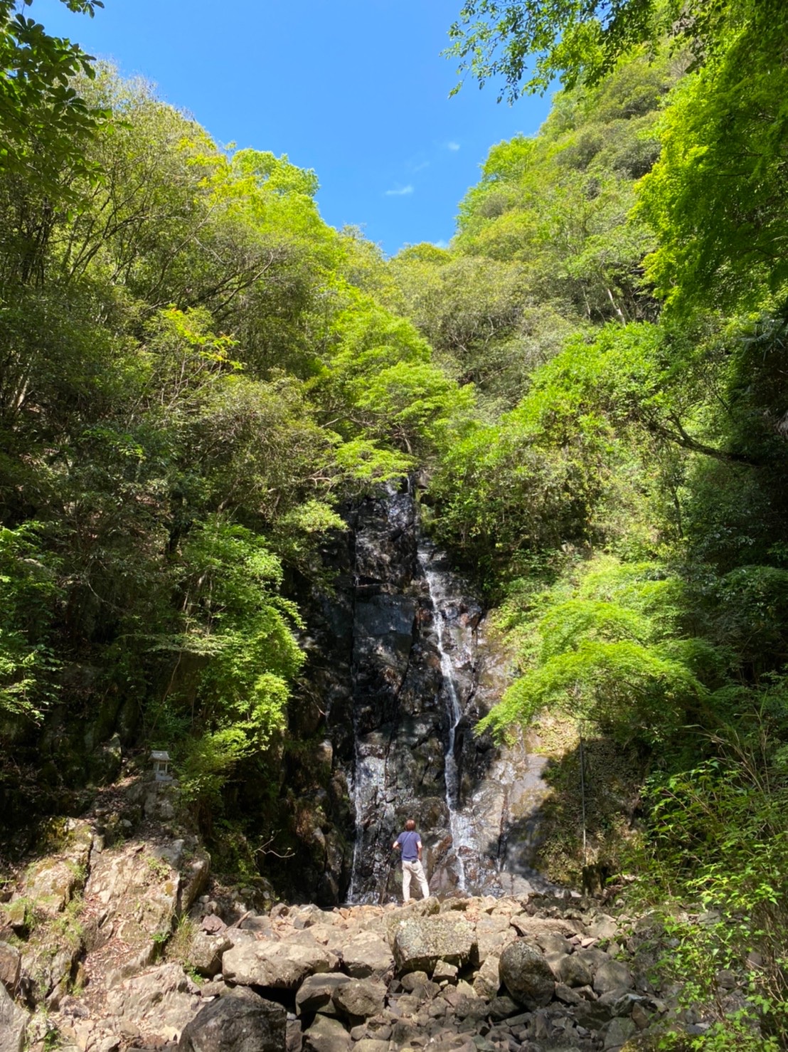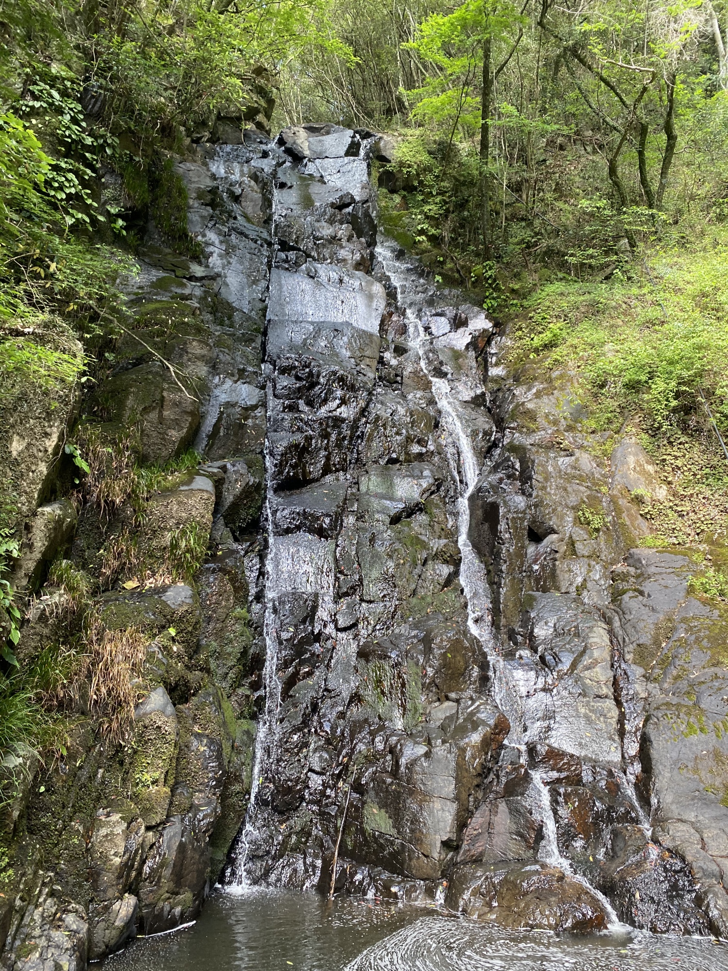 【真木山(まきさん)から流れ出る小さな滝があります。両岸は50メートルほどある絶壁で、その間から滝水が二条になって落ちています。滝の長さ17メートル、幅3メートル、紅葉など四季を通して自然風景を楽しめます。】