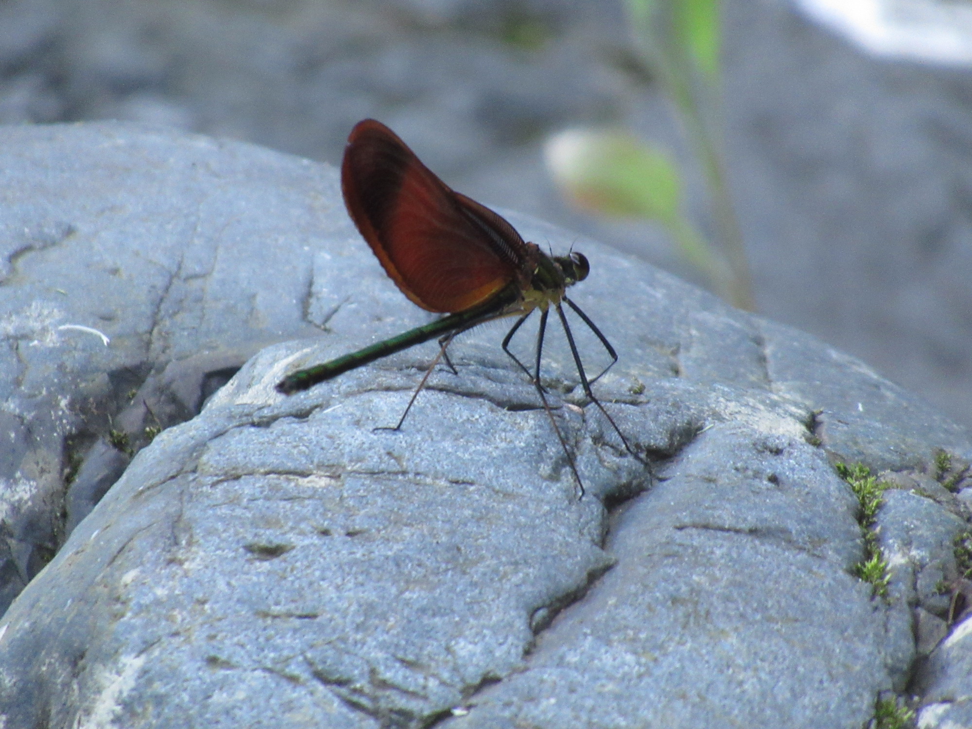 降りてみたら・・・ミヤマカワトンボの・・白斑のあるのはメスの様です。