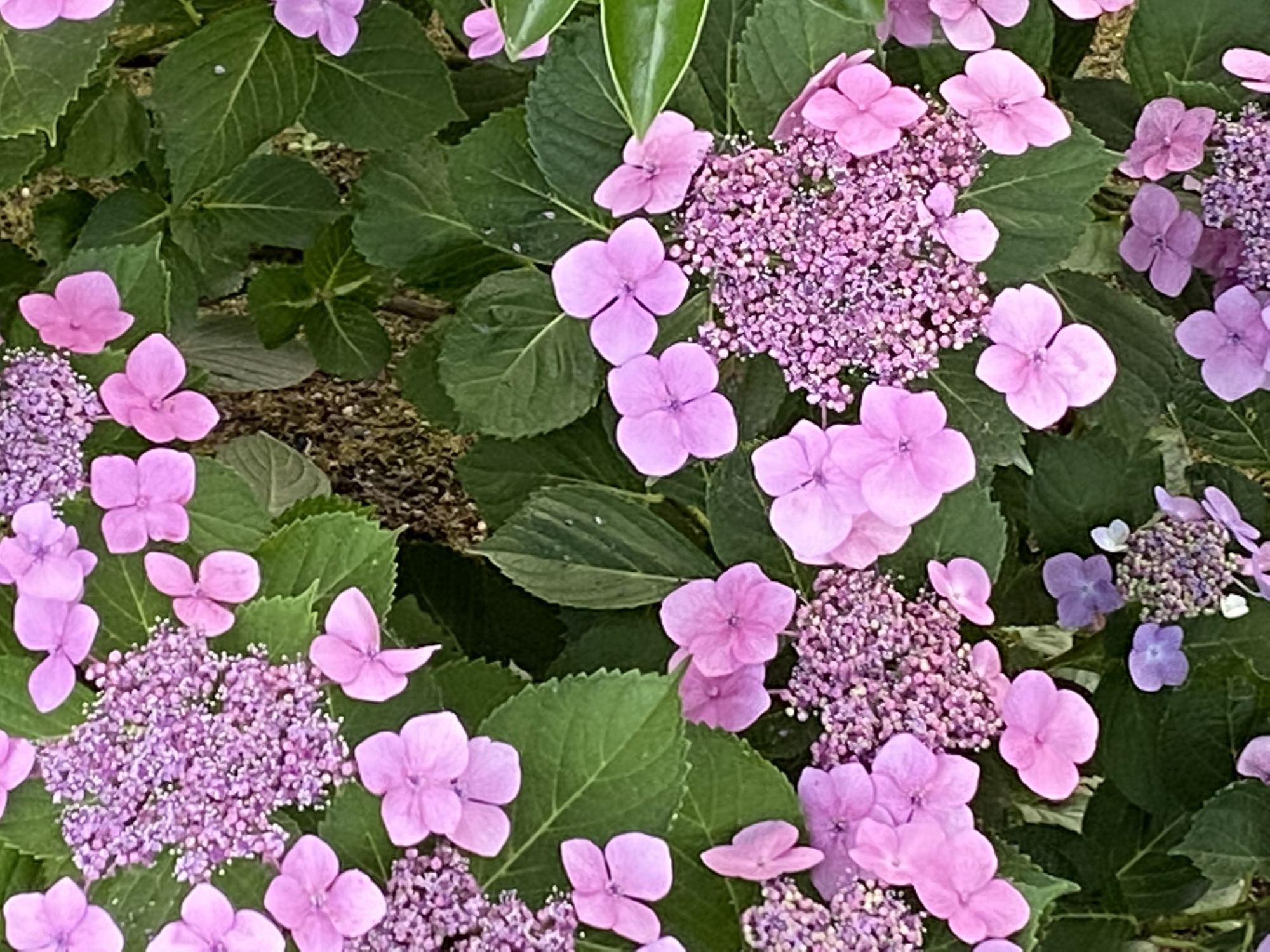 あら、道路沿いの紫陽花がきれい