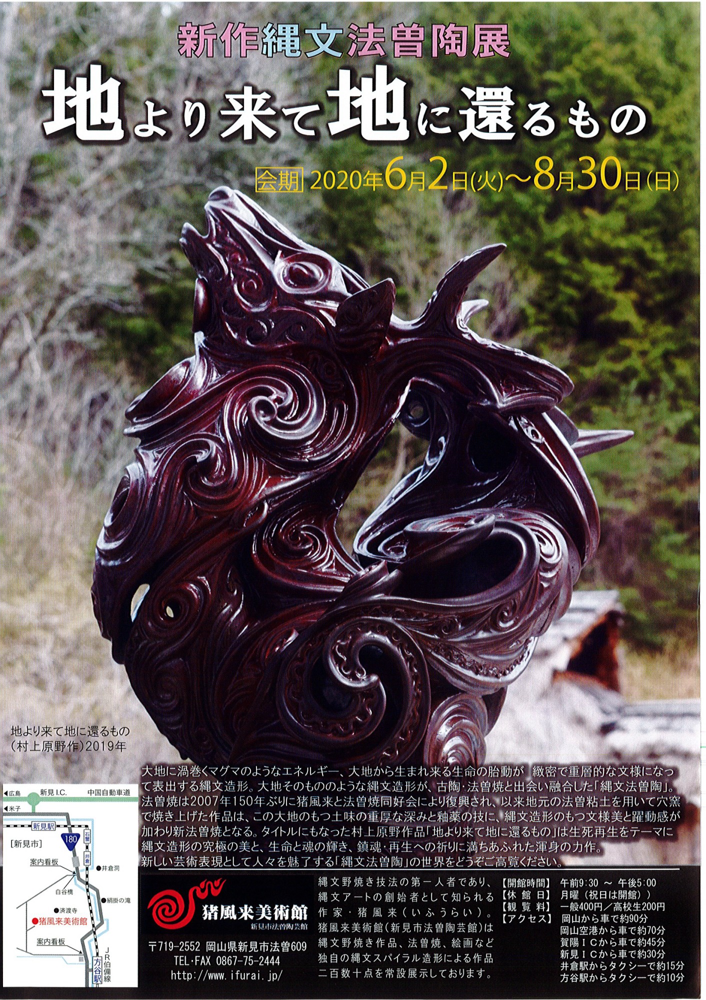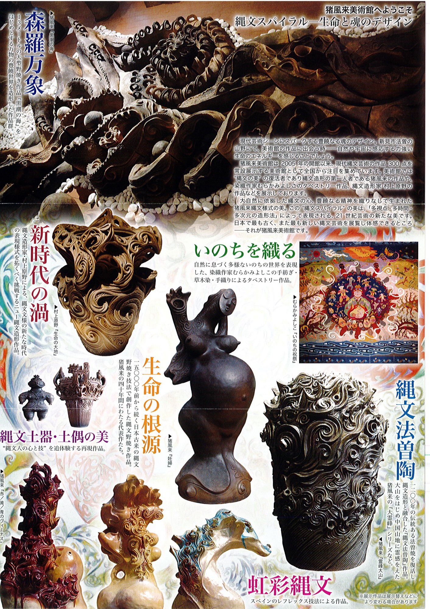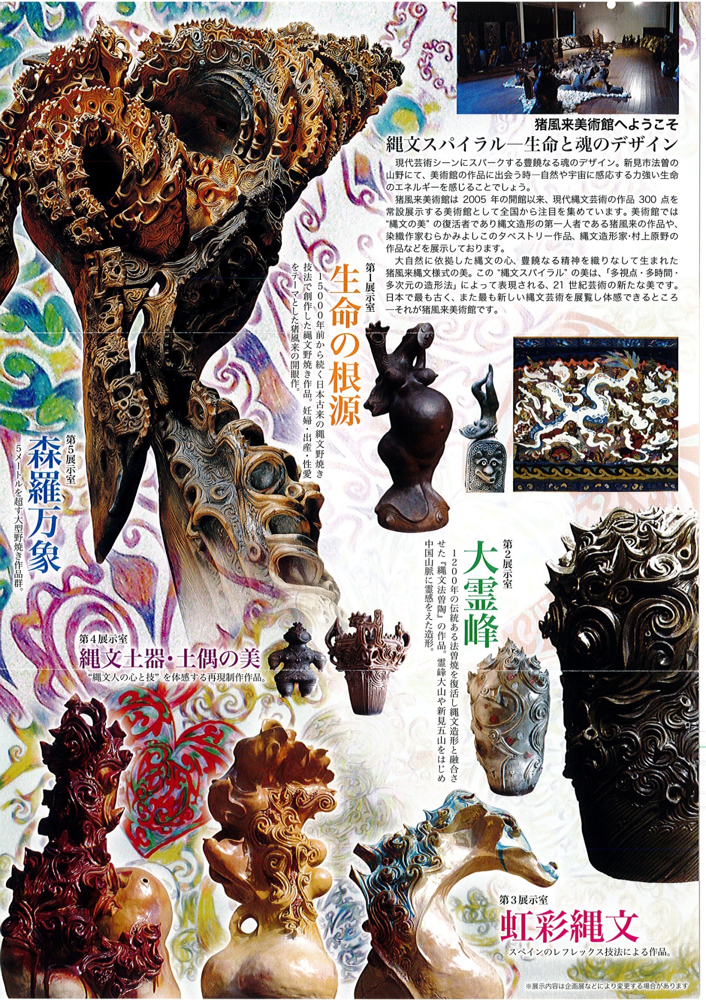 猪風来ってアーティストさんは、観賞の後で、休憩室で、結構、お話を聞かせて頂きましたが、スピリチュアルな感じで、縄文のソウルを現代に戻すことに、焼き物を使って表現されているようです。奥様がタピストリーの作家さんで、お子様も、同じ縄文スパイラルの陶芸作家さんのようでした、